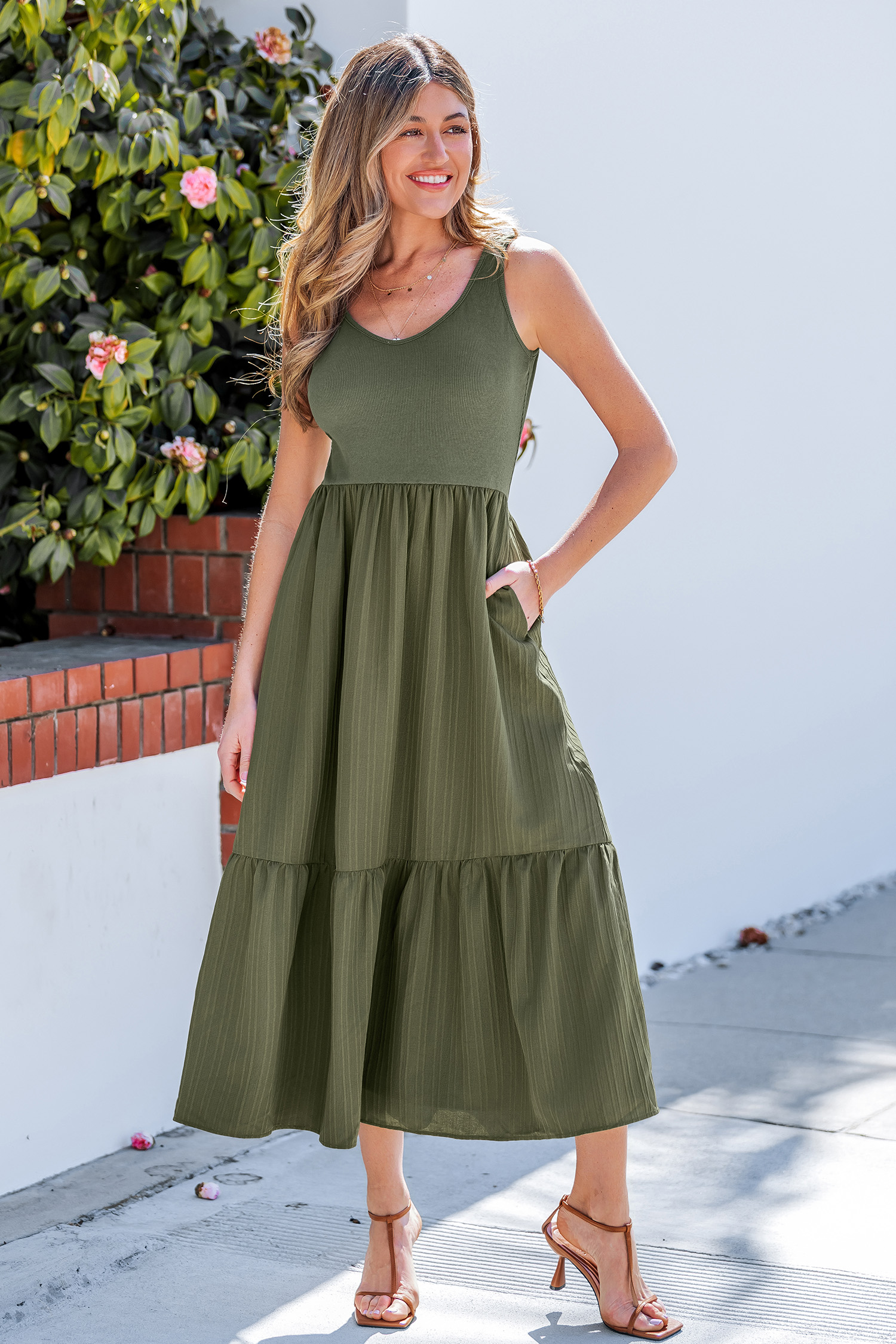 HomeRobe verte col scoop sans manches