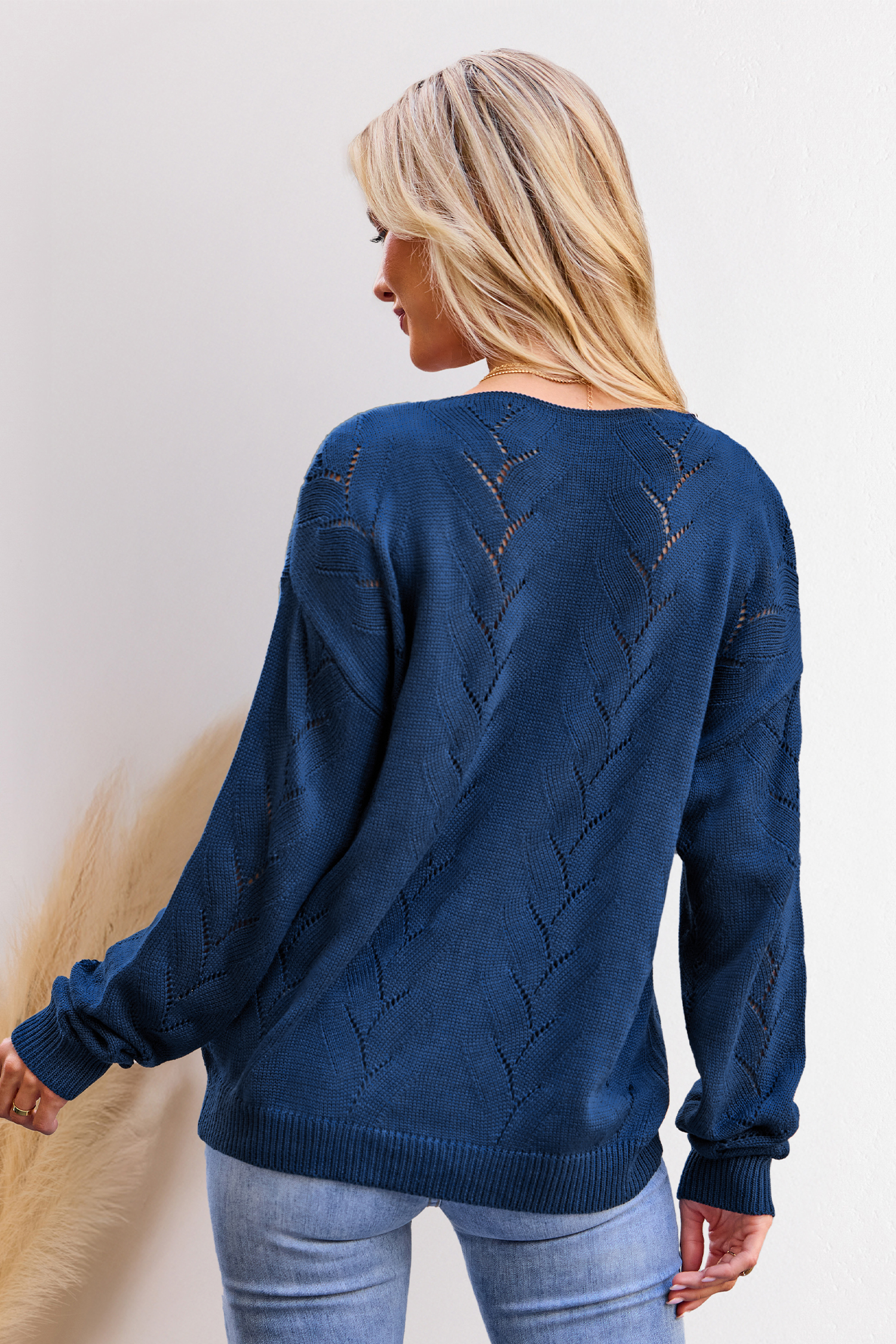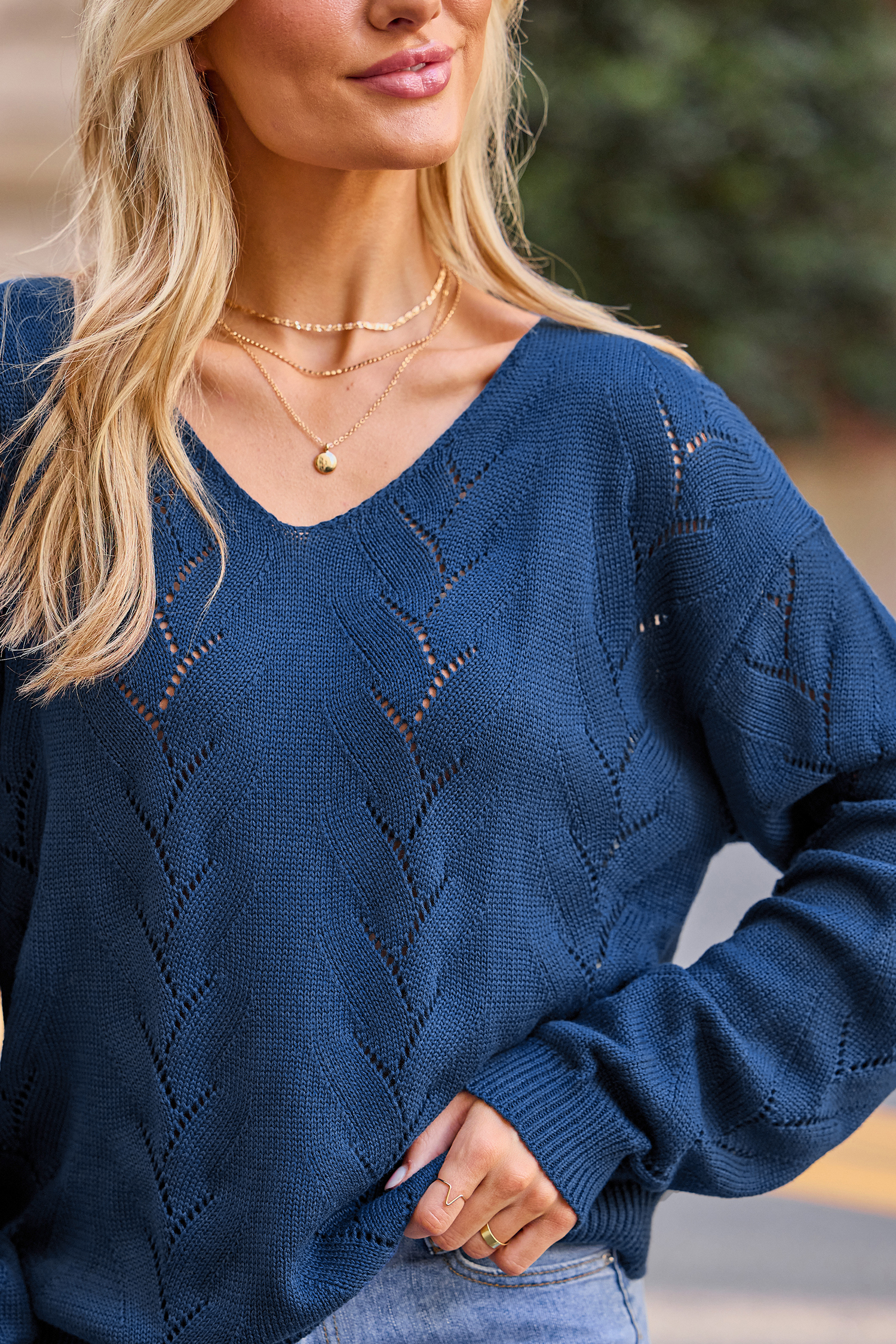 Ce pull bleu à col en V et manches longues, dans une maille douce, est une couche facile pour tous les jours.