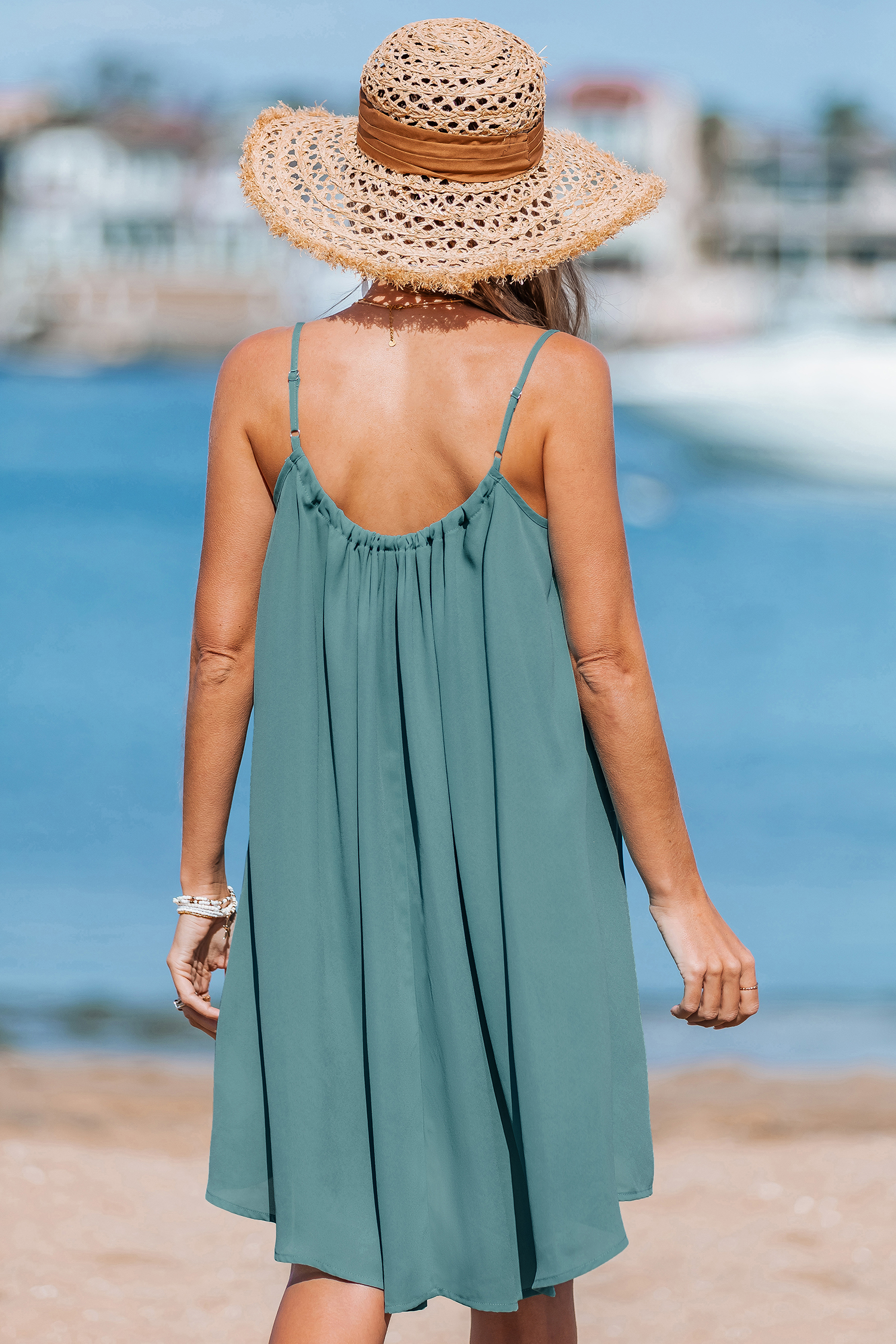 La Robe cover up courte verte ourlet asymétrique est un souffle de fraîcheur pour votre garde-robe estivale ! Avec son col scoop, ses bretelles cami et son ourlet asymétrique, cette robe mini est le parfait mélange de décontracté et de chic.