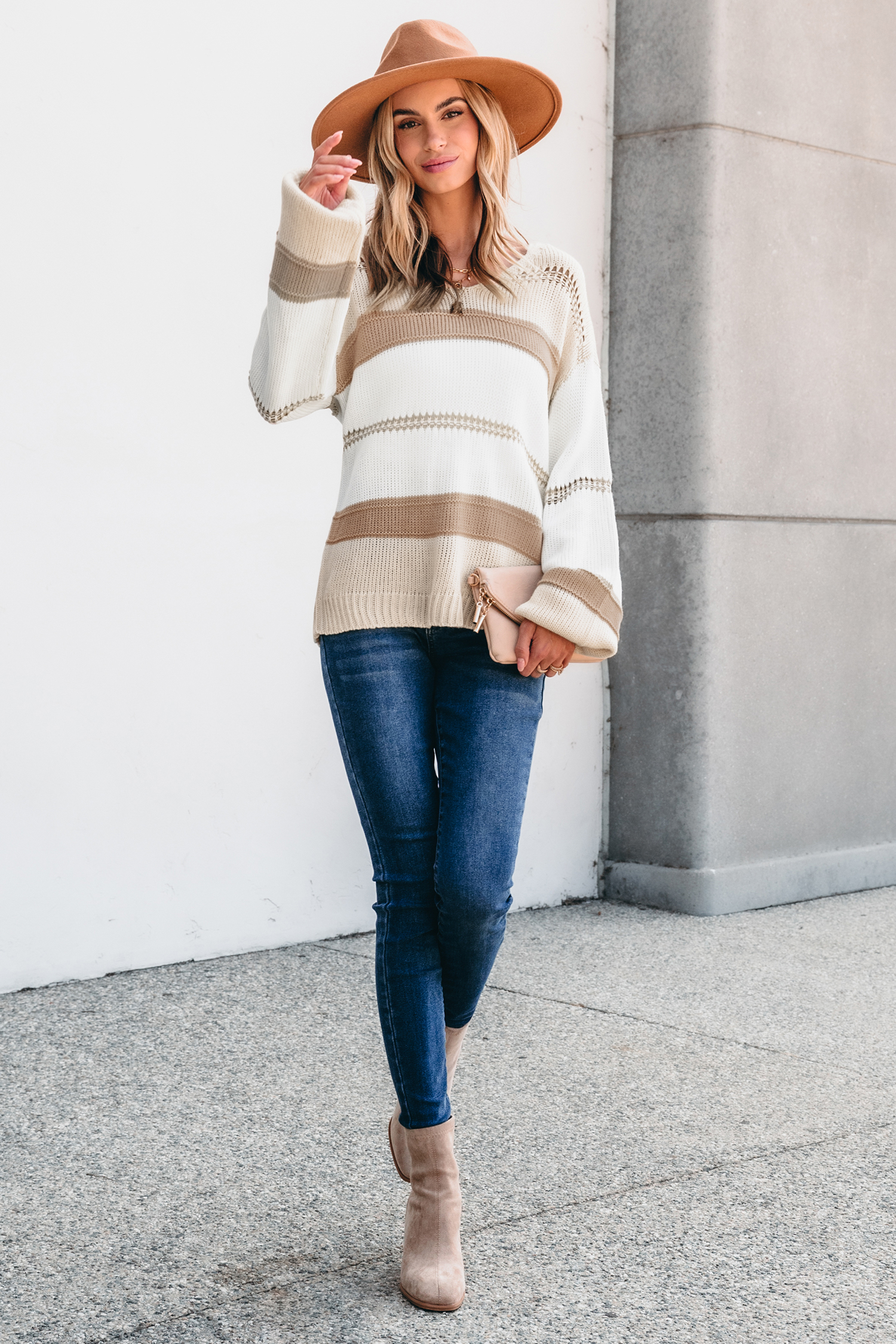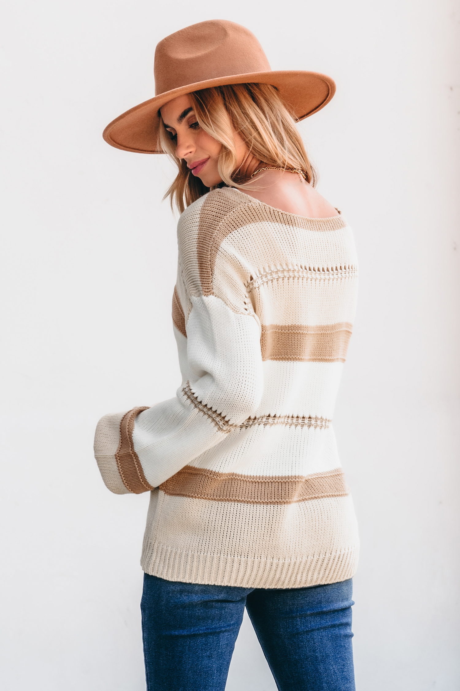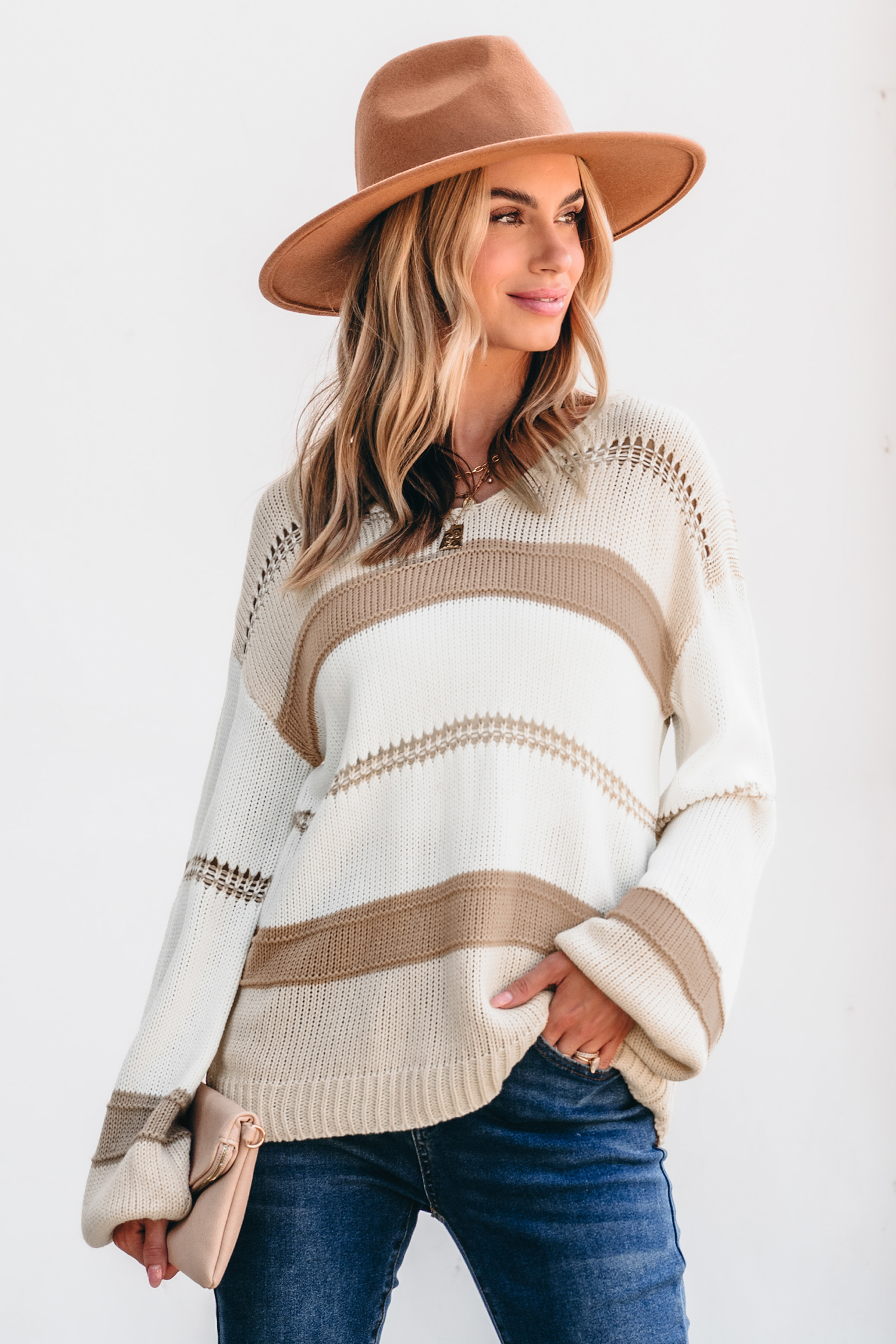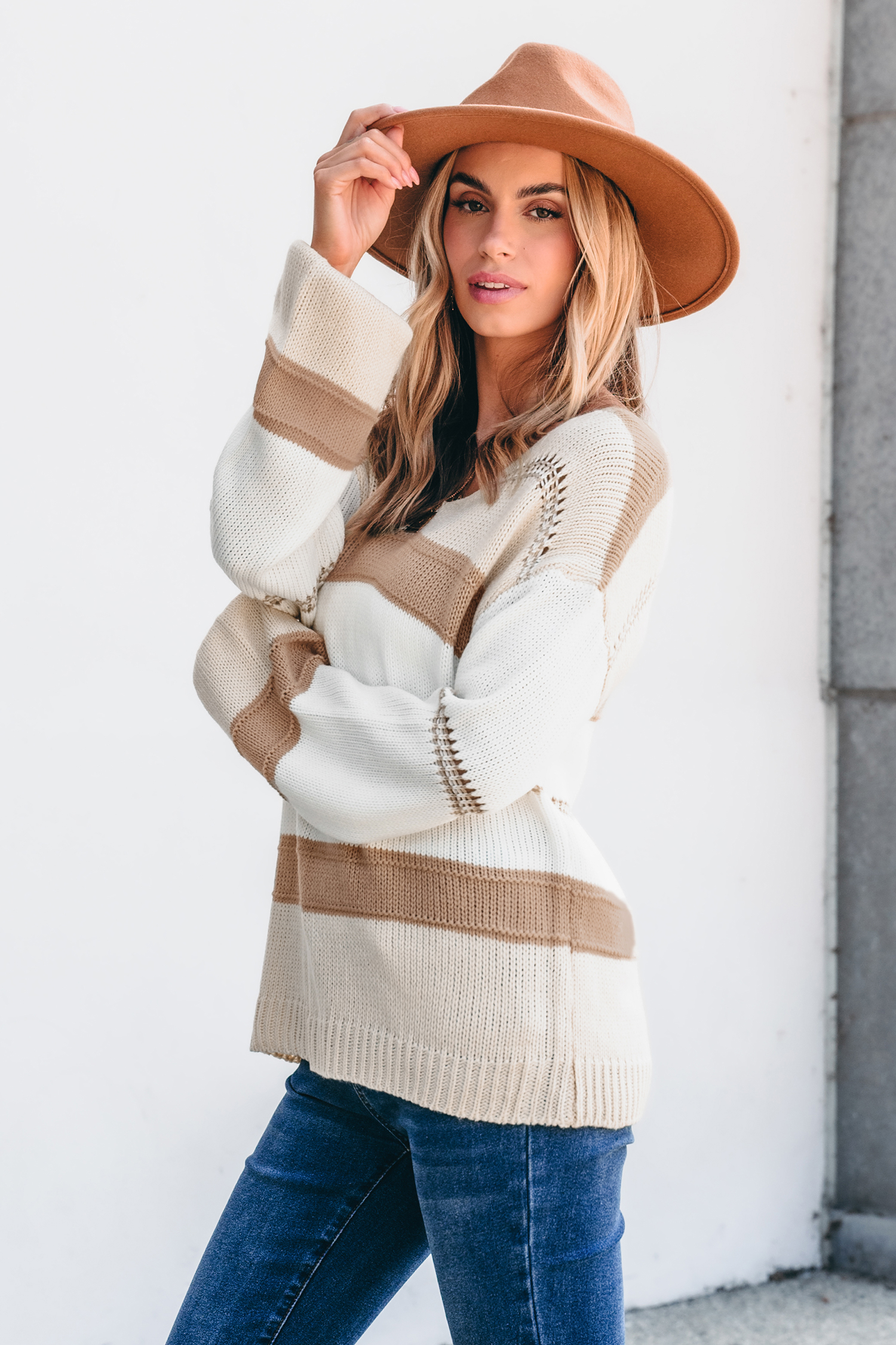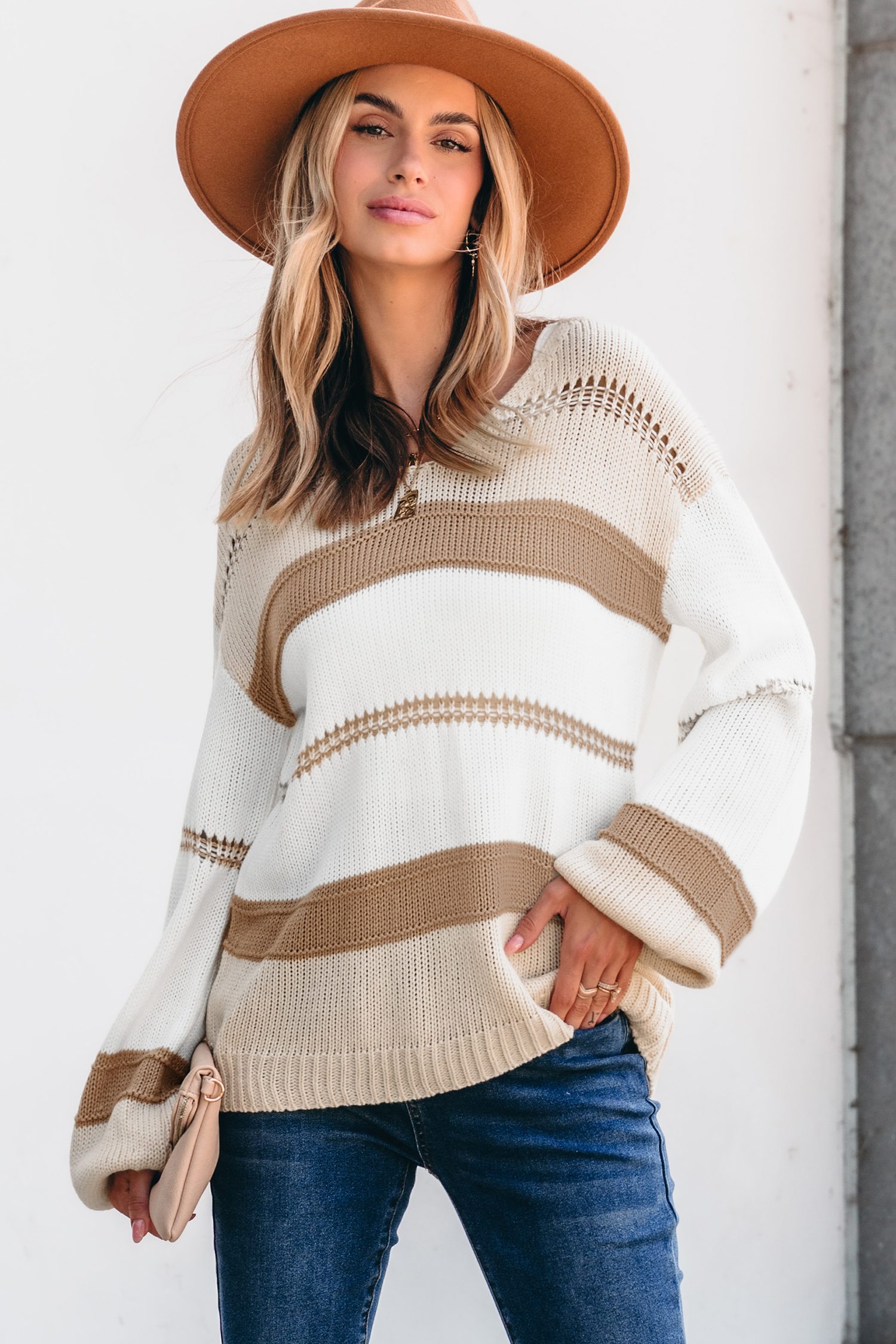 Pull à manches longues et blocs de couleur neutre