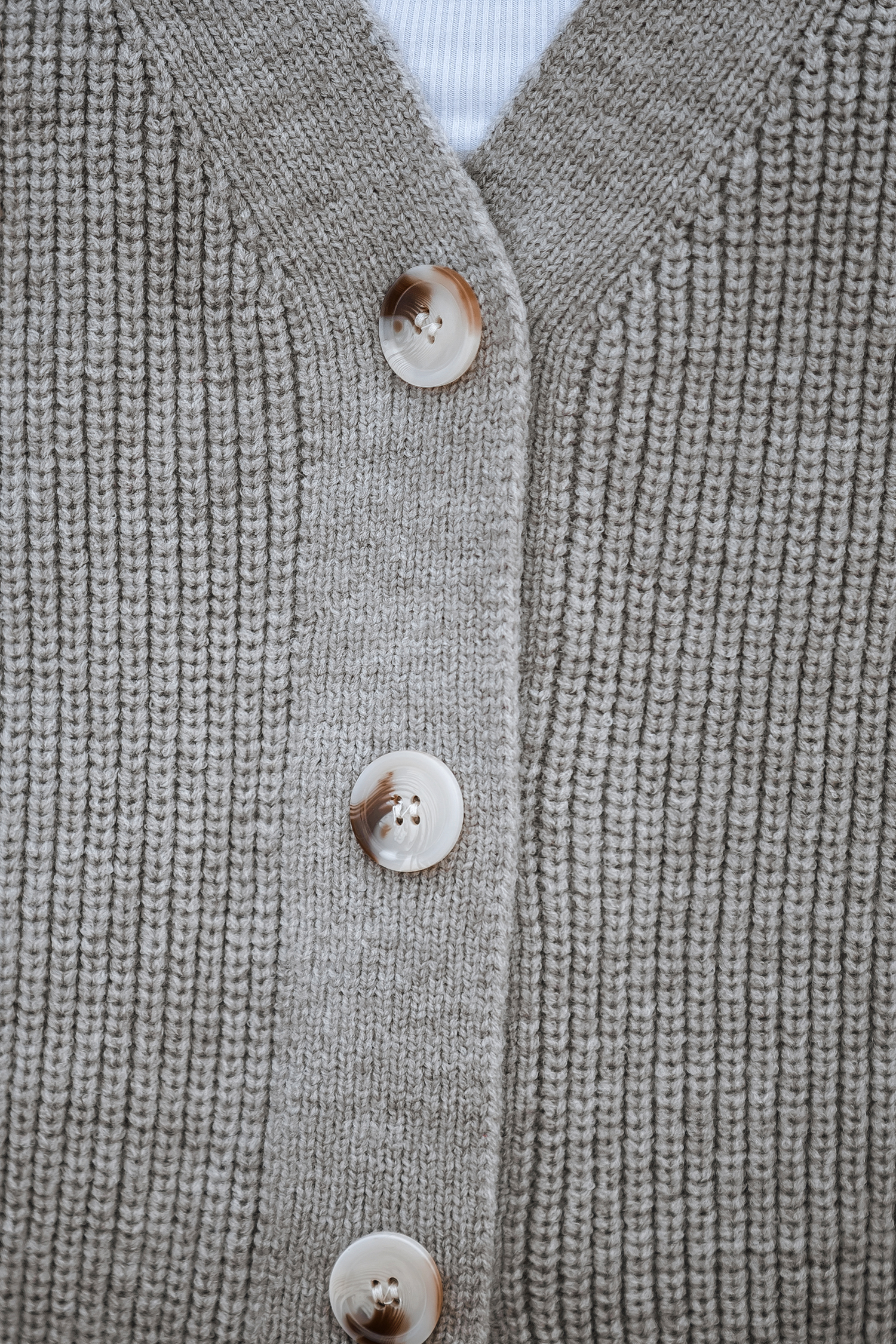 Cardigan à col en V et manches bouffantes avec boutons neutre