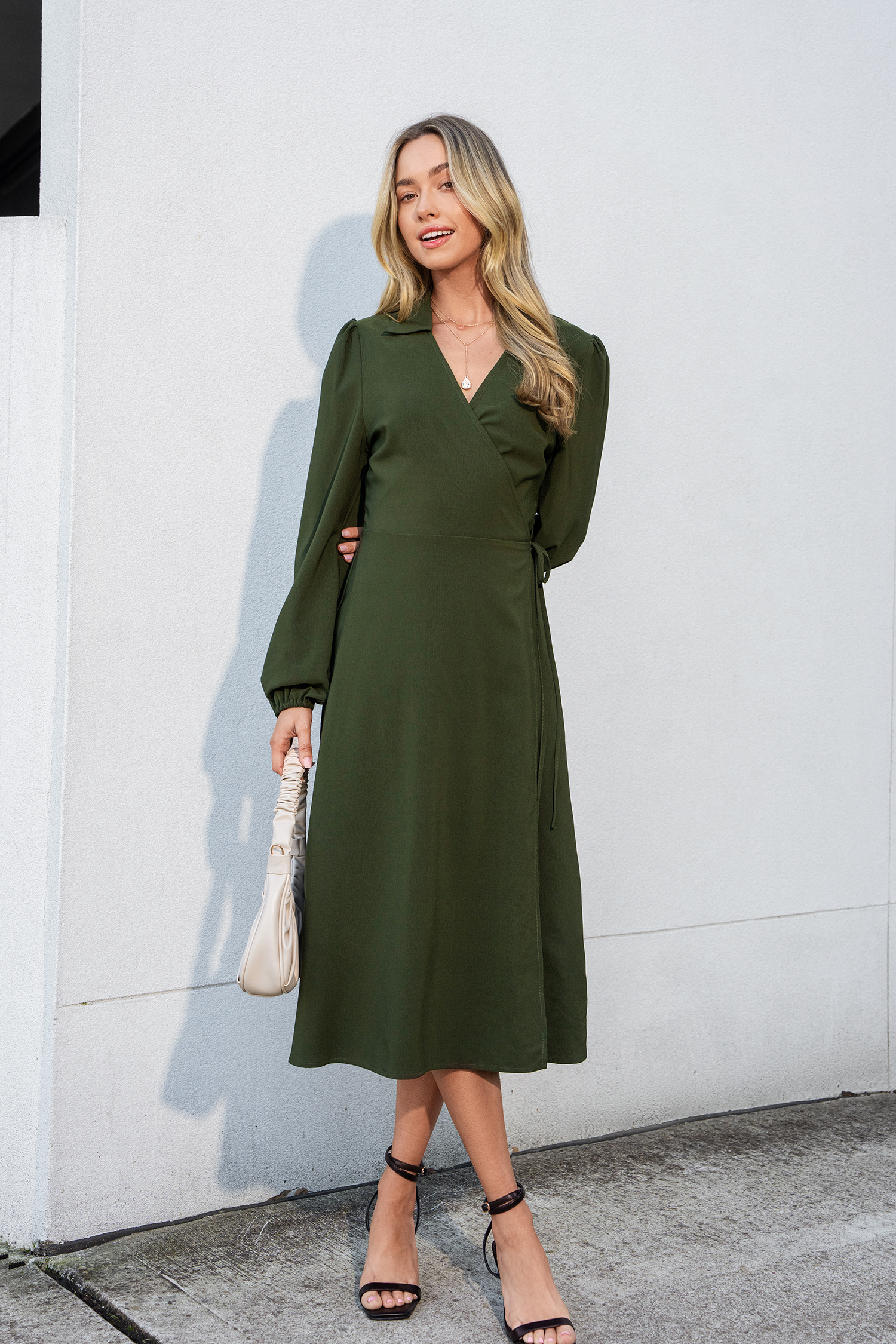 HomeRobe à manches paysannes vert olive