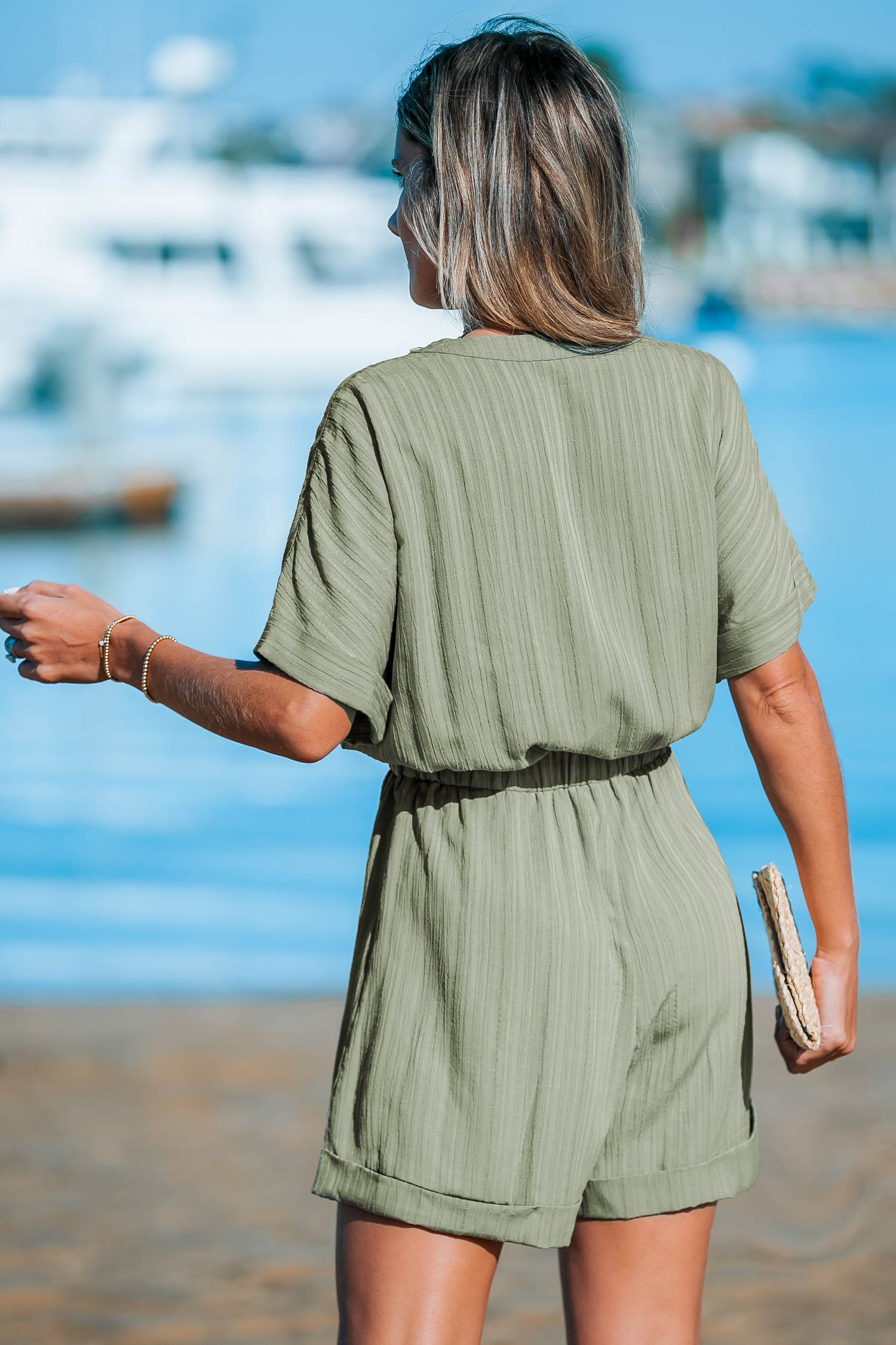 Combishort côtelé et poignets roulés olive