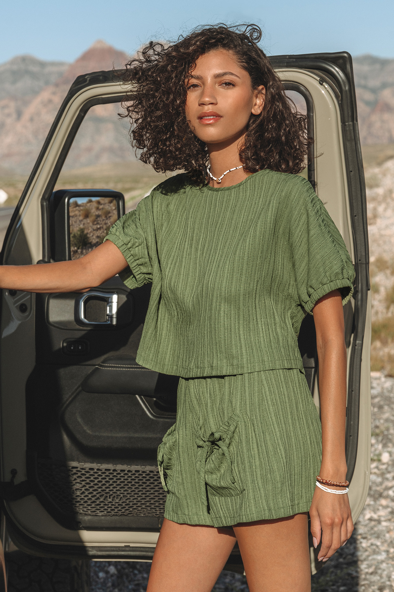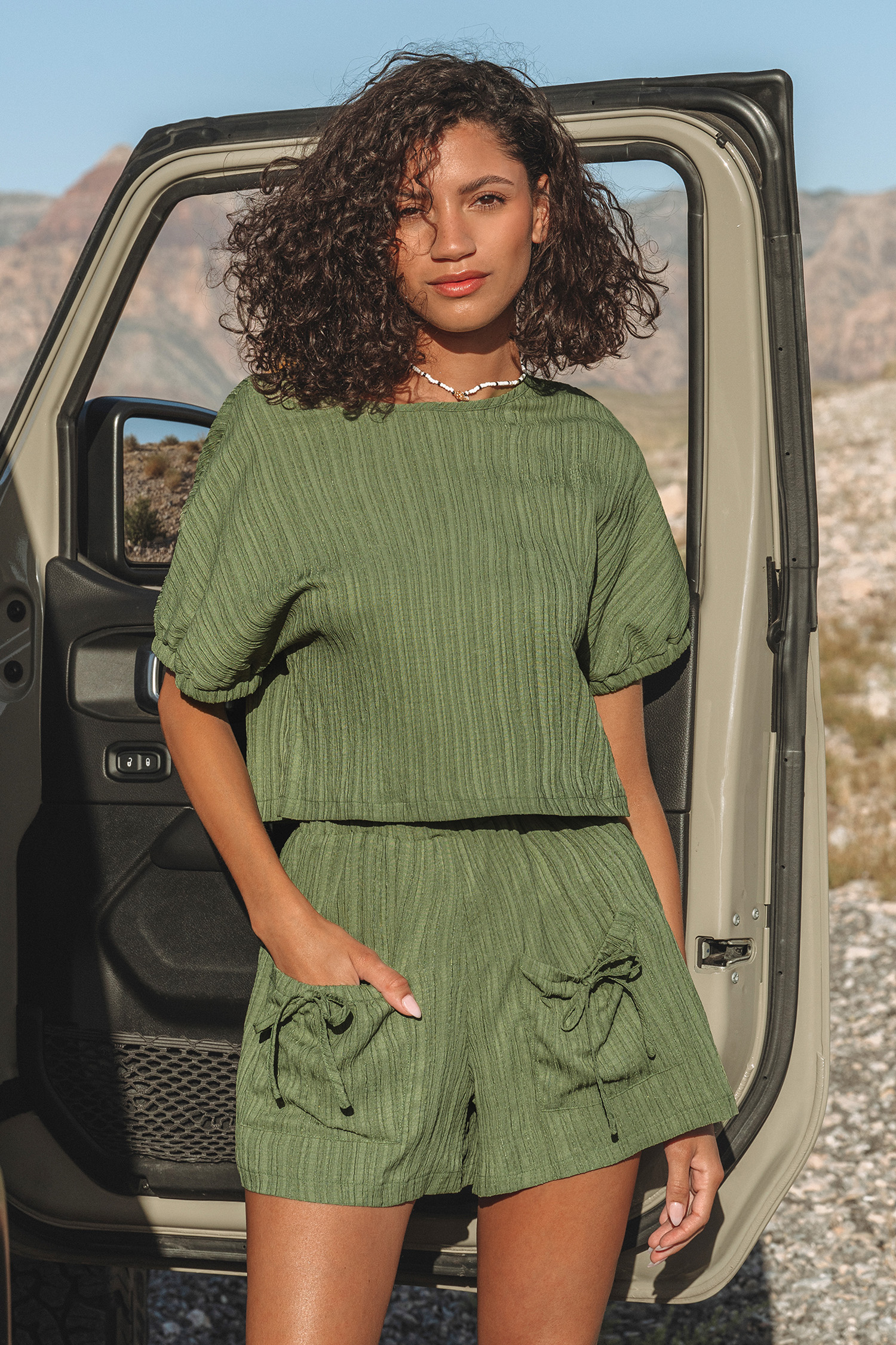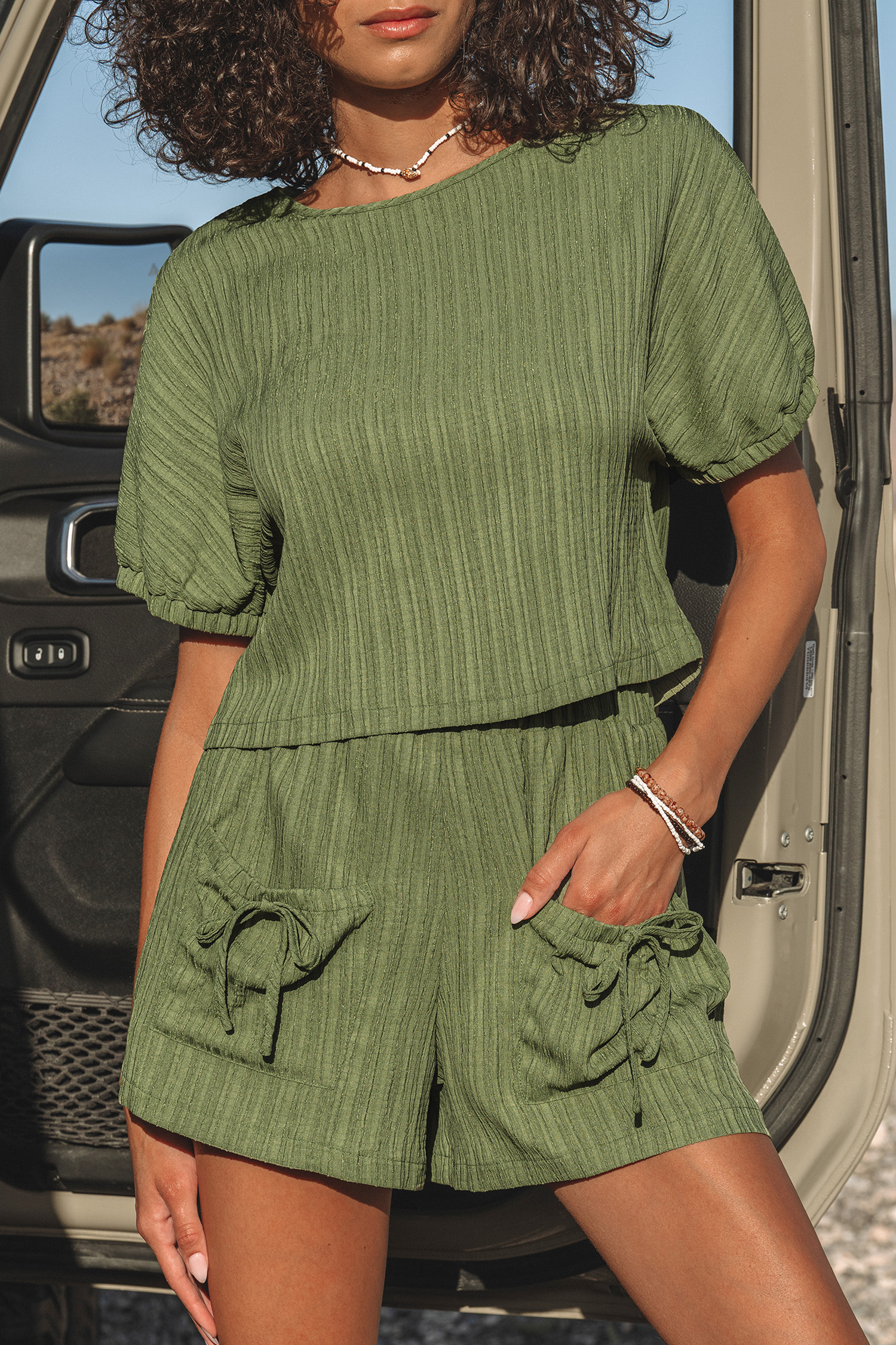 HomeEnsemble haut à manches courtes et short à jambes larges olive