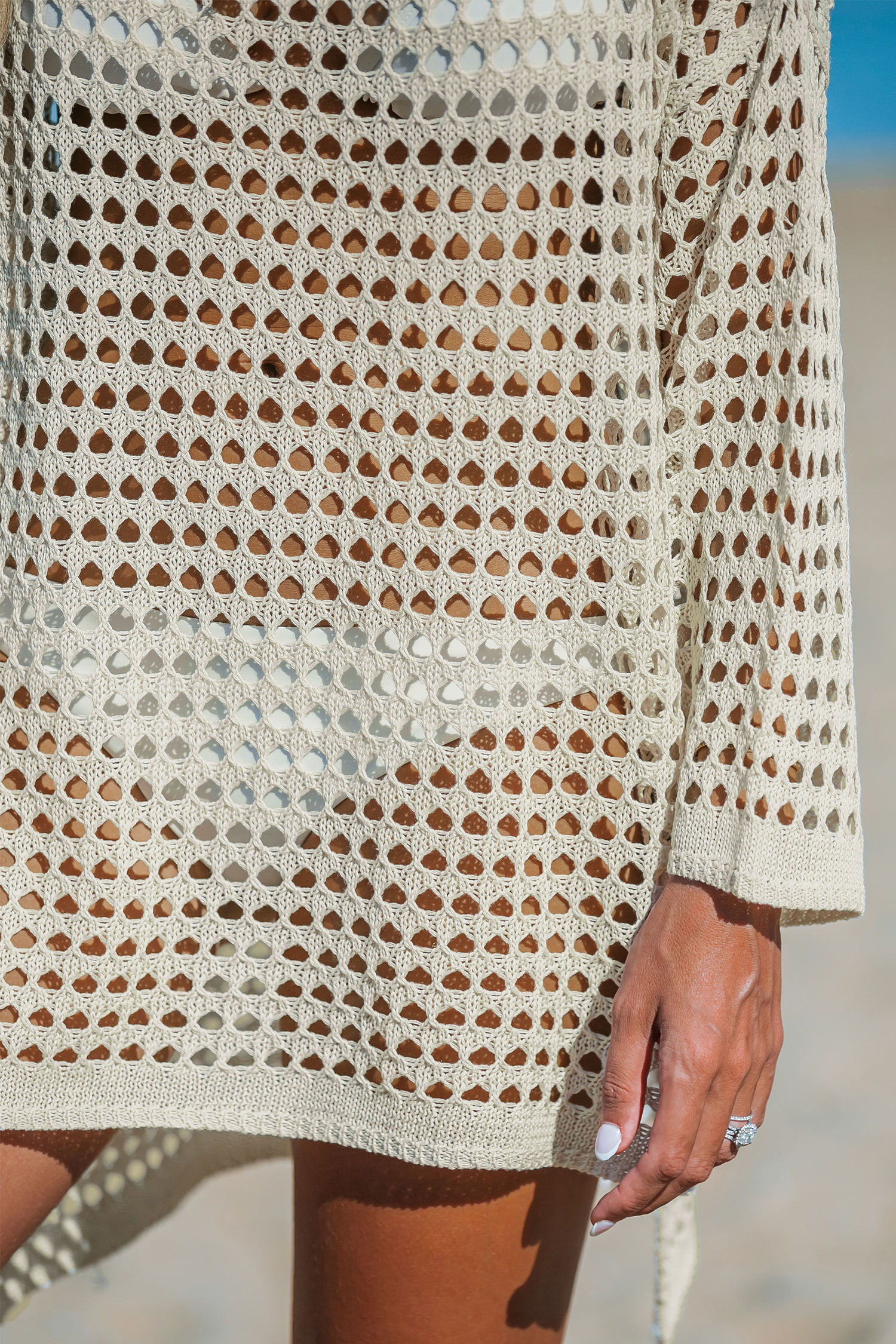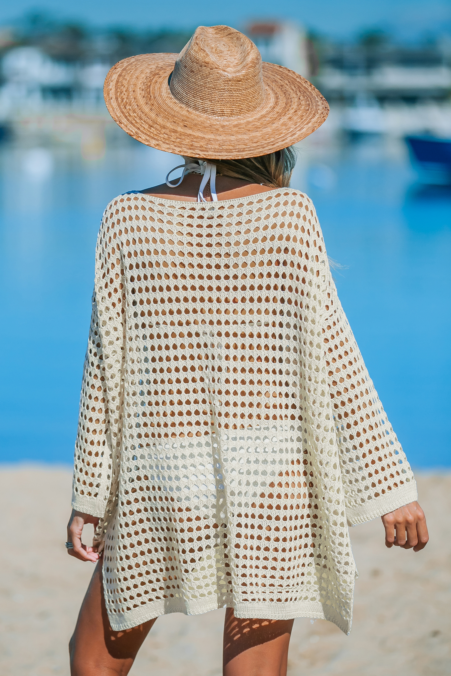 Haut cover up à col bateau en tricot ouvert