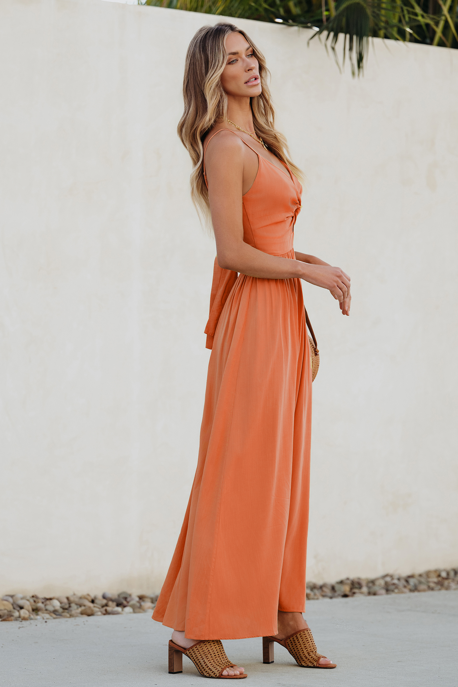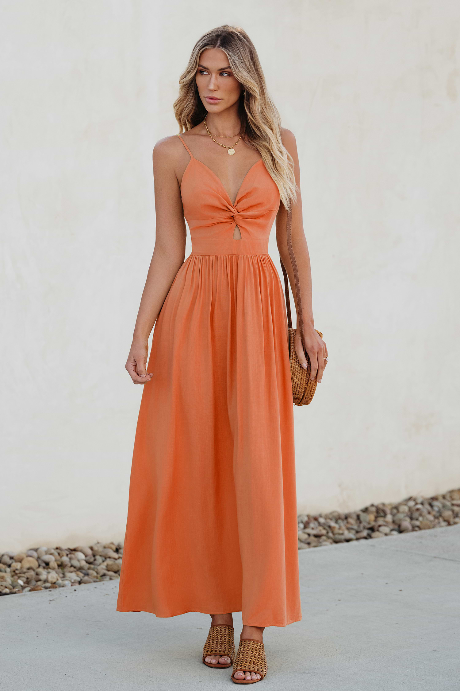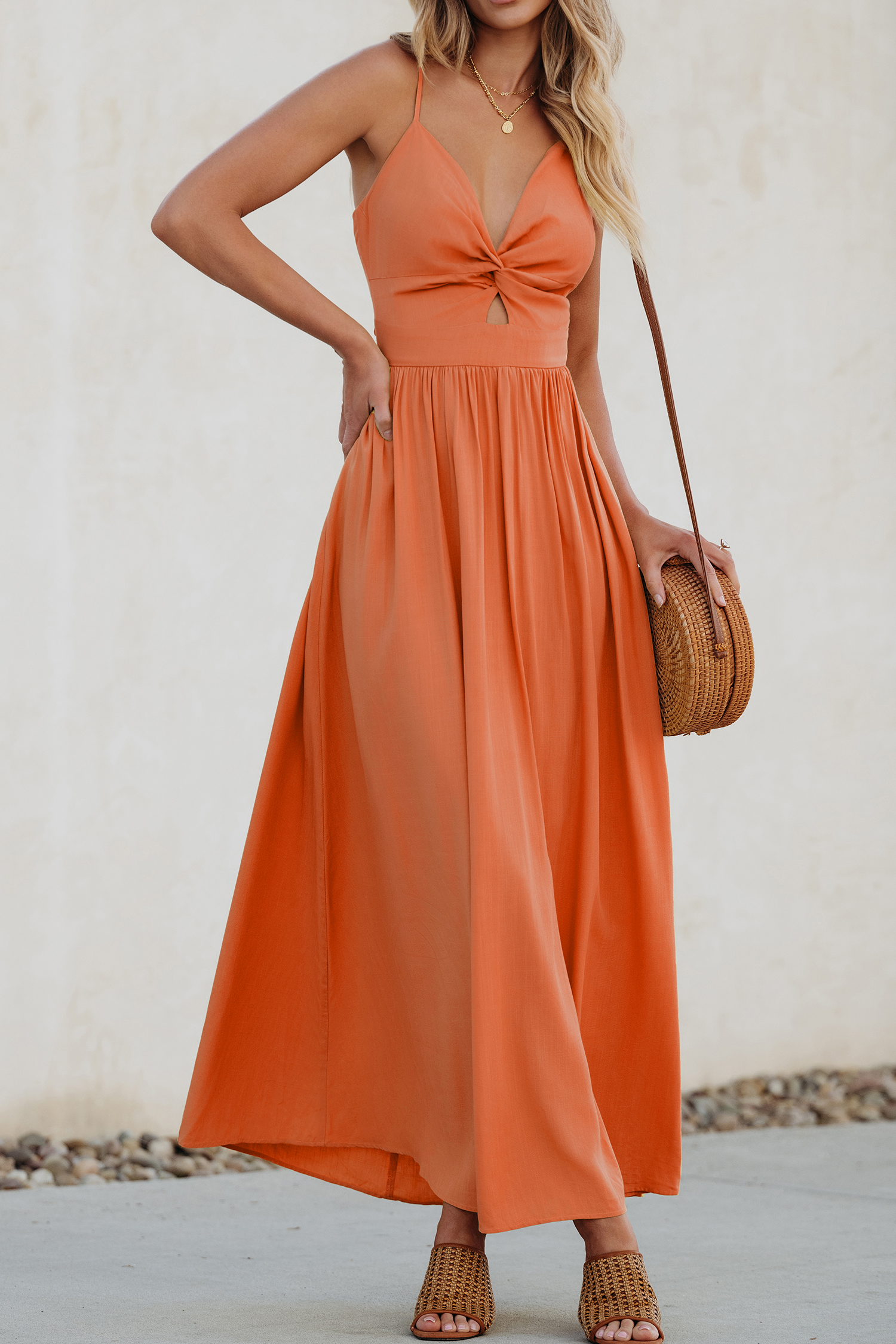 Robe maxi avec trou de serrure torsadé sur le devant orange