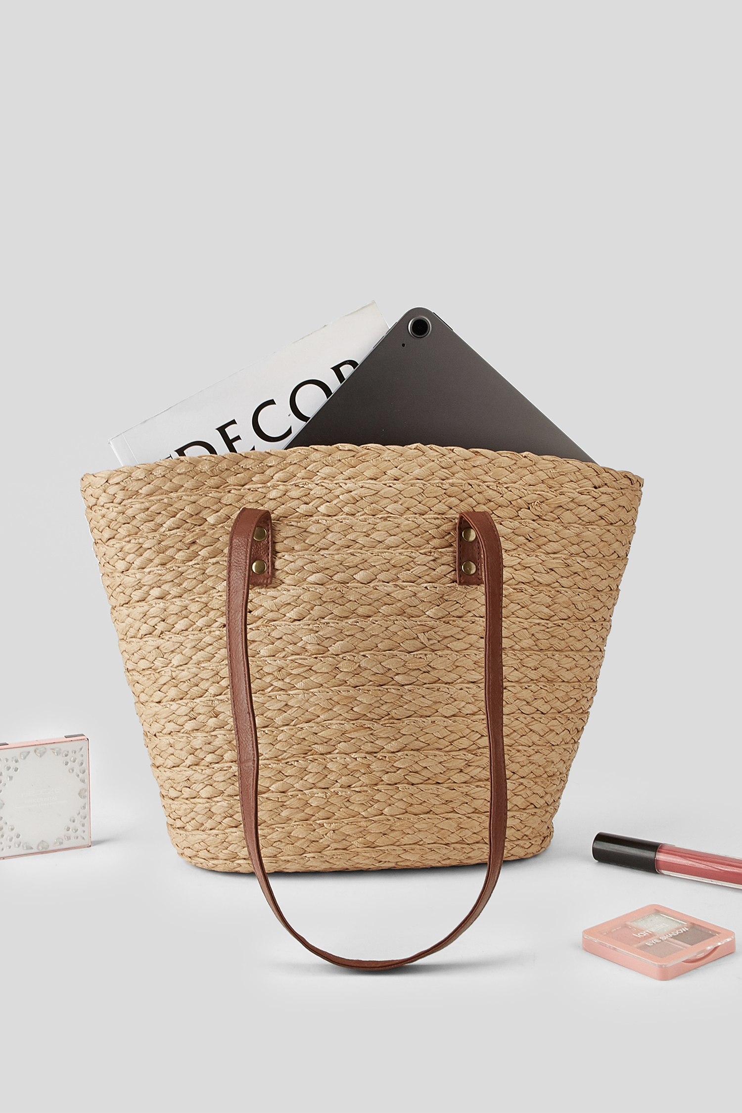 Ce sac en paille à esprit parisien est chic sans effort et idéal pour toute sortie. Son format spacieux et ses longues anses en similicuir permettent d’emporter l’essentiel avec élégance.