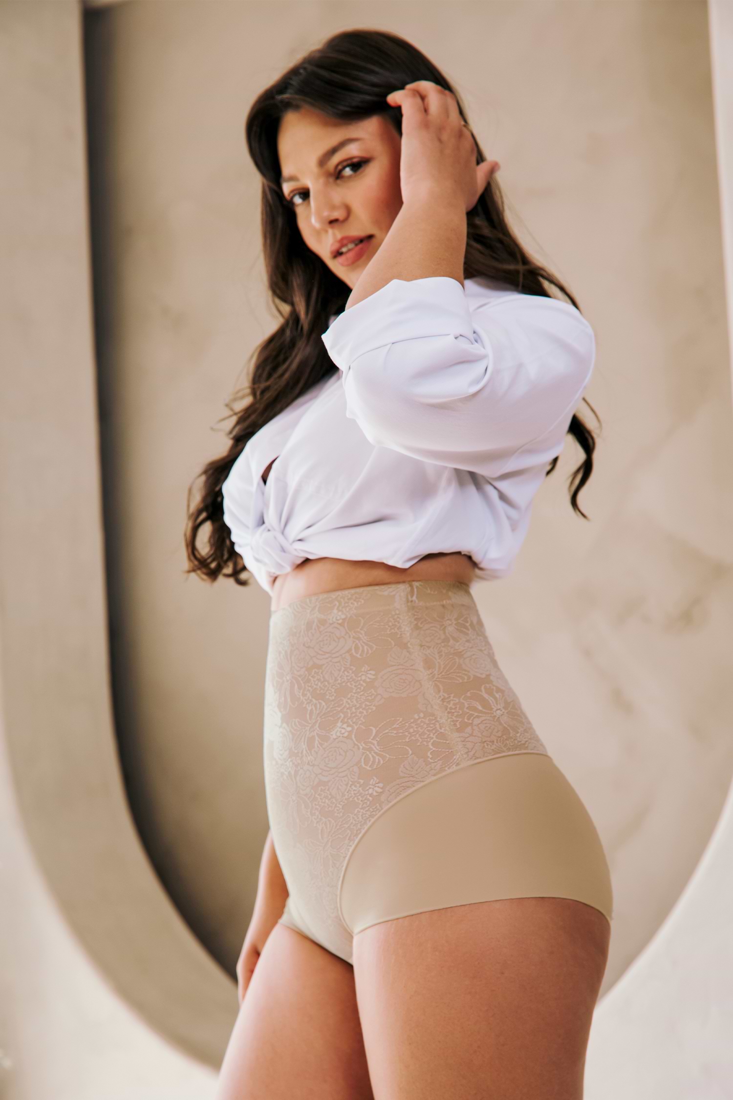 Ces bas sculptants nude lissent et valorisent votre silhouette. Leur coupe haute et leur tissu sans couture assurent une mise en valeur naturelle et discrète.