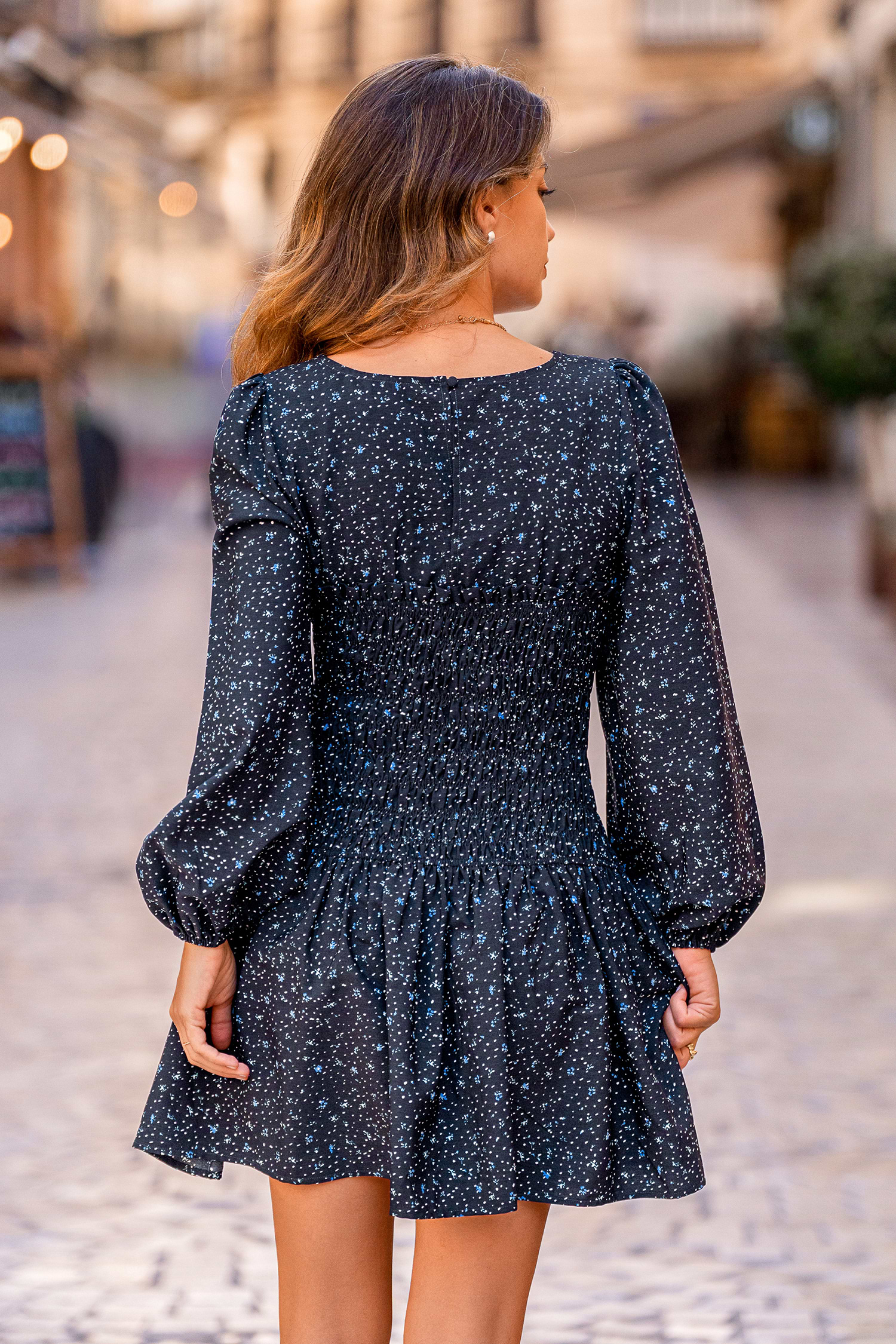 La robe courte fleurie apporte une énergie féminine et enjouée à votre dressing ! Son encolure carrée, ses manches longues, son corsage smocké et sa longueur mini créent une allure fluide et romantique, parfaite pour les journées ensoleillées.