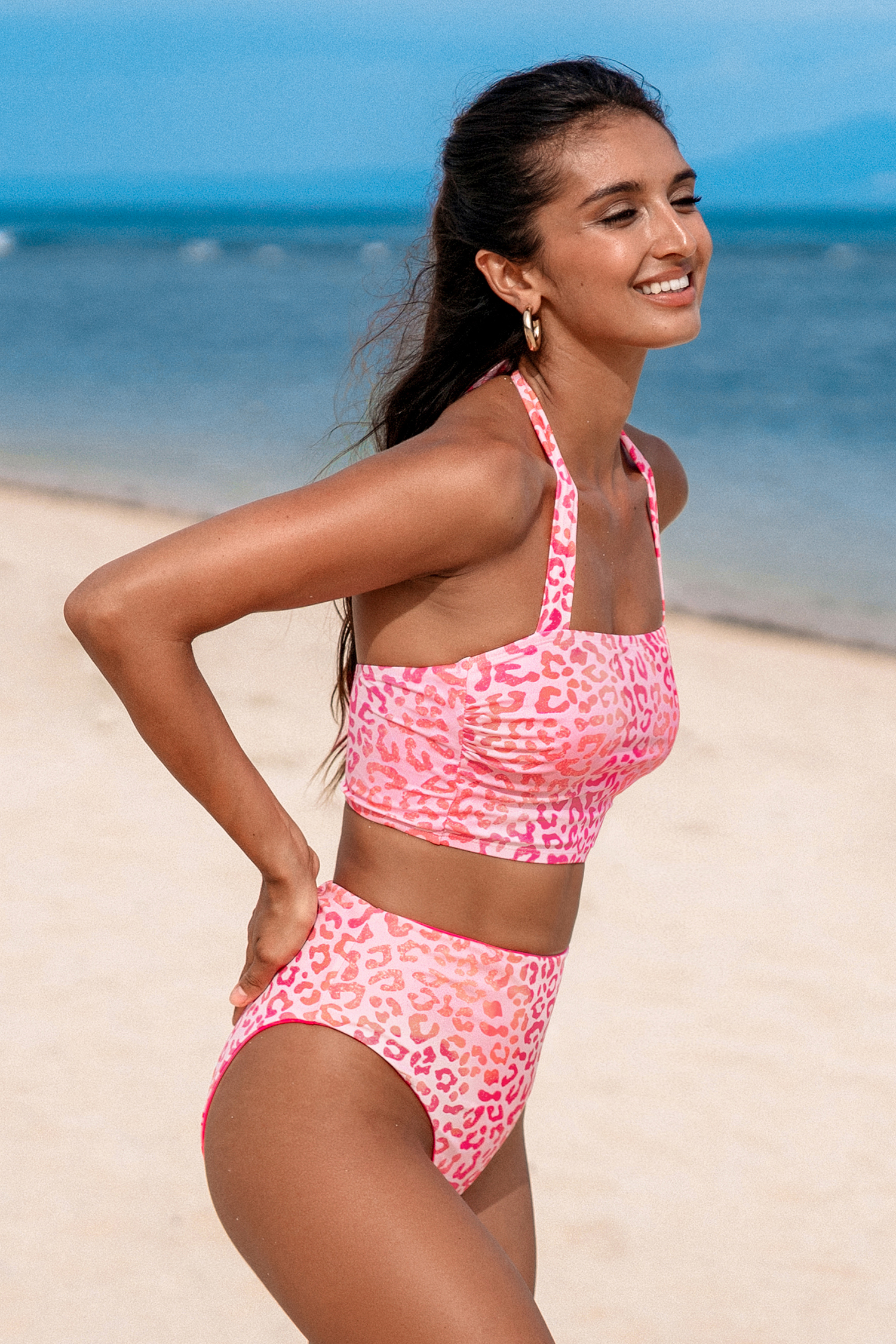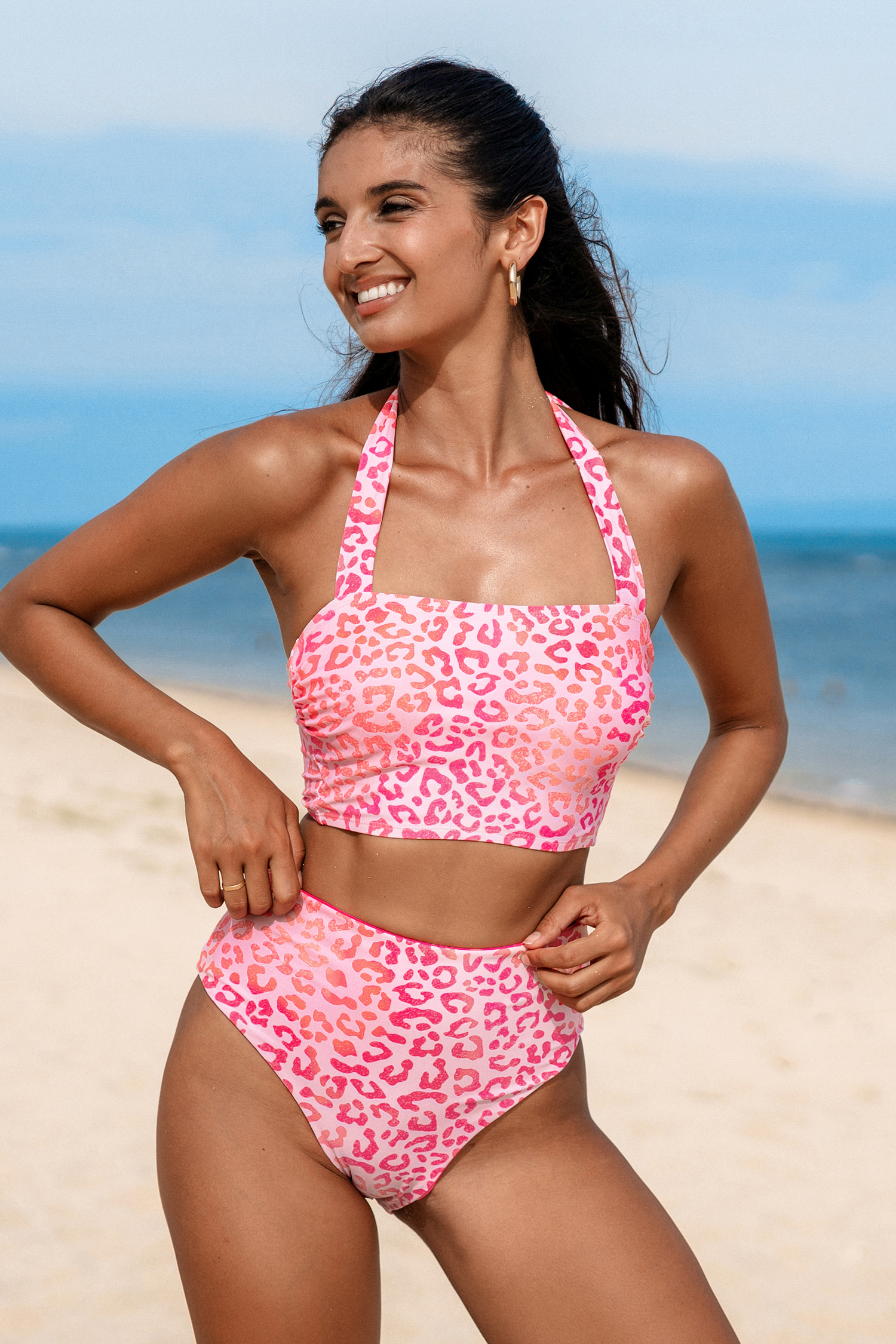 Bikini avec col carré et bas réversible à imprimé léopard rose modern