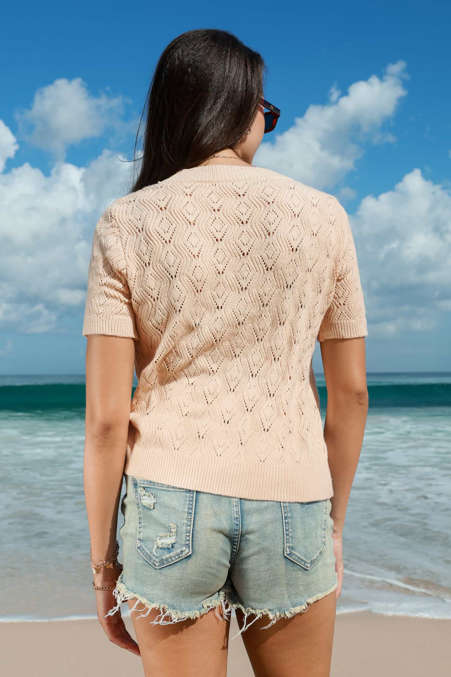 Cardigan cover up à manches courtes en tricot ouvert rose