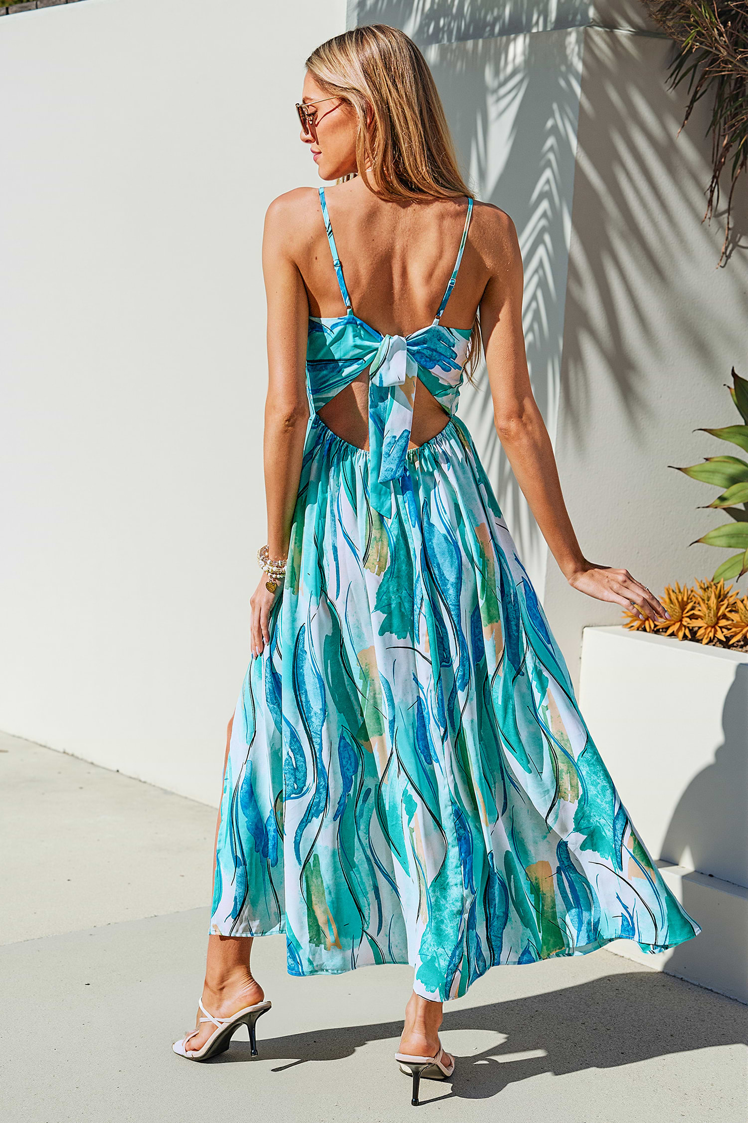Robe longue à imprimé abstrait fermeture nouée au dos