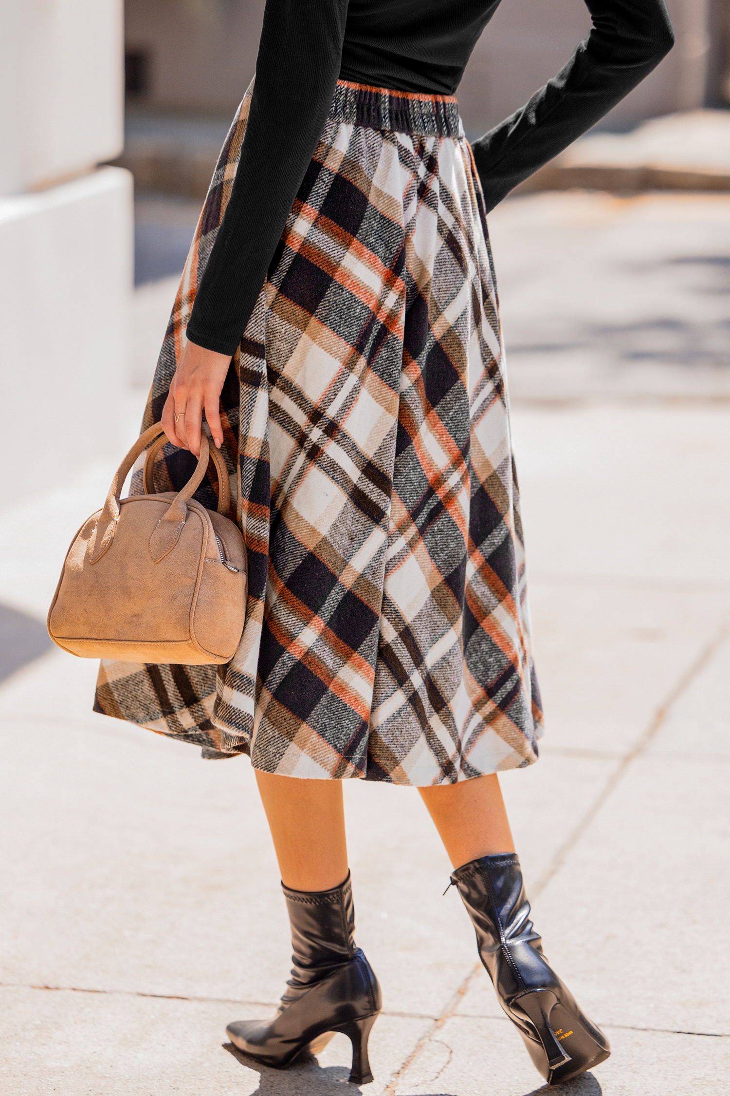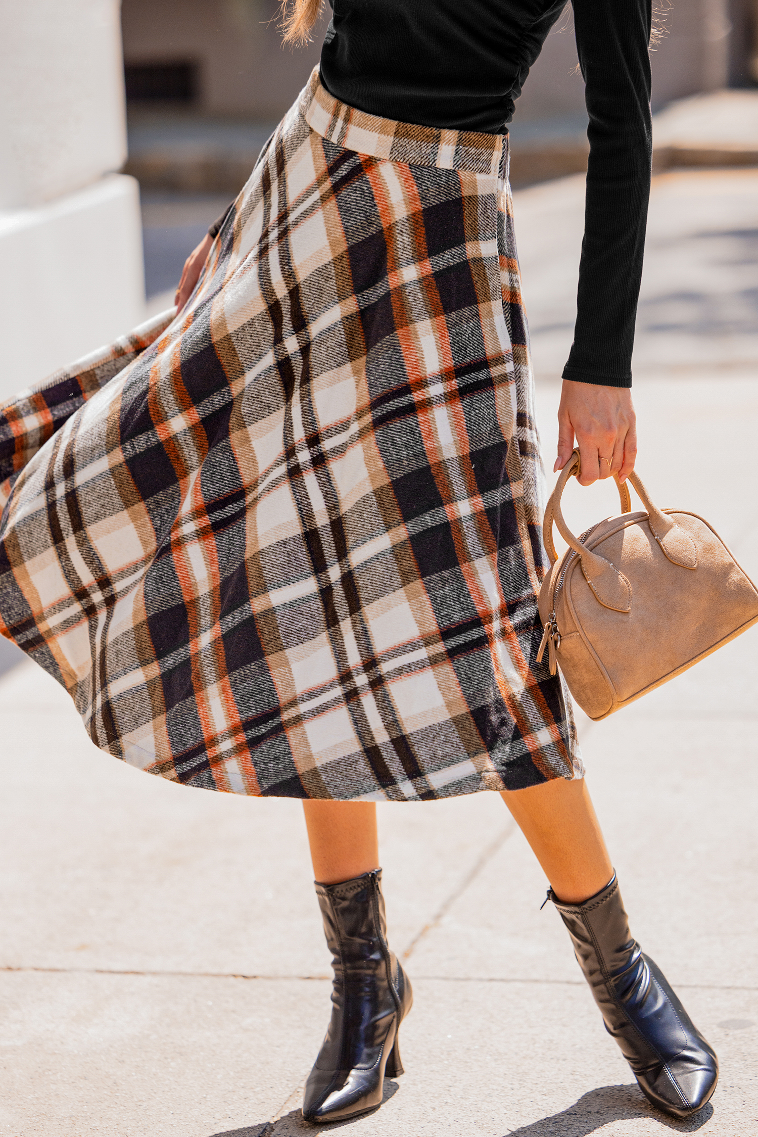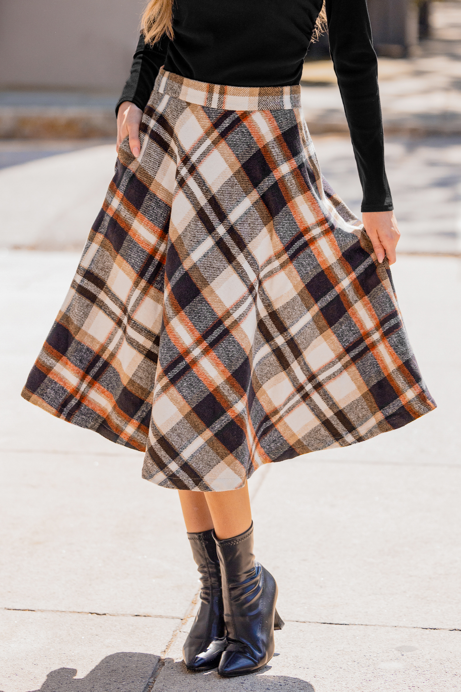 La jupe midi à carreaux conserve un style classique grâce à son motif intemporel et sa silhouette fluide. Elle se ferme sur le côté et offre une longueur midi flatteuse, parfaite pour un look chic et sans effort.