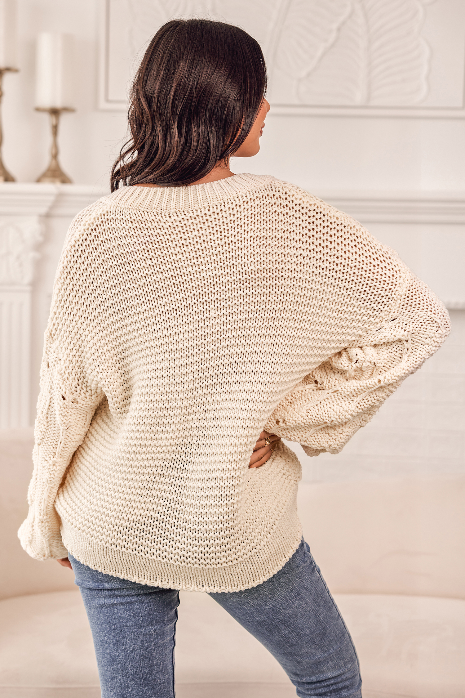 HomePull à col en V et à manches tombantes en tricot