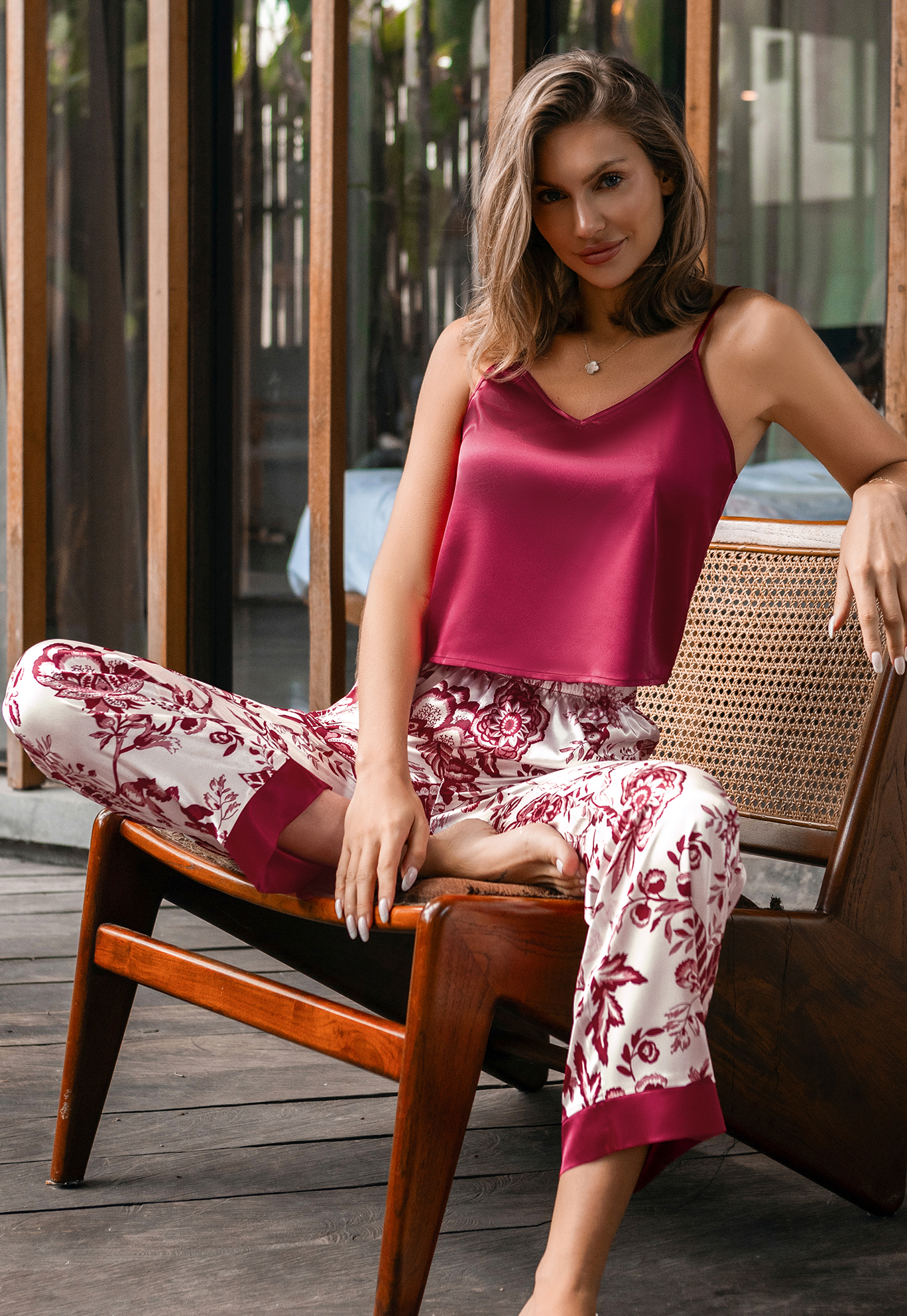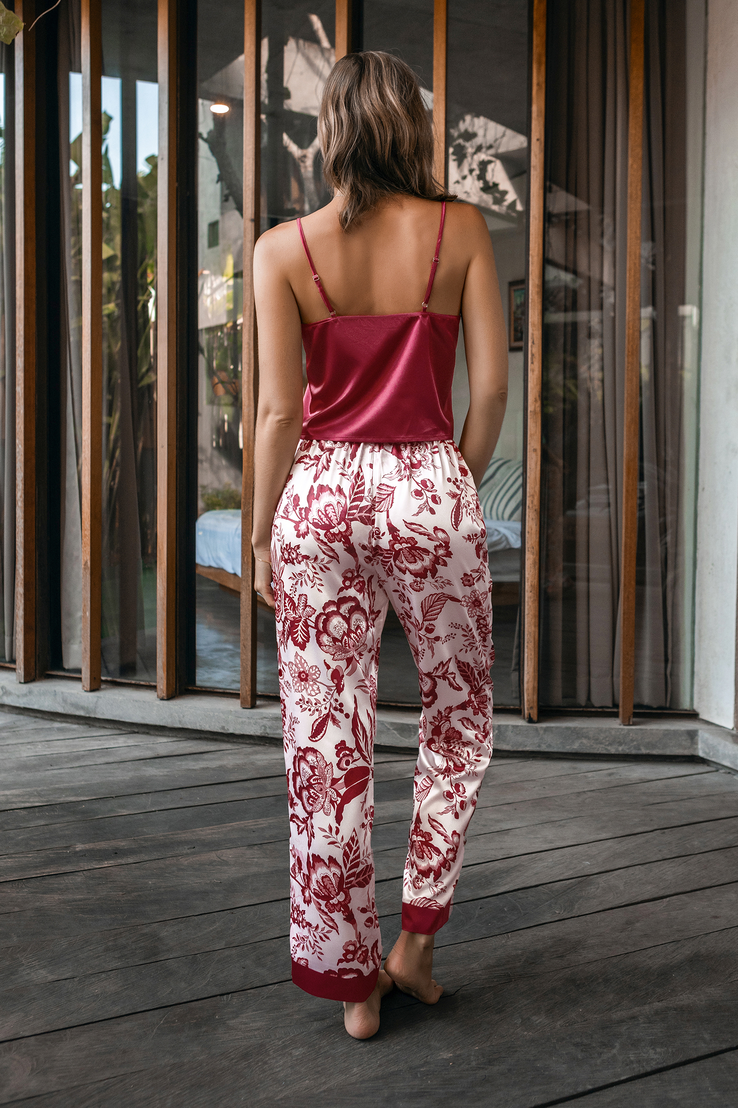 AccueilEnsemble de pyjama avec débardeur en satin rouge et pantalon