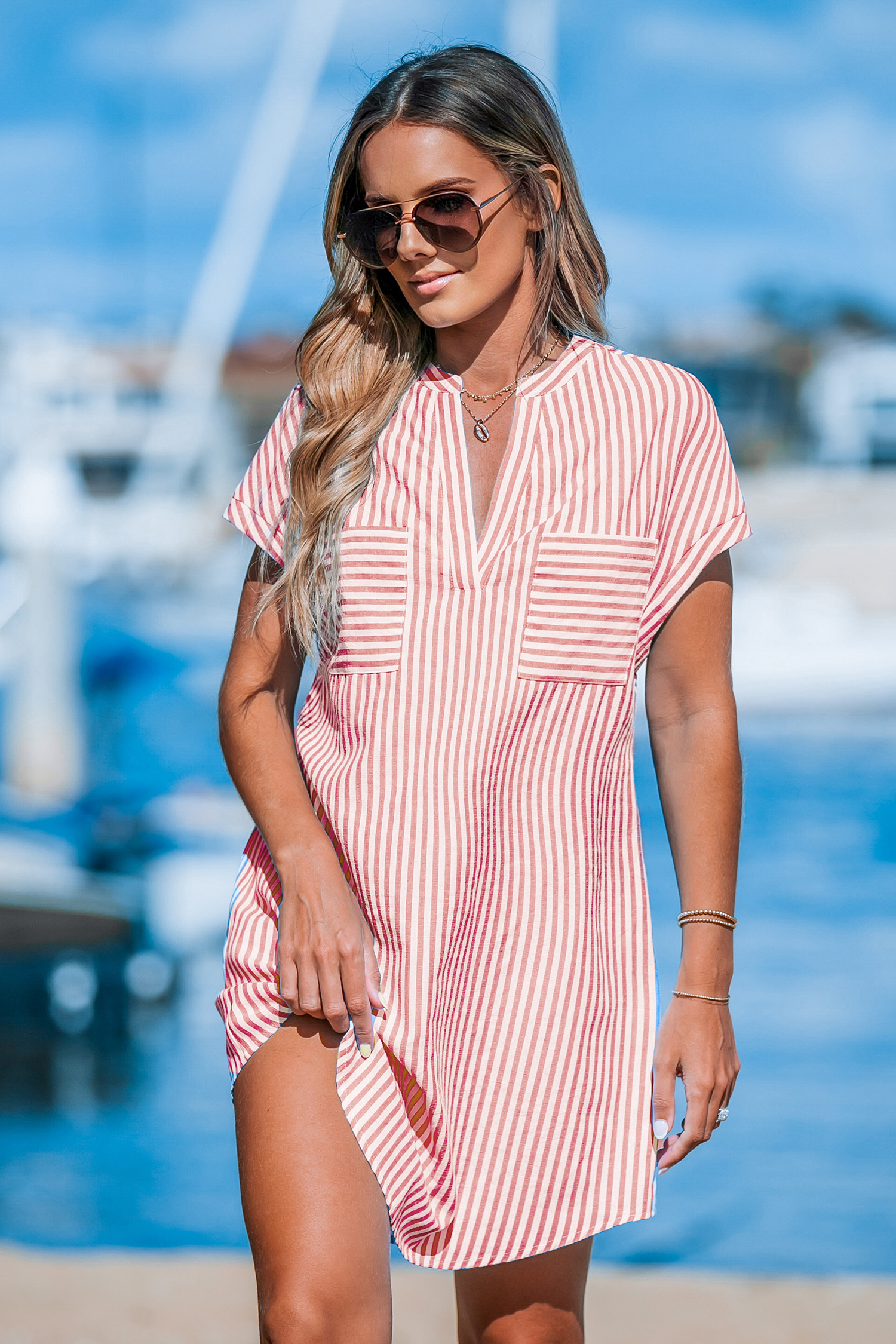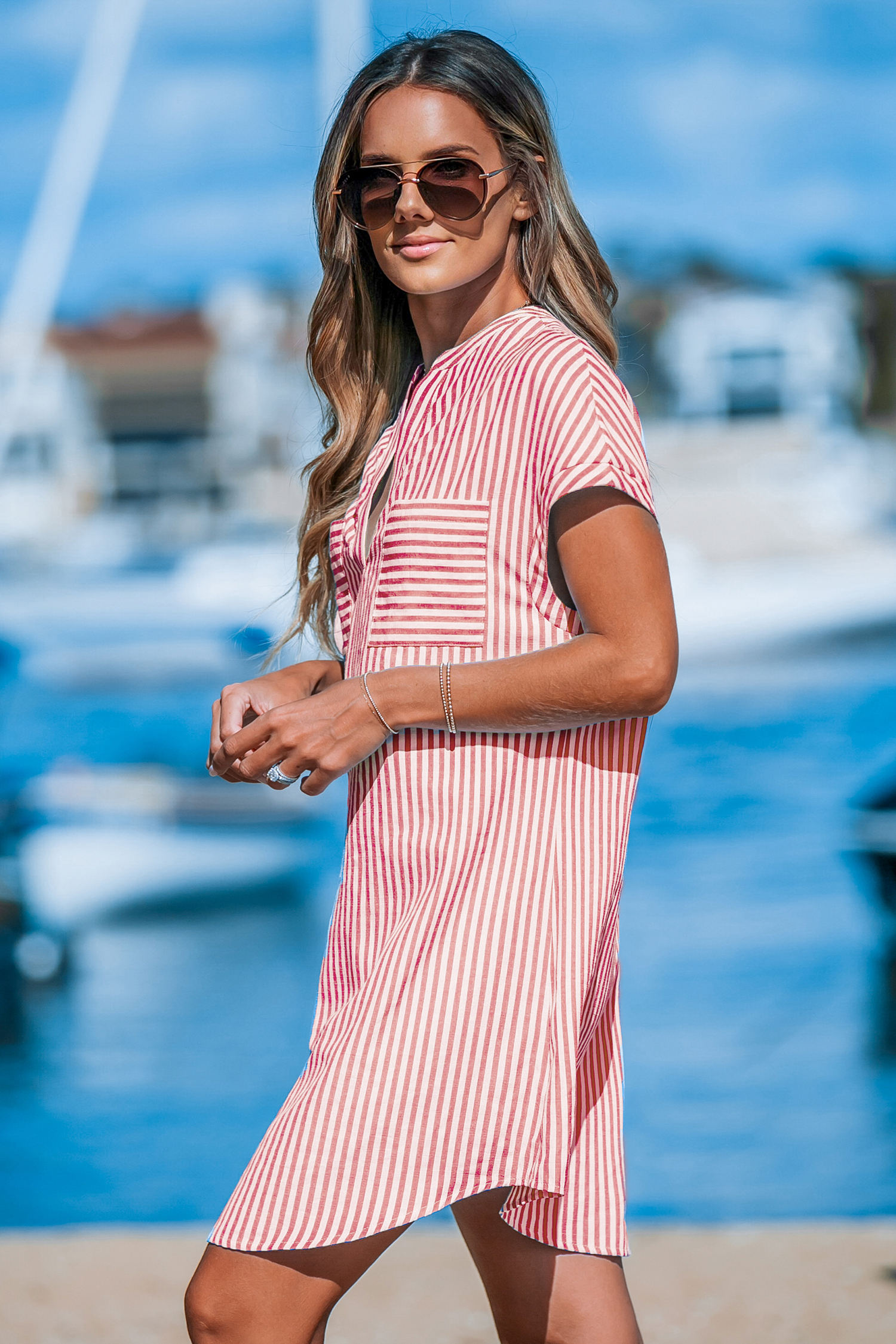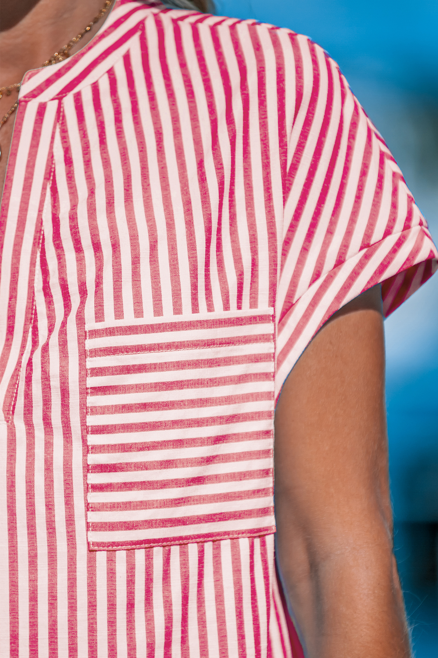 Robe à rayures irrégulières et manches dolman rouge et blanche