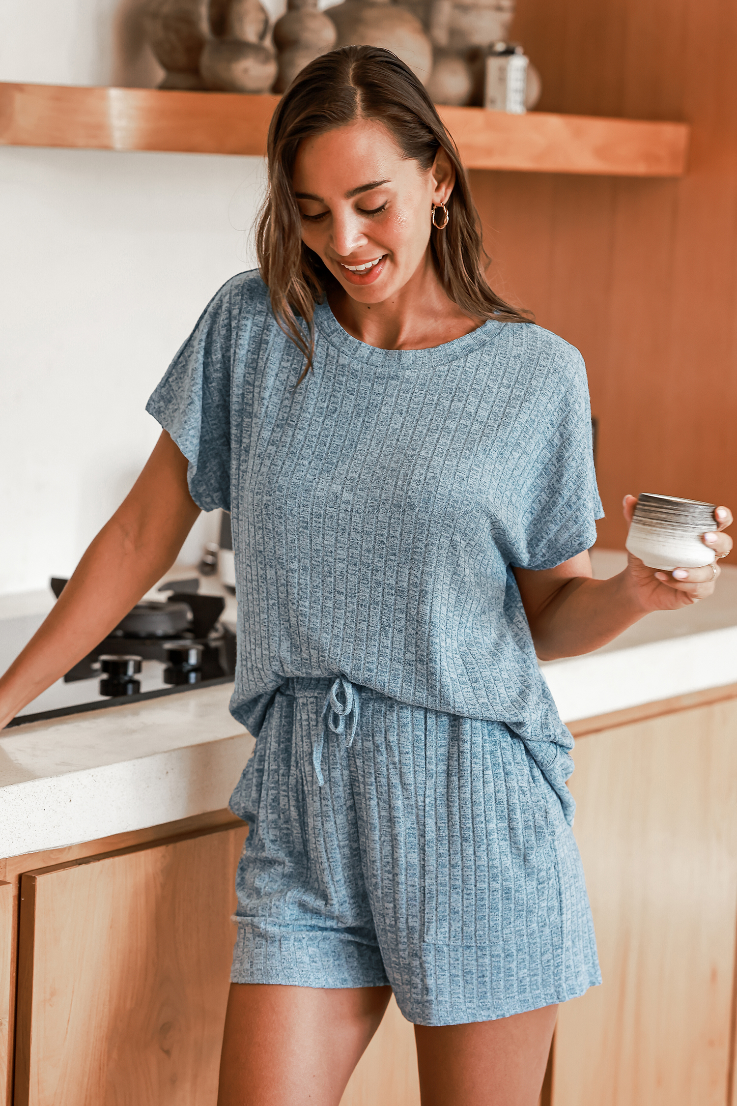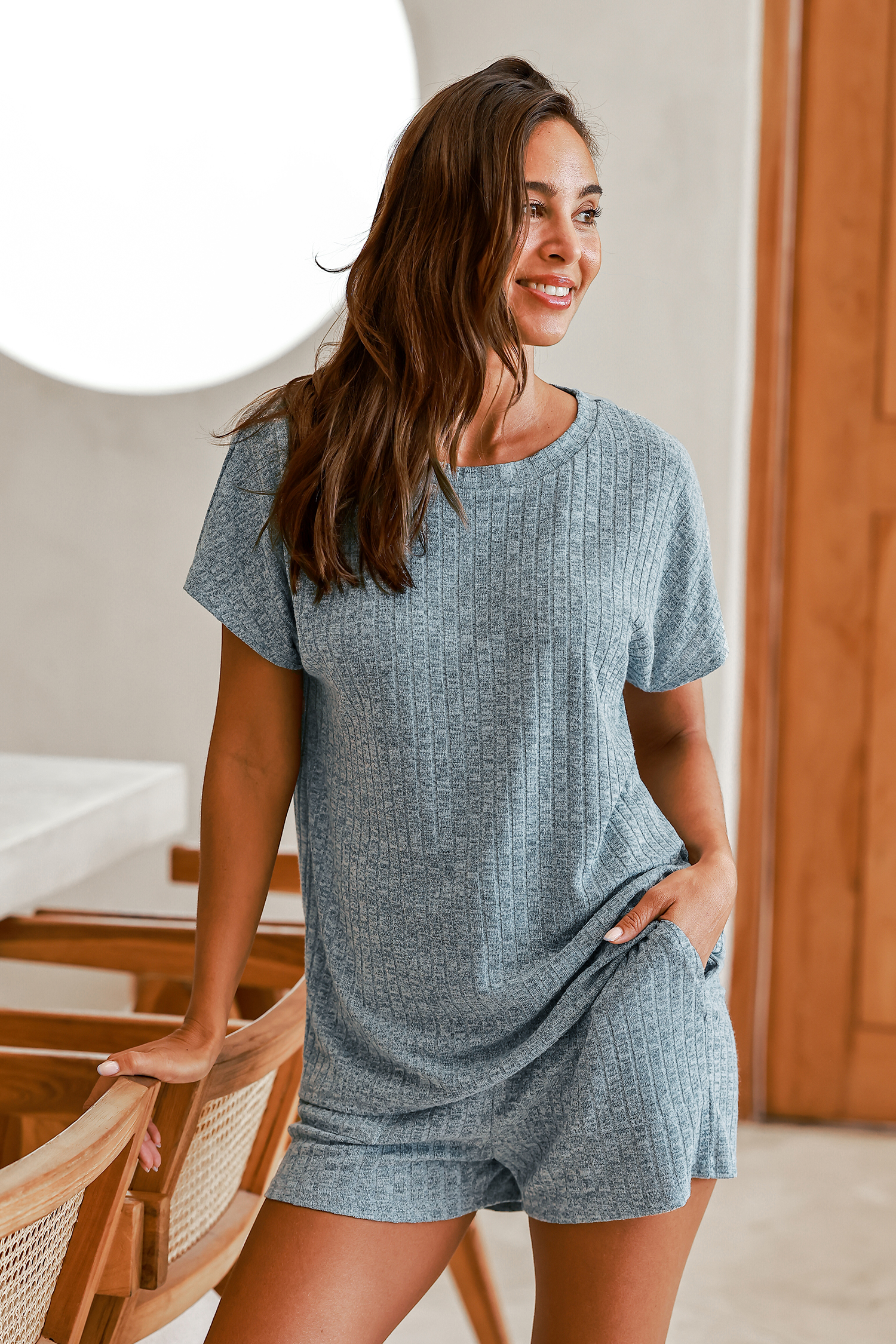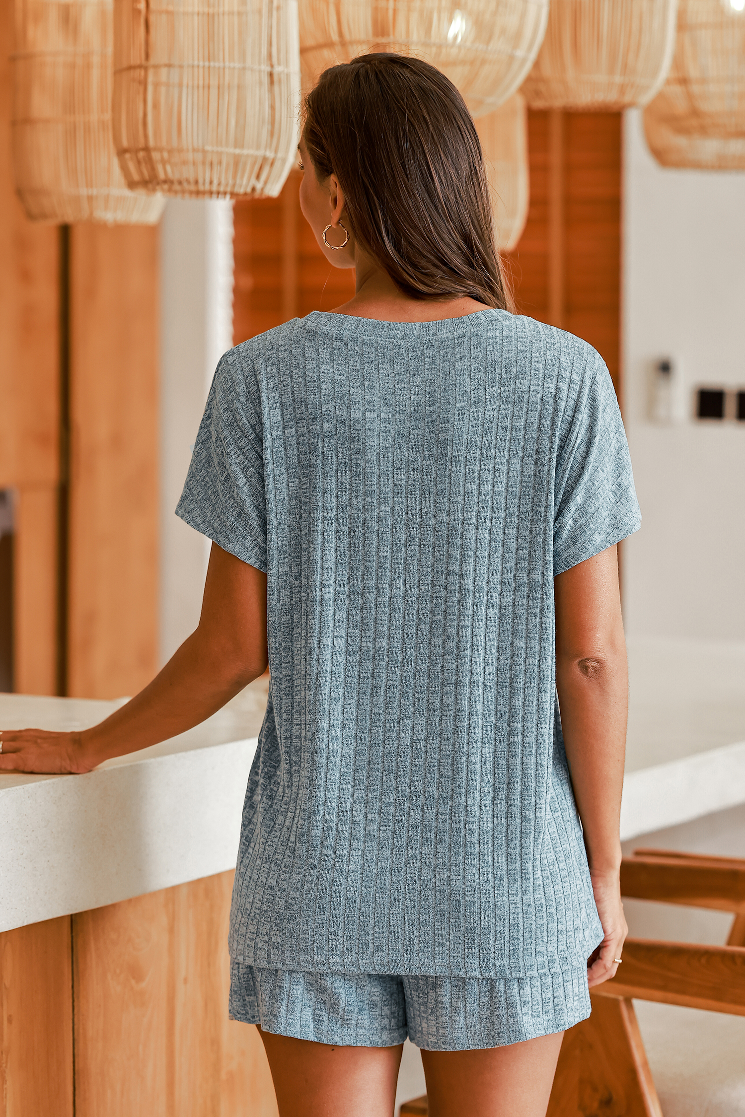 Ensemble de pyjama en tricot côtelé avec manches courtes et short