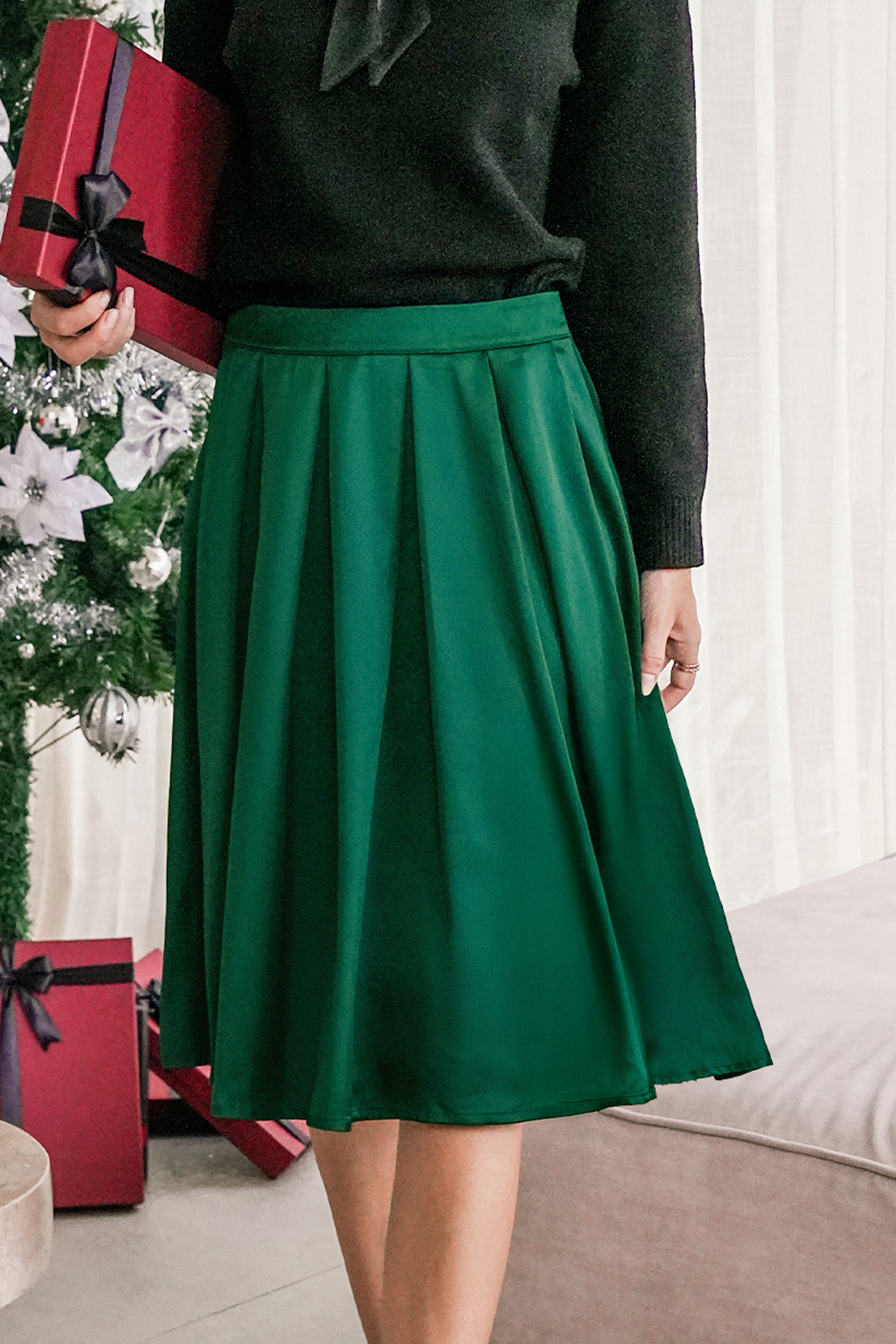 Jupe verte plissée fermeture éclair sur le côté
