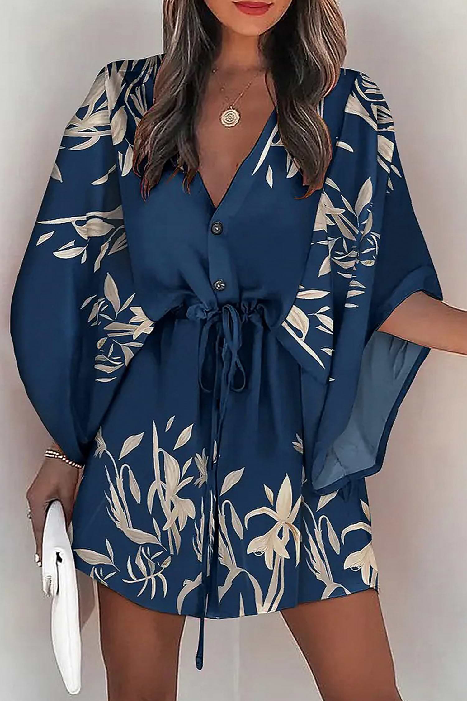 Robe lâche à manches évasées et col en V