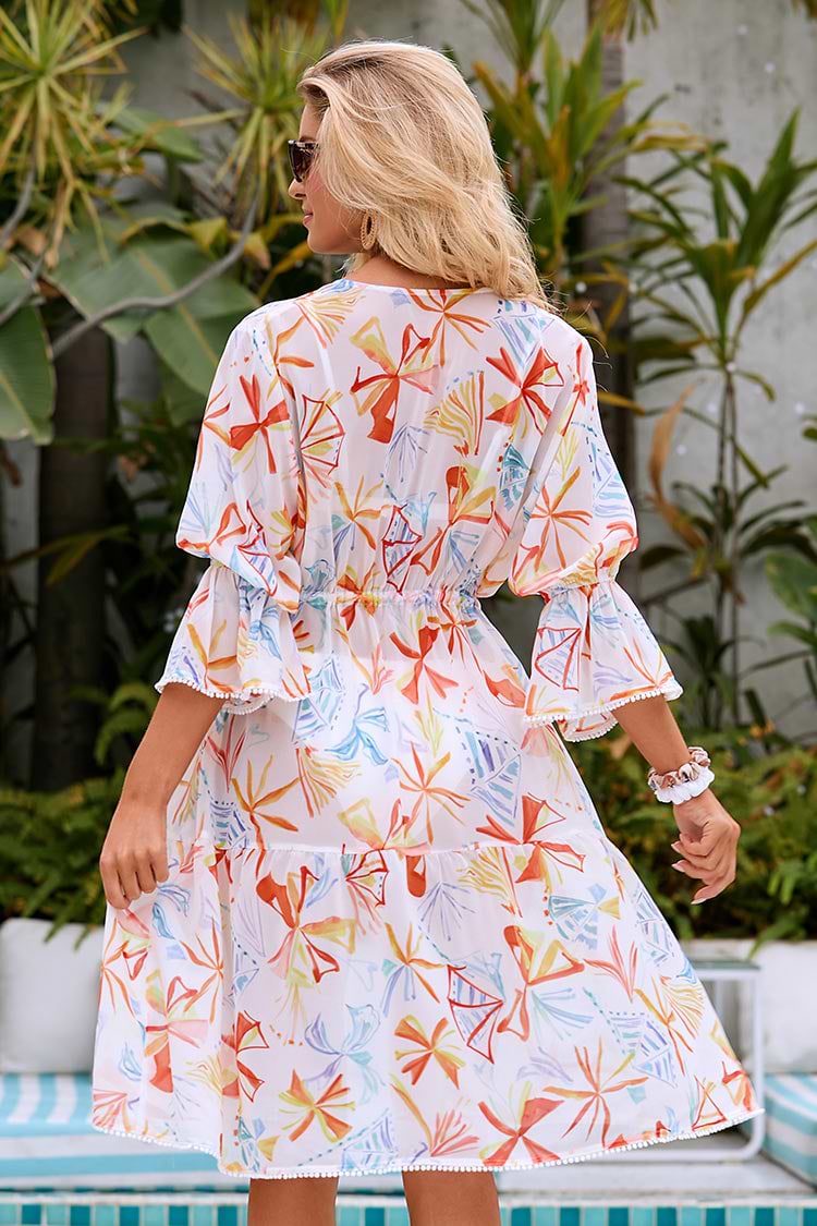 Robe trapèze graffitie à manches bouffantes et col en V