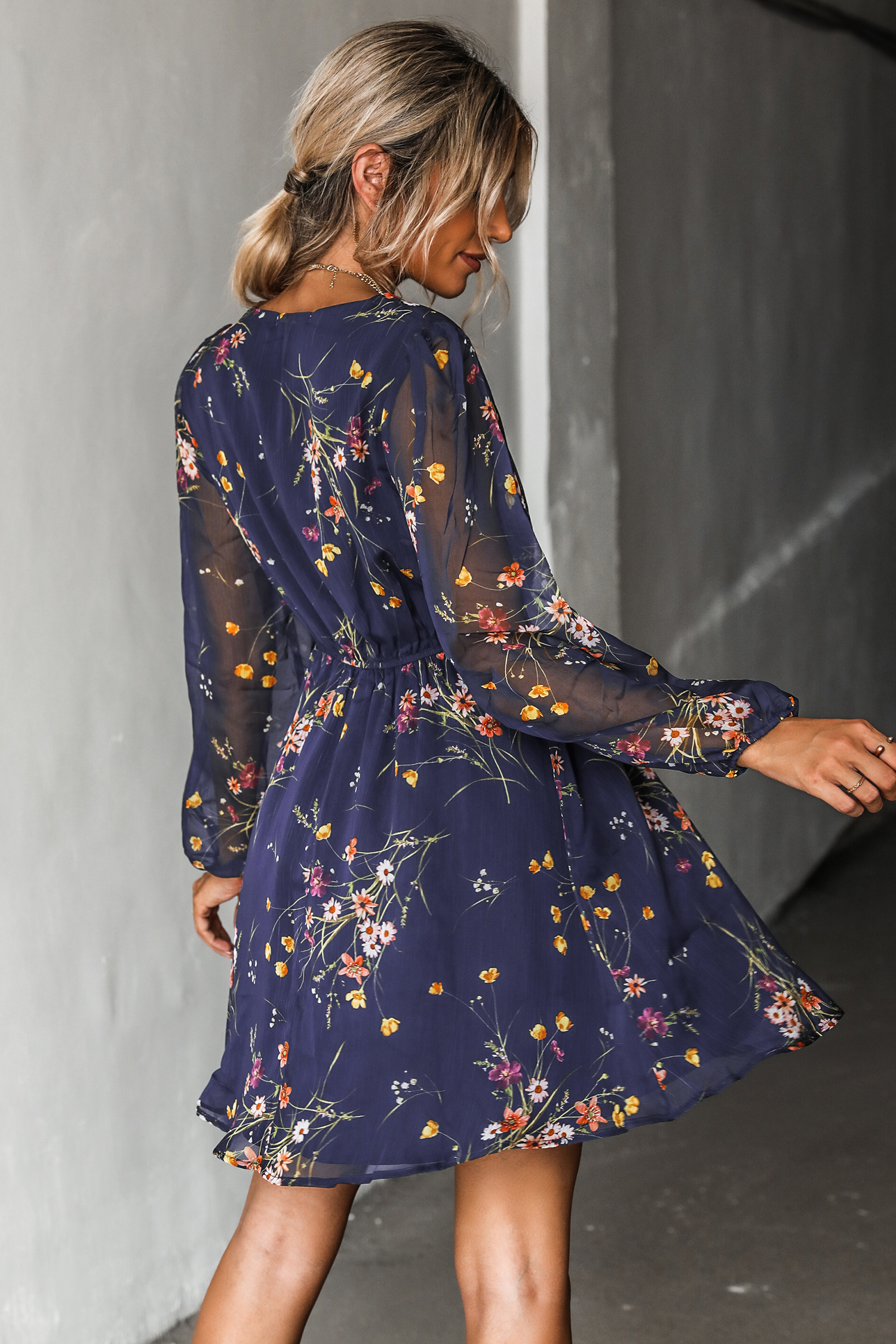 Vous pourriez attraper vos meilleures amies et se rendre au brunch dans cette robe trapèze courte en mousseline à imprimé fleuri, col surplis, taille élastiquée, manches longues paysannes semi-transparentes, doublure intégrale et silhouette trapèze.