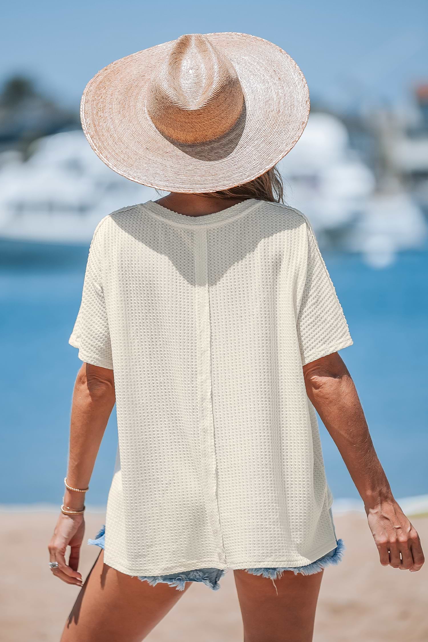 T-shirt en tricot gaufré à col rond avec manches courtes