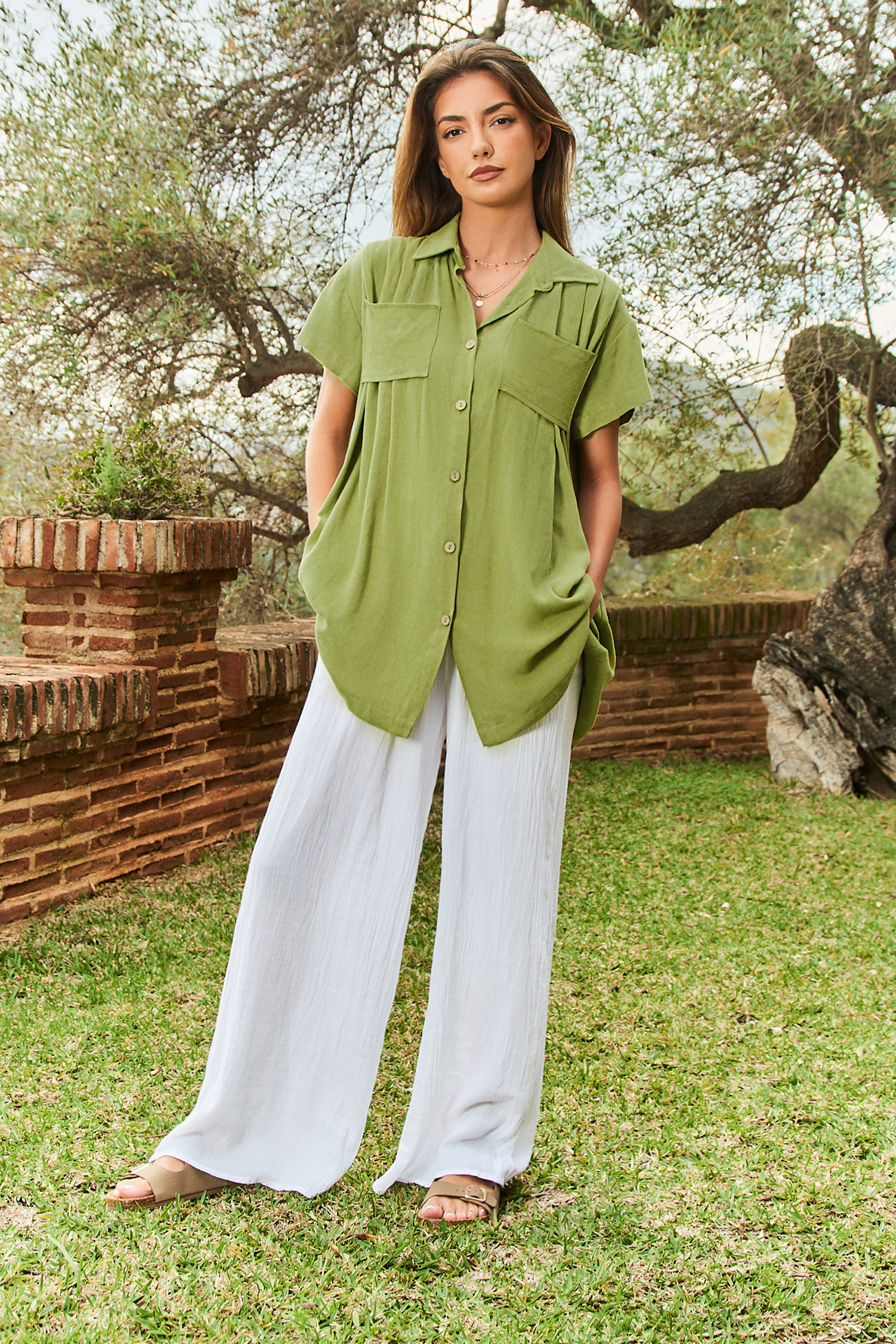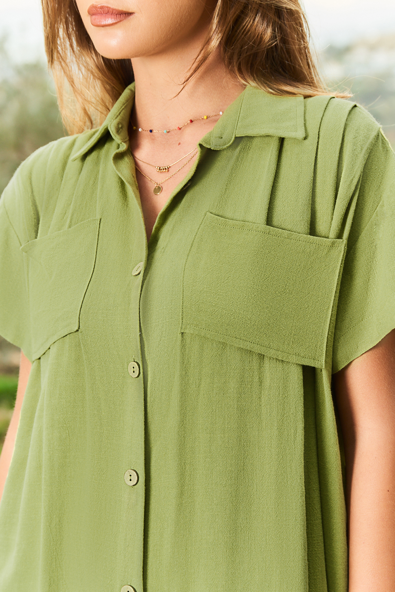 HomeChemise ruchée à boutons verte
