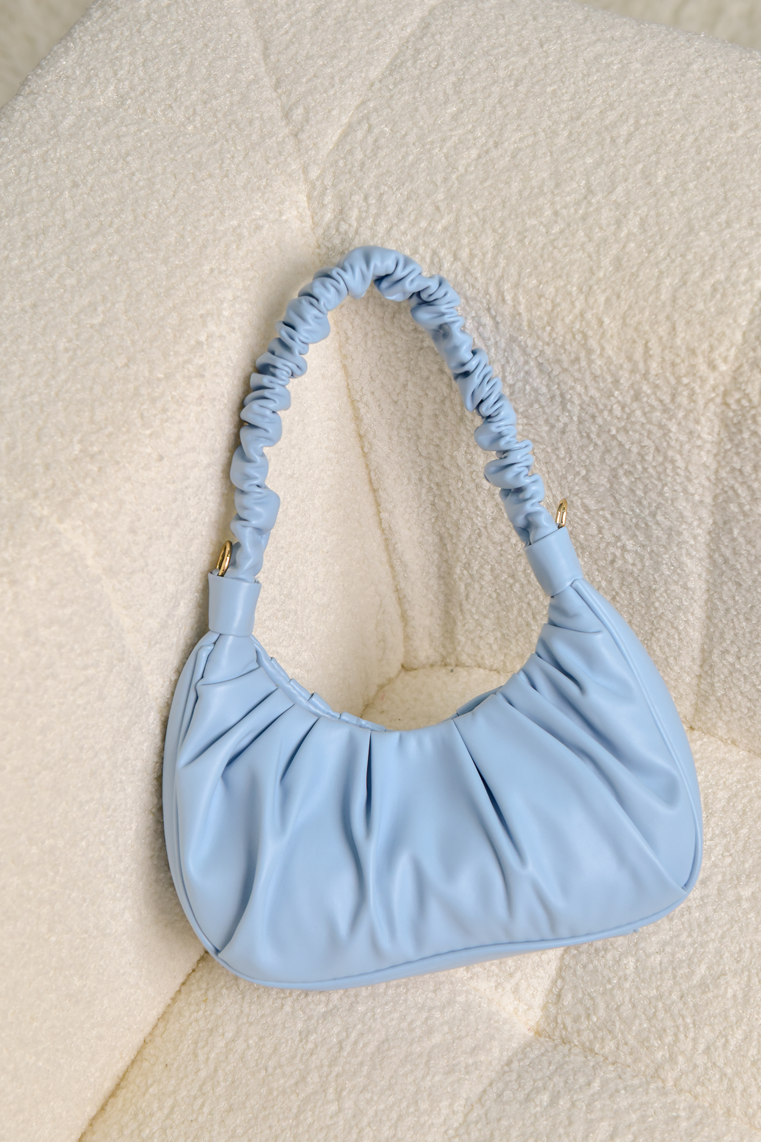 Sac à bandoulière baguette en cuir vegan bleu ciel