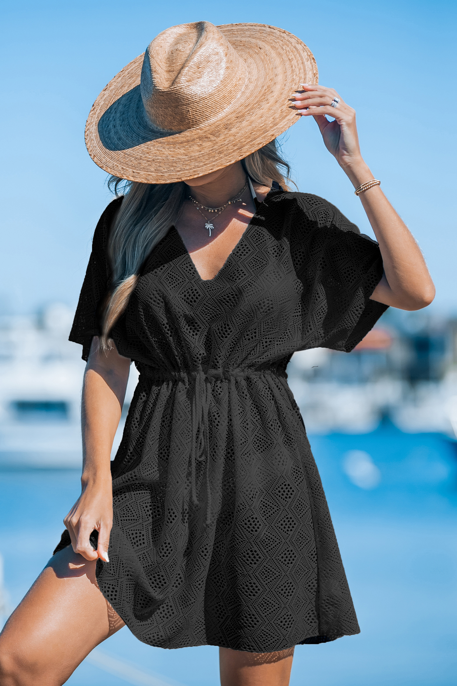 Robe cover up à manches courtes noire et transparente
