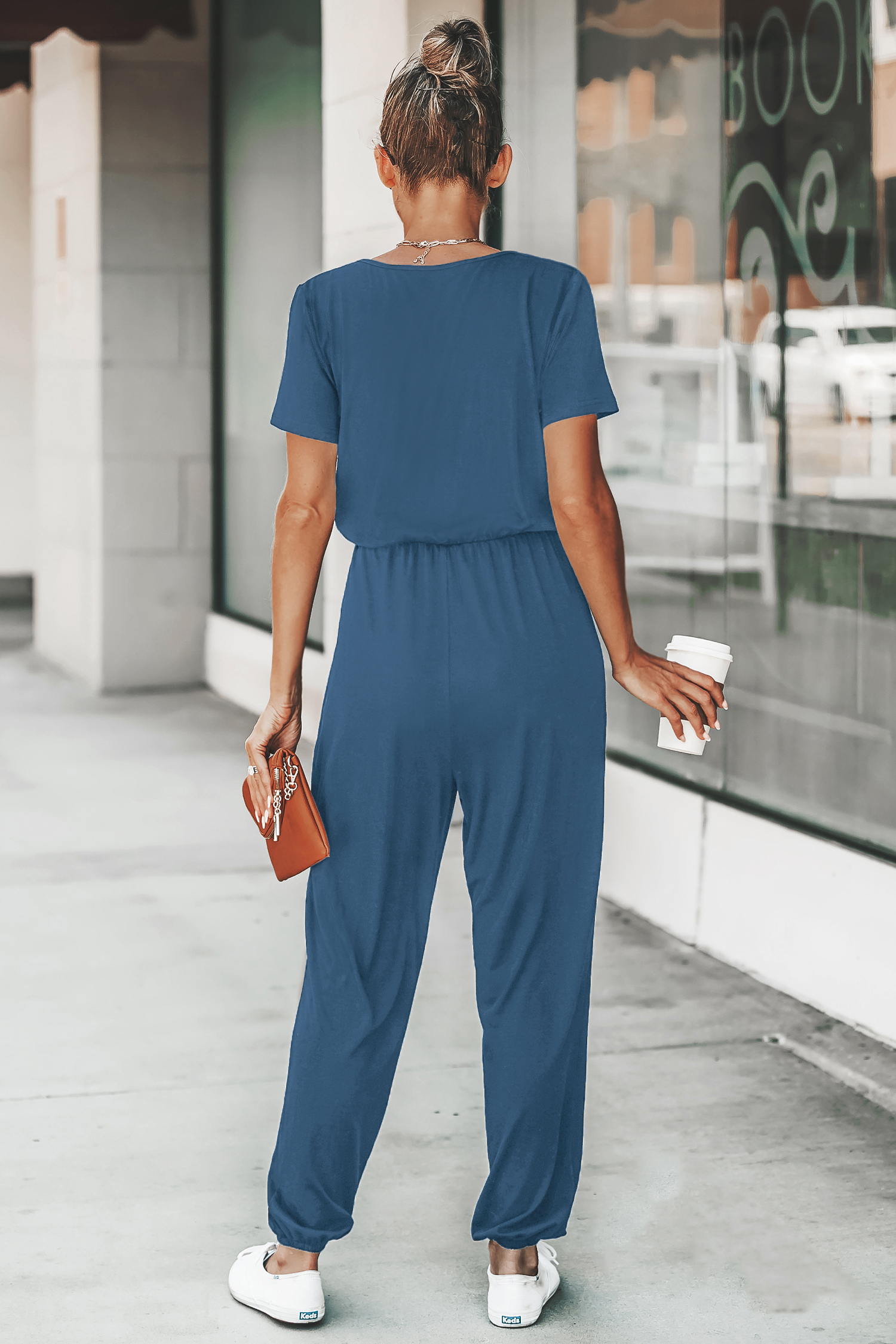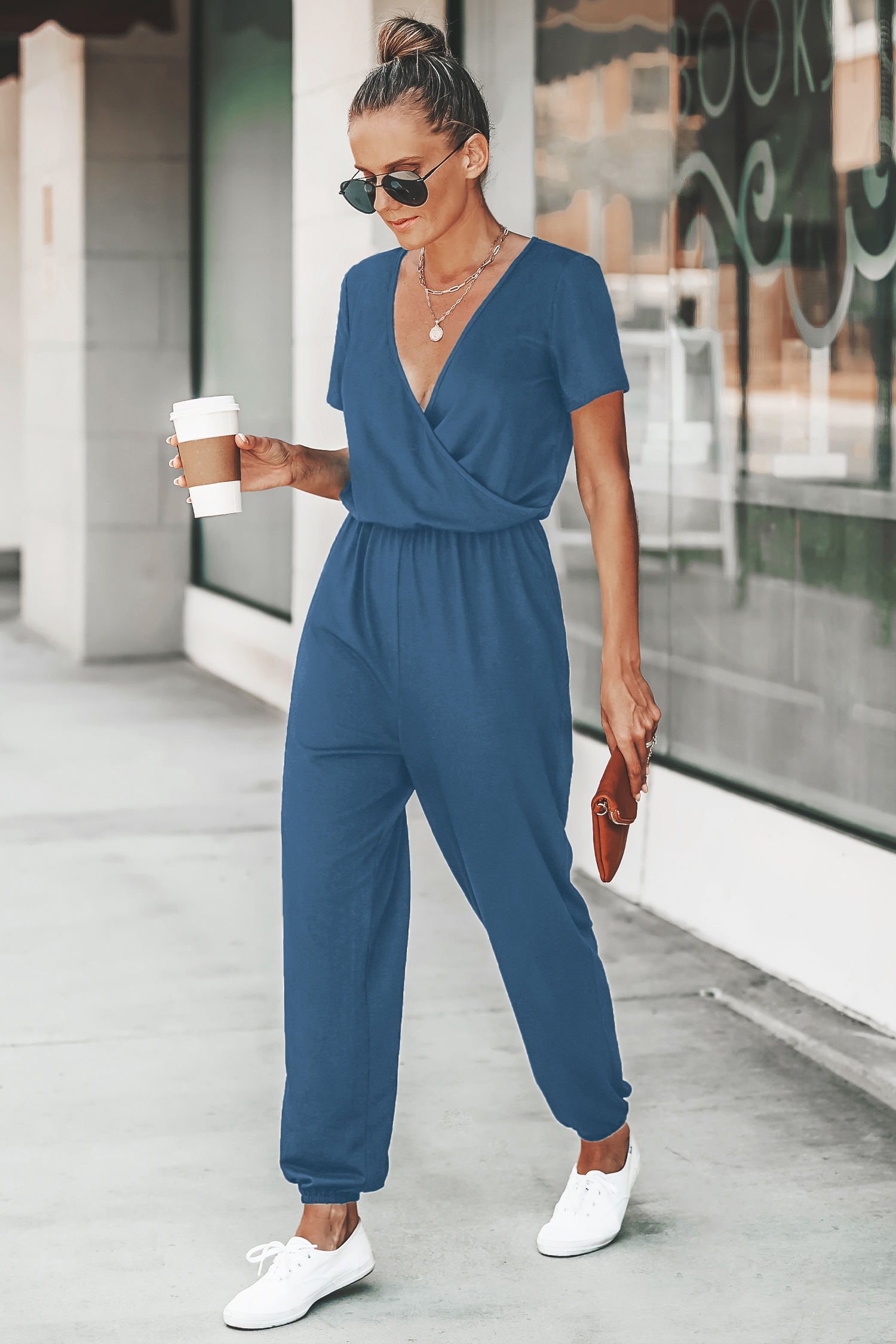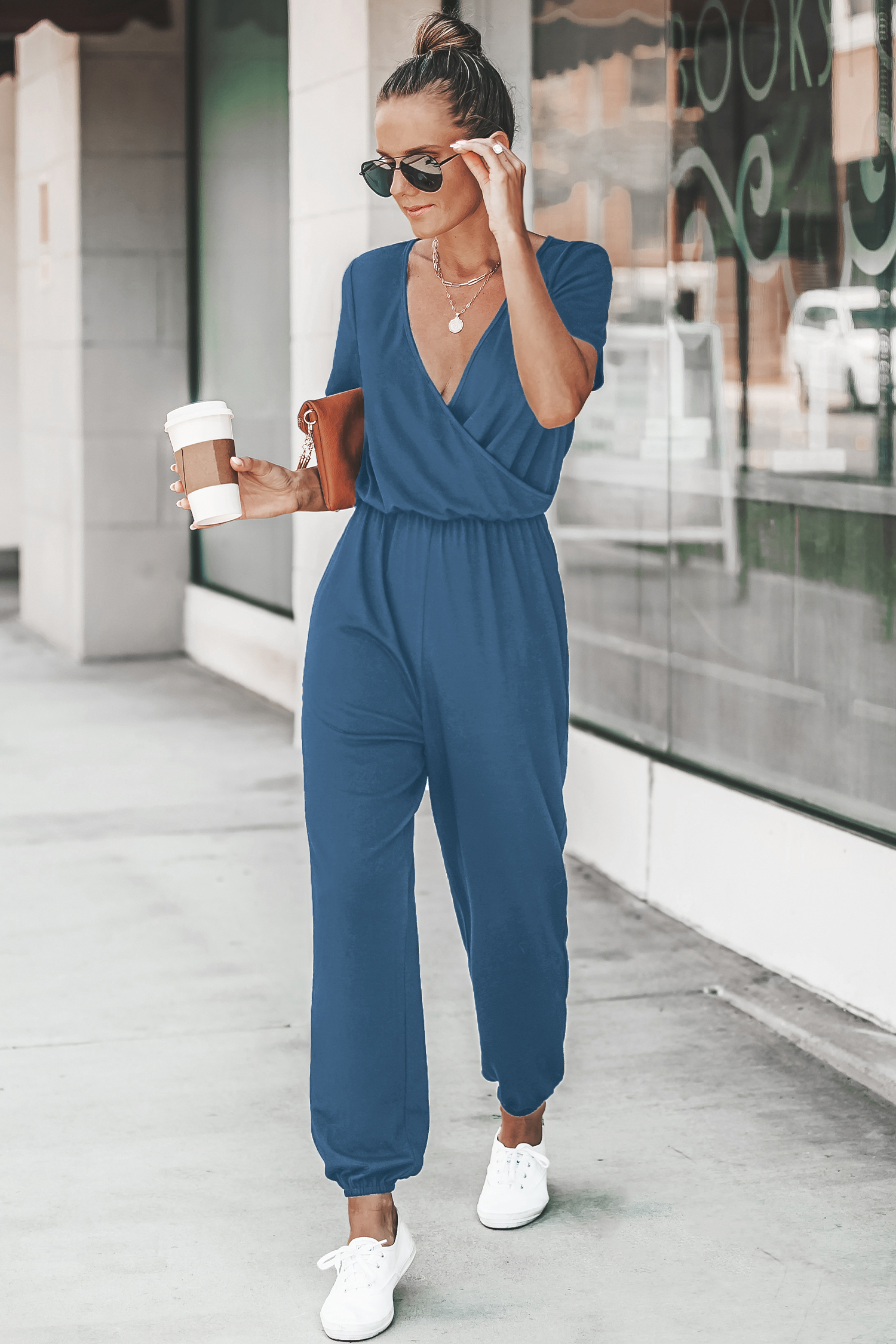 Combinaison à col surplis et manches courtes avec jambes trapèze