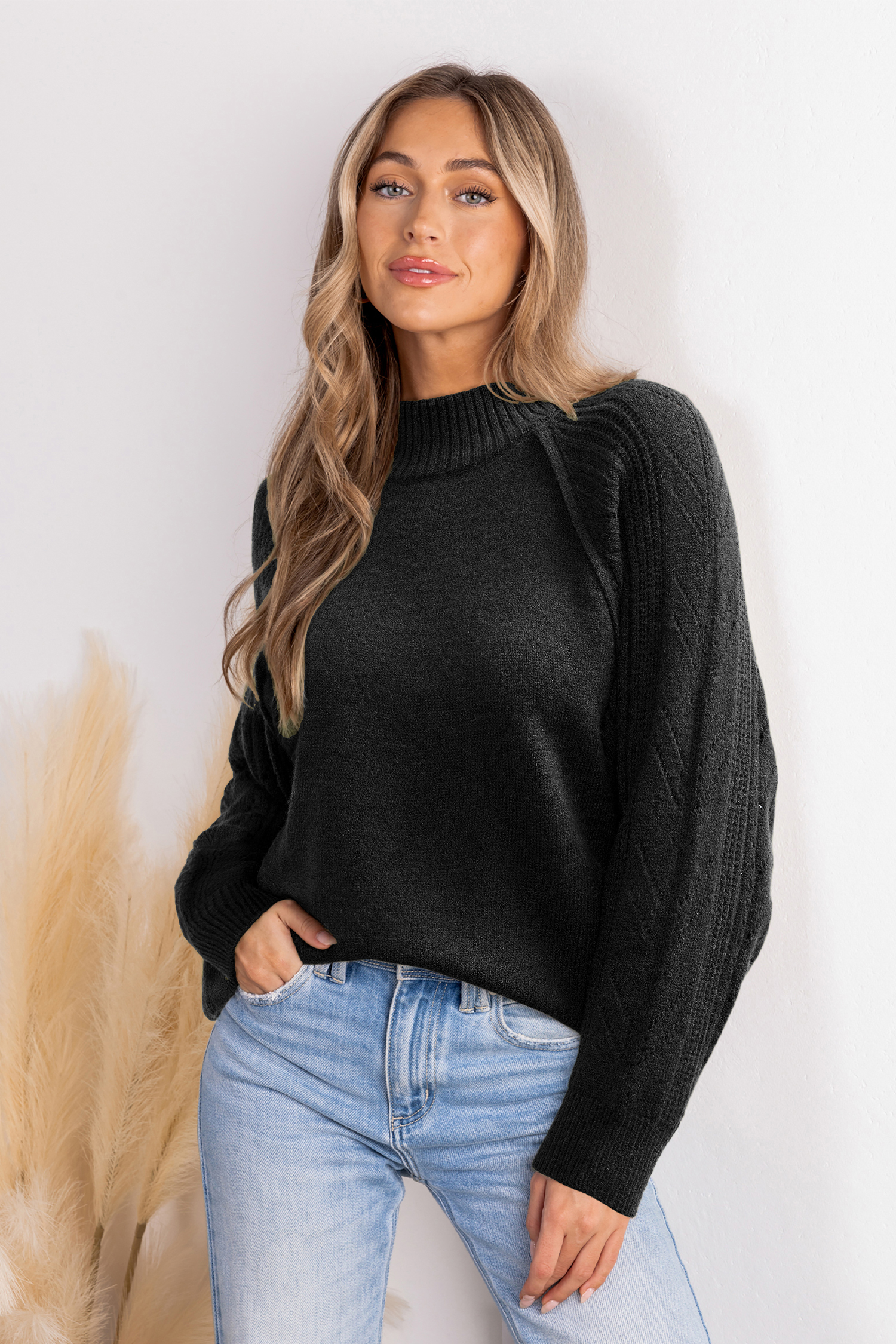Le pull à col roulé noir est audacieux et élégant ! Sa coupe ample et ses manches longues en font une pièce phare à superposer ou à porter seule pour un effet affirmé.