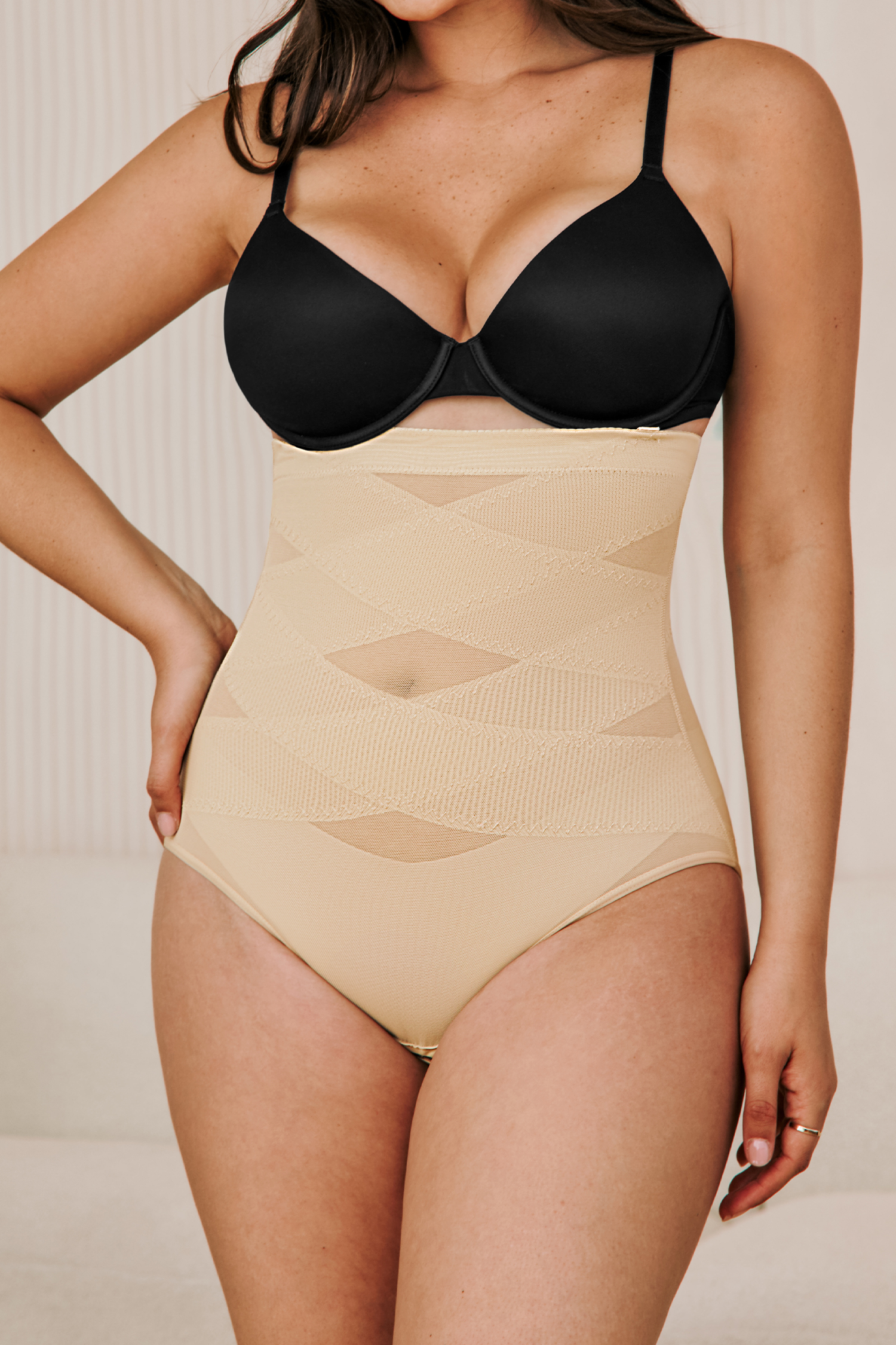 Les gaines sculptantes sont ajustées pour modeler la silhouette — prenez une taille au-dessus pour une coupe plus ample.