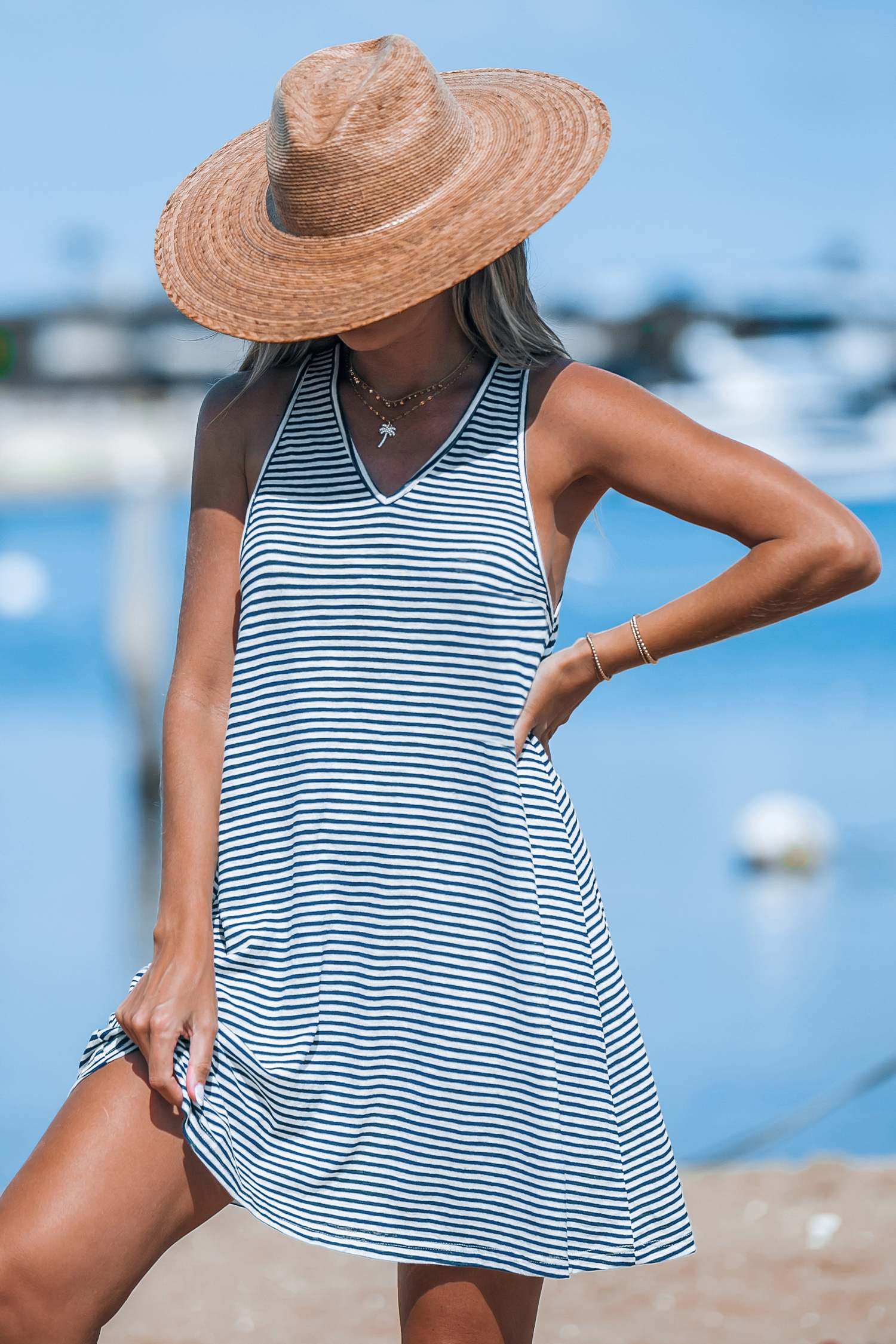 Robe cover up sans manches avec col en V et rayures