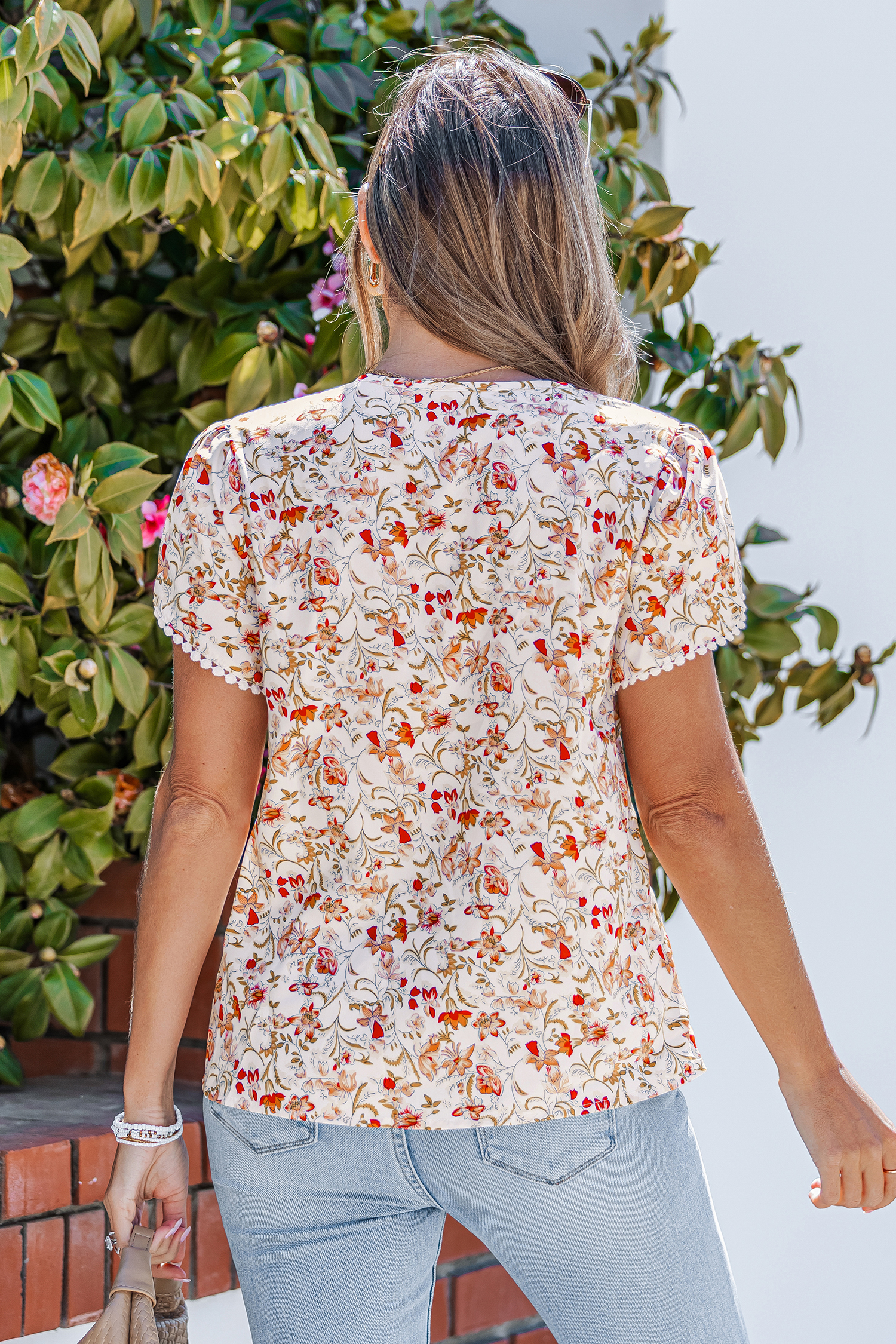 HomeTop floral dentelle contrastée