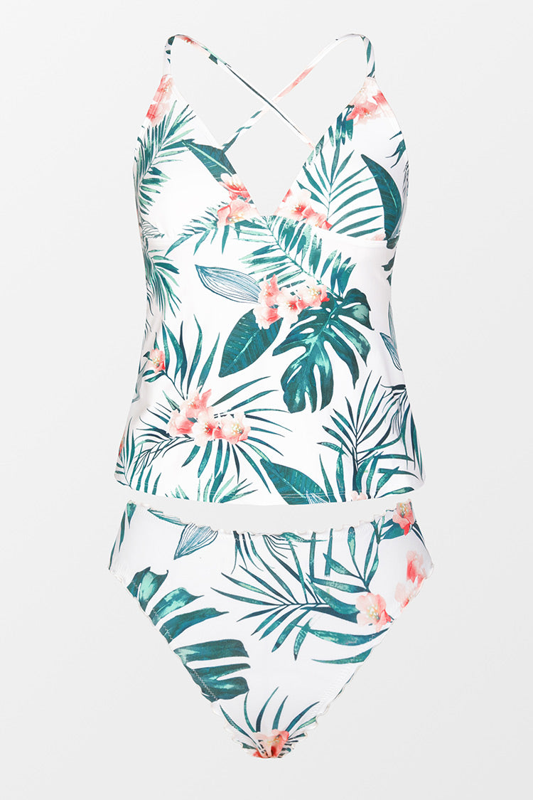 Tankini à bordure merrow hipster imprimé feuilles tropicales