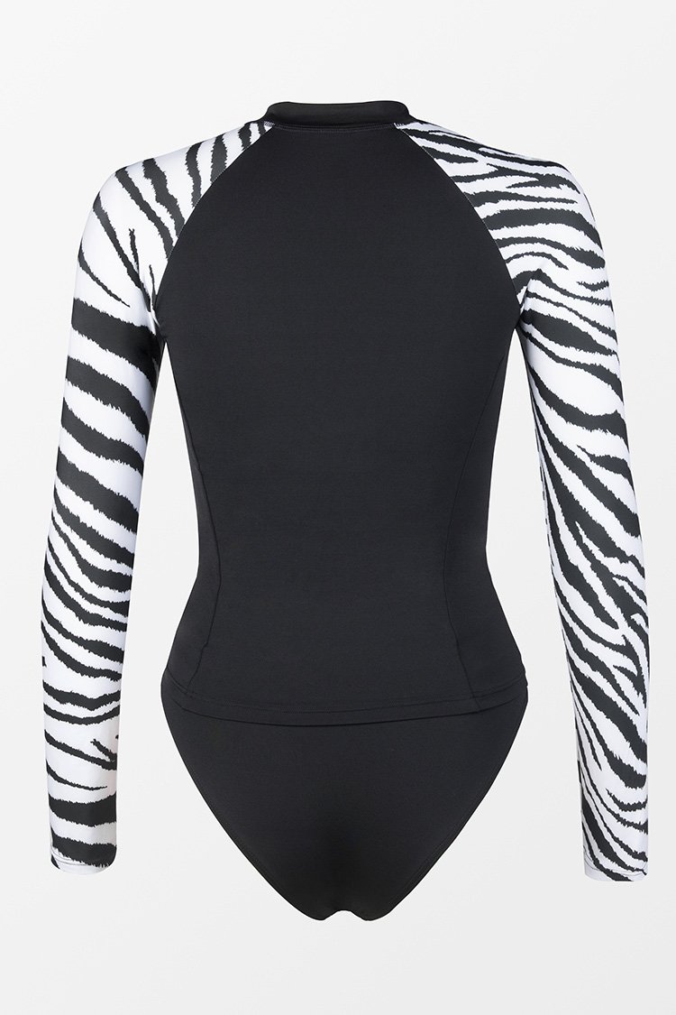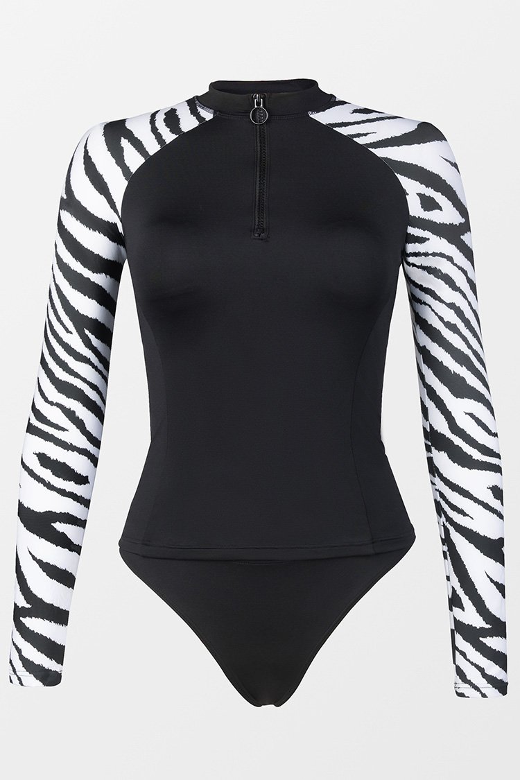 Tankini à manches longues avec un col roulé et imprimé zèbre