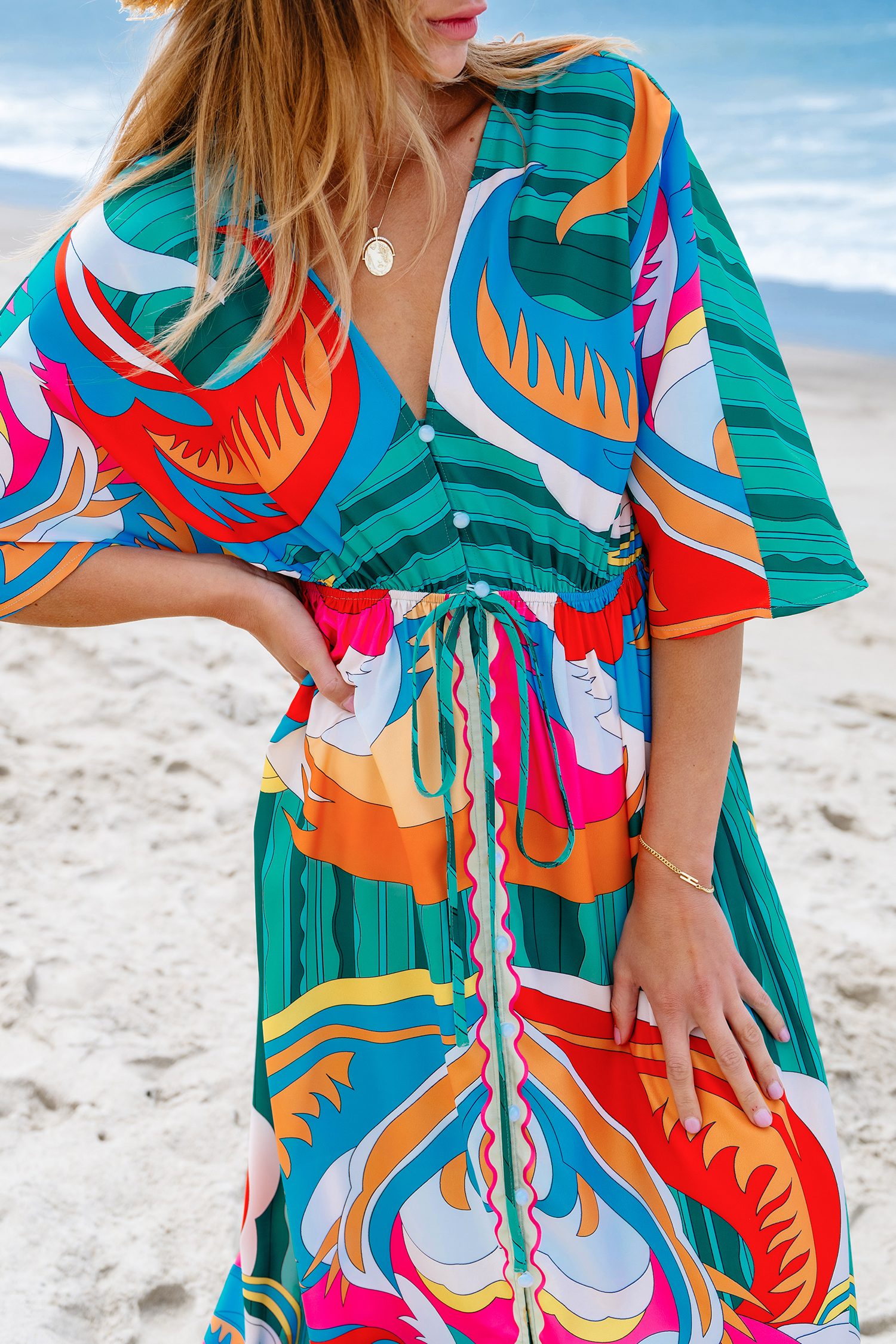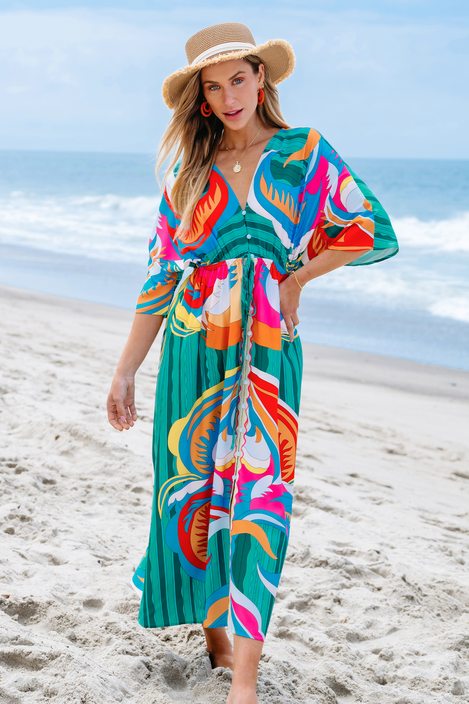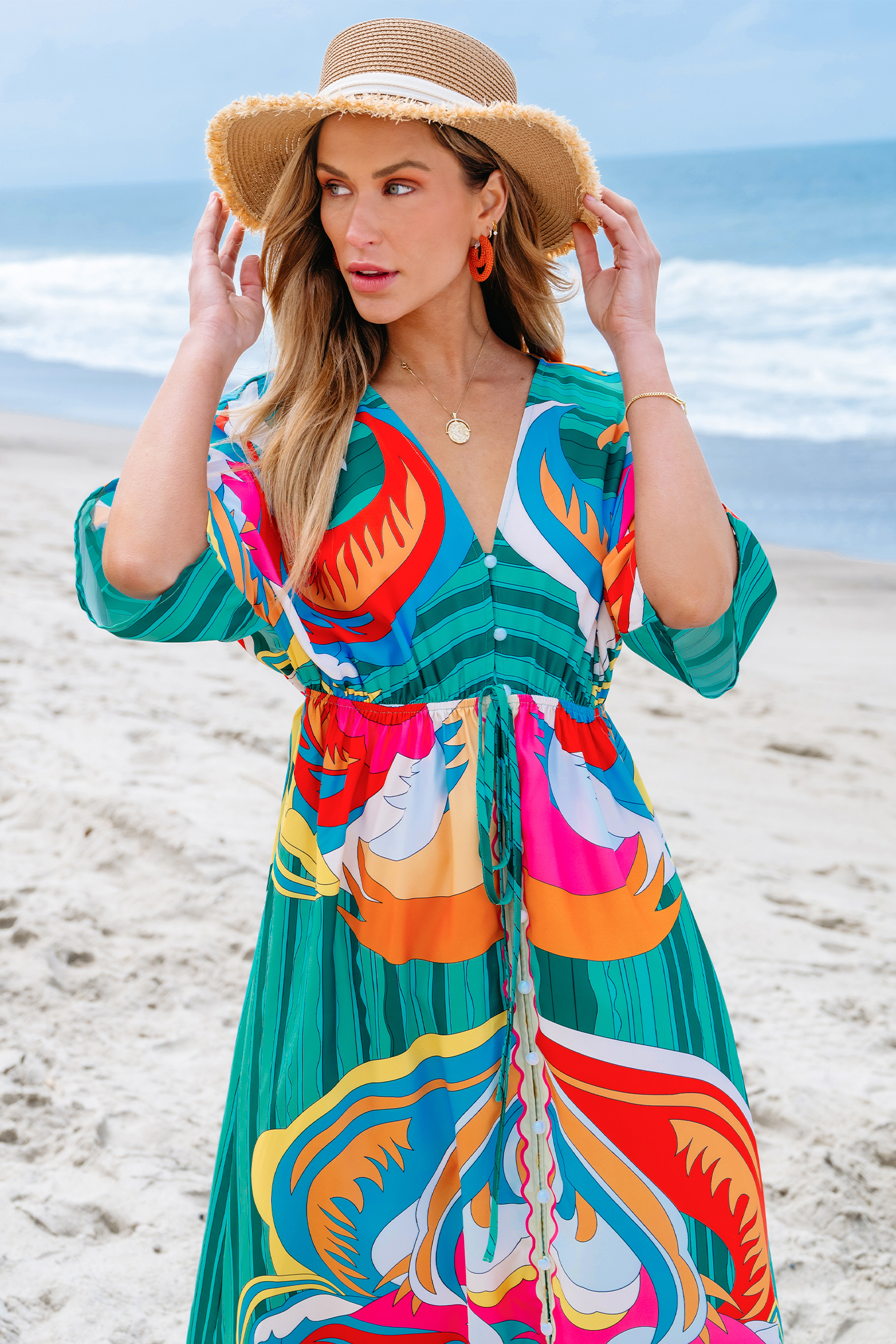 Robe maxi avec taille à nouer et imprimé abstrait tropical