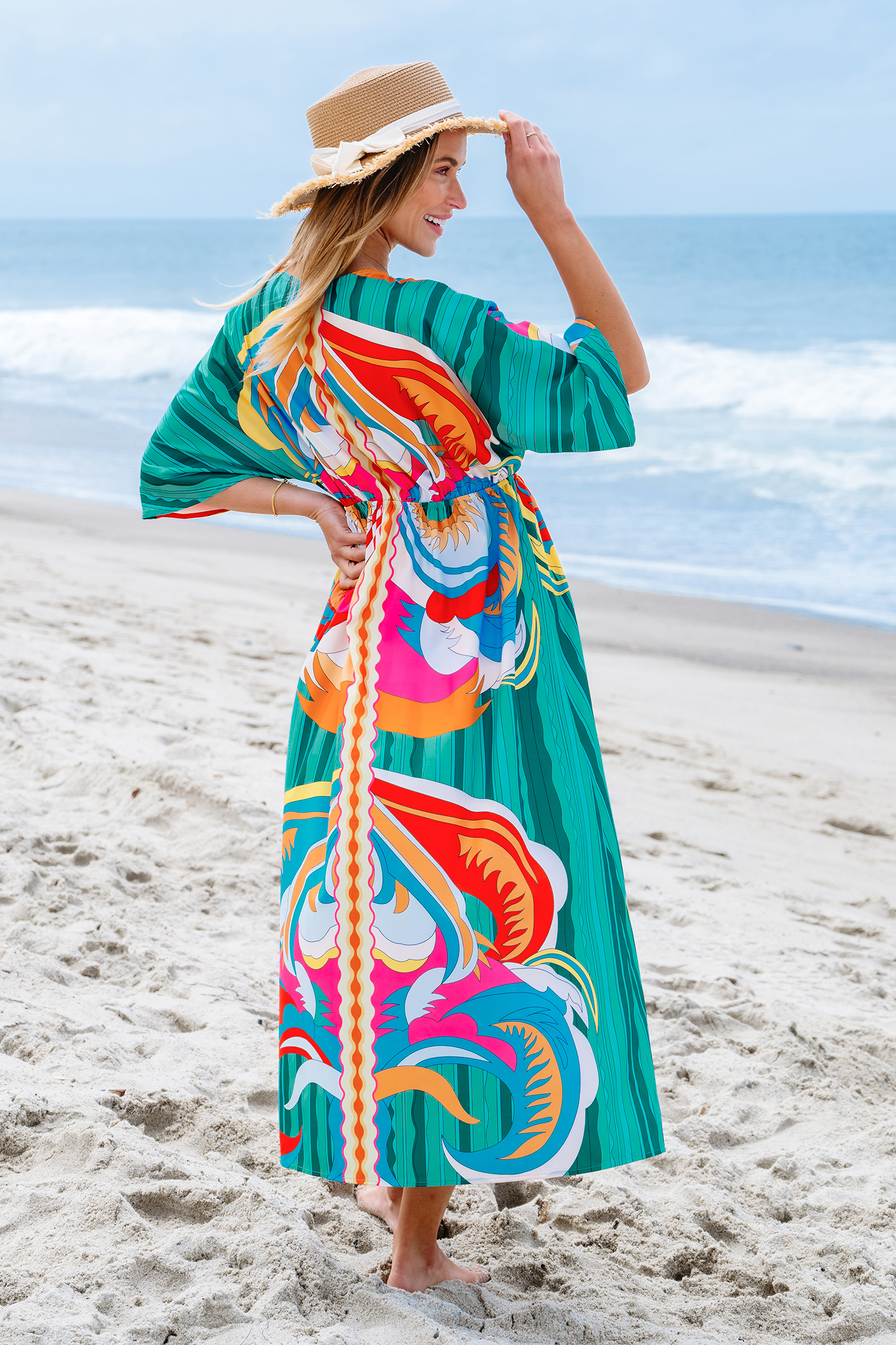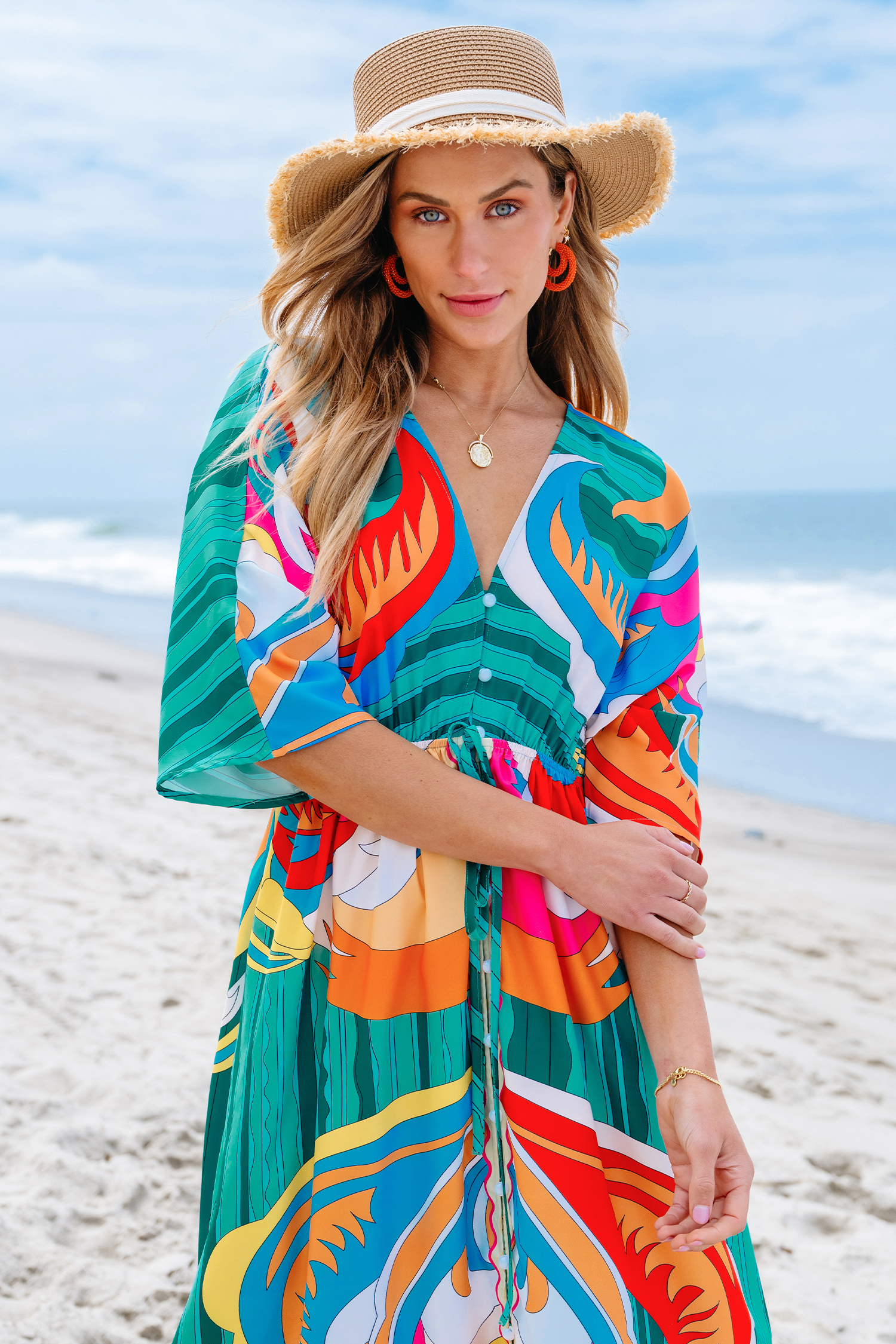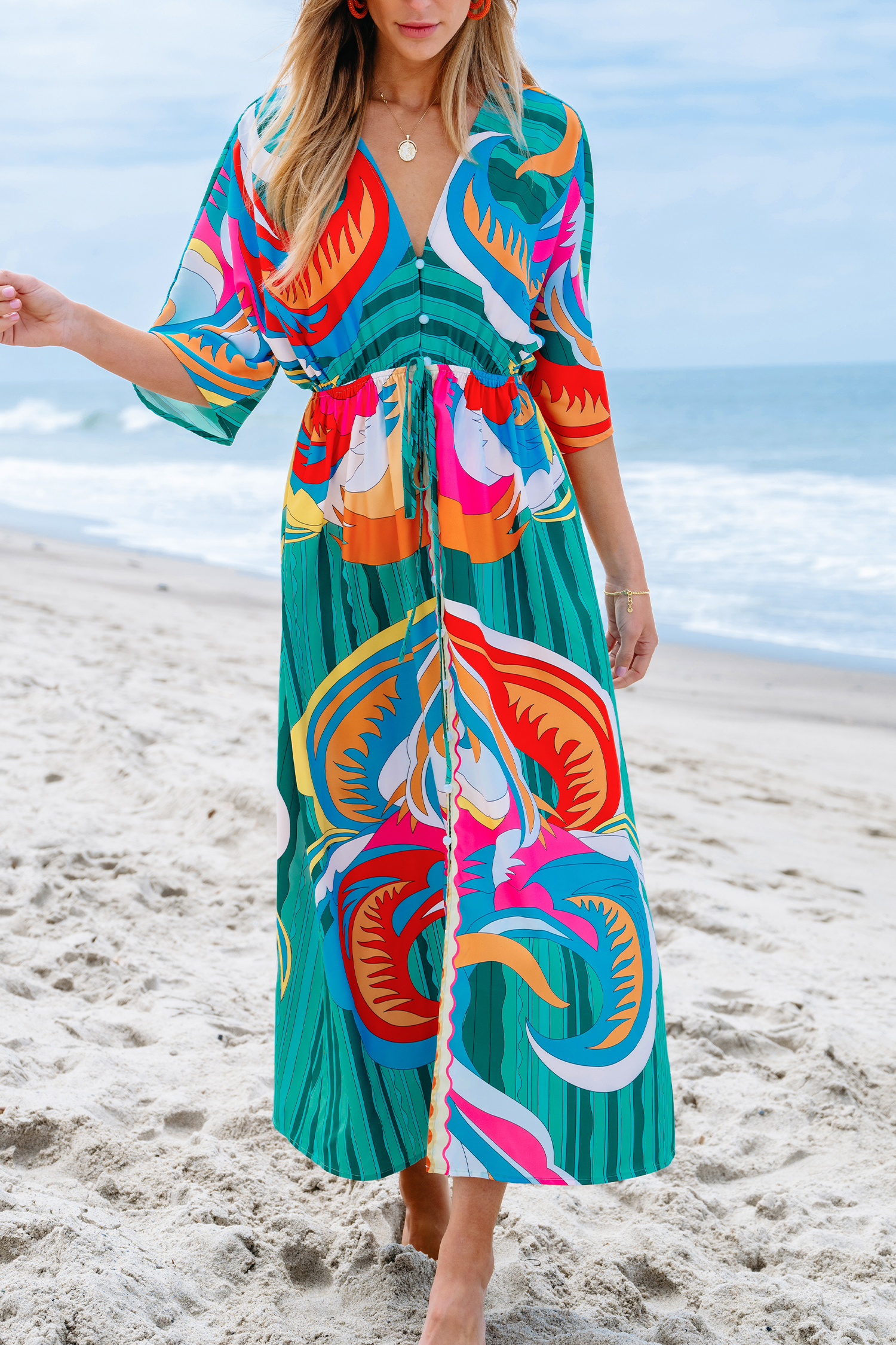 Robe maxi avec taille à nouer et imprimé abstrait tropical