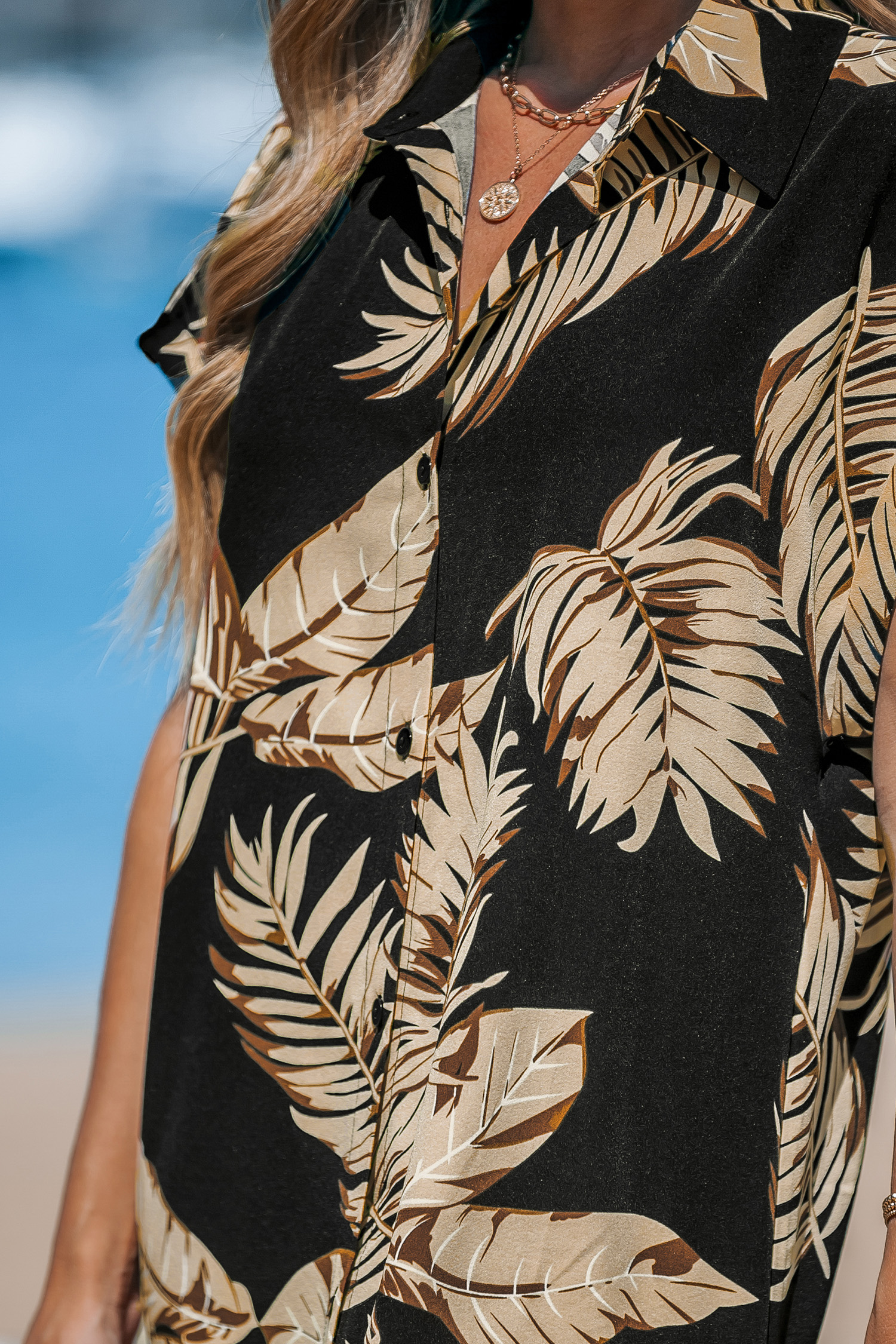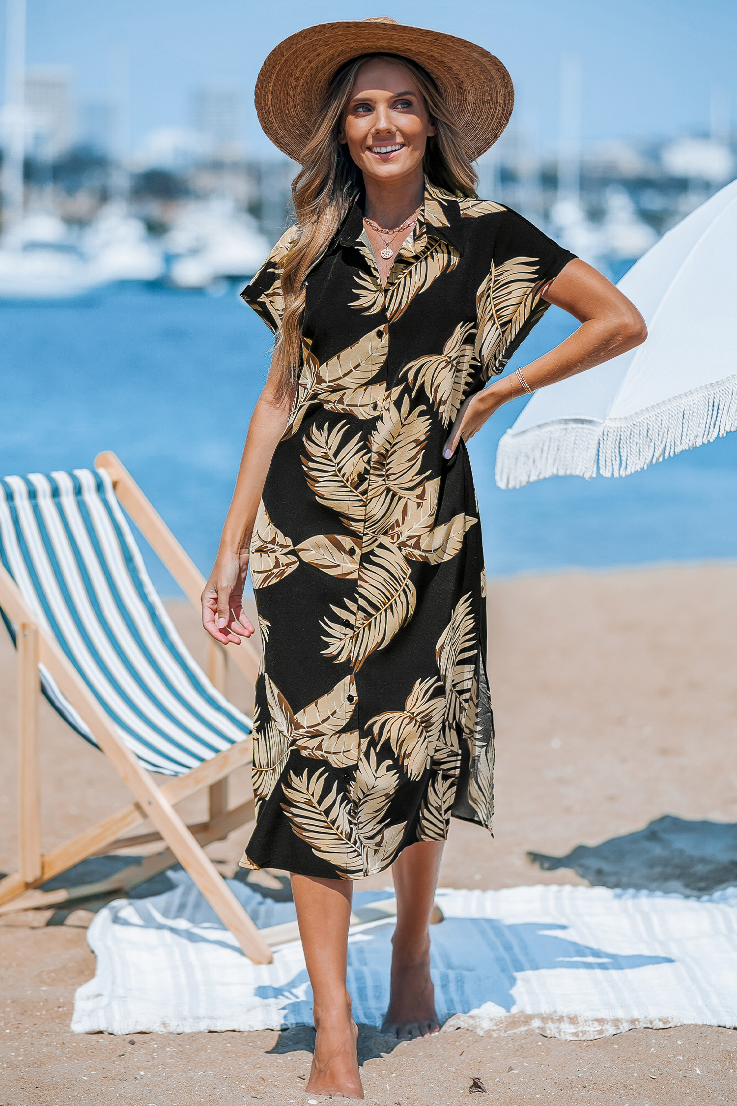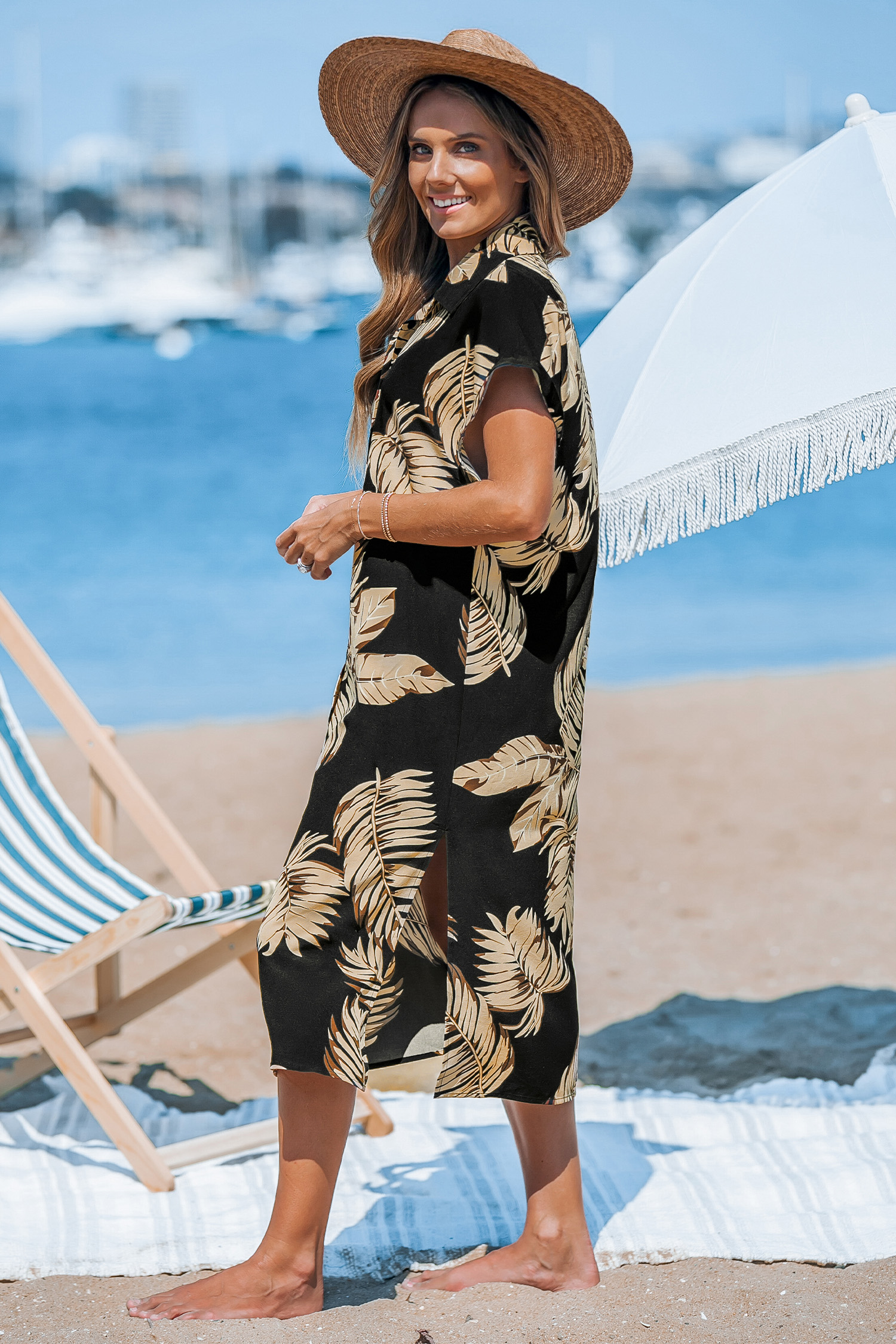 Robe cover up à mancherons et imprimée feuilles tropicales