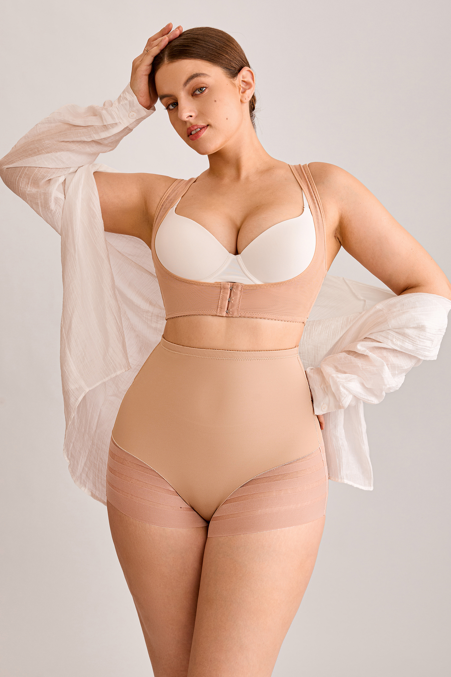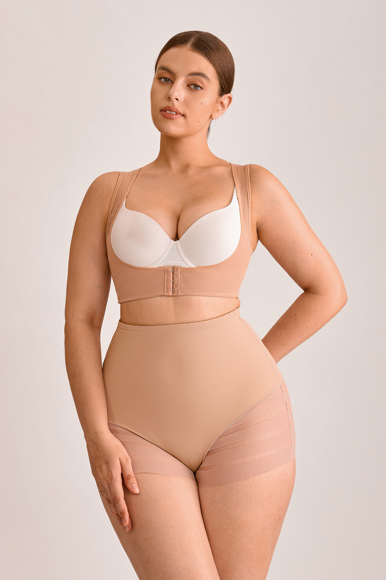 Les gaines sculptantes sont ajustées pour modeler la silhouette — prenez une taille au-dessus pour une coupe plus ample.