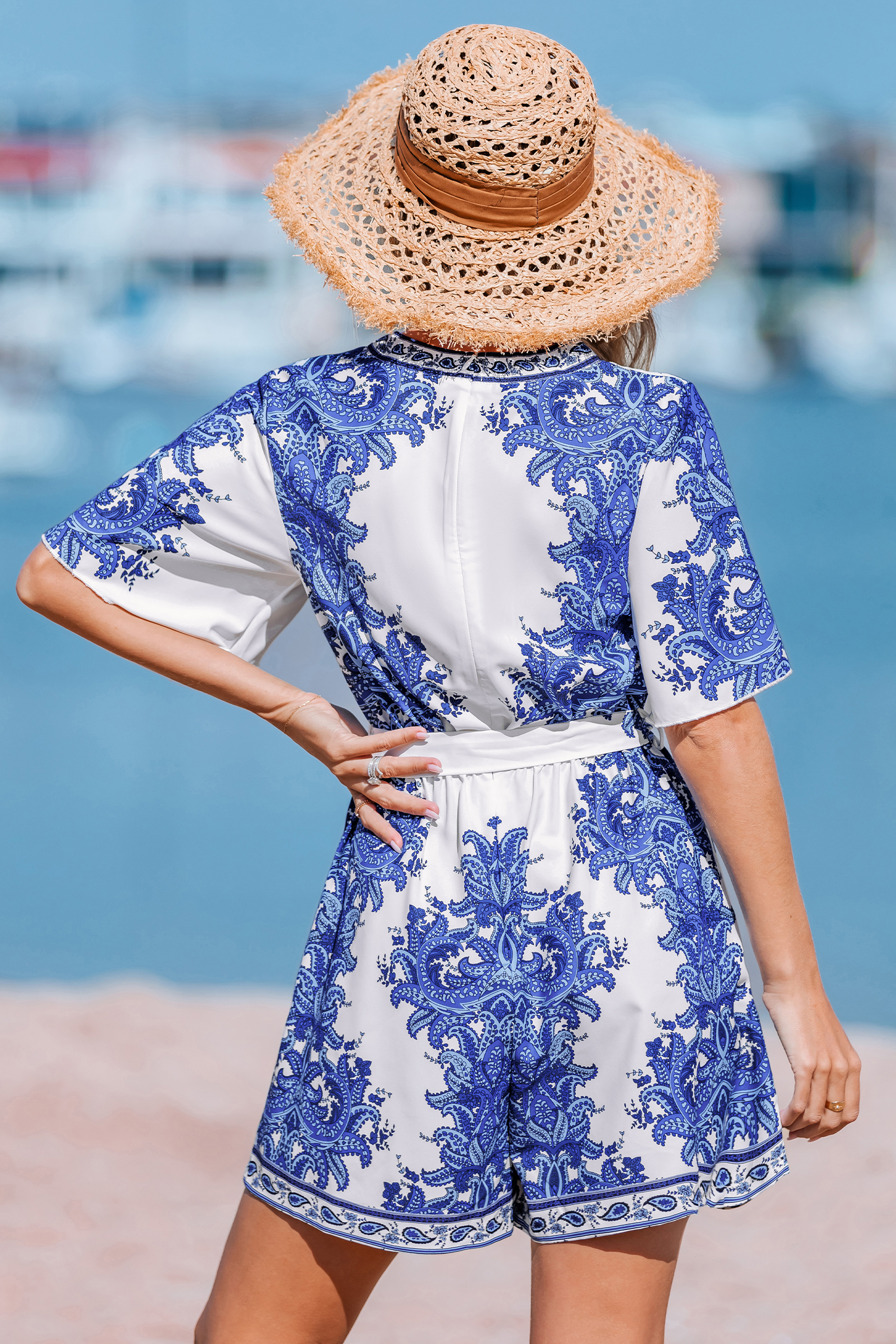 Combishort paisley col V manches courtes
