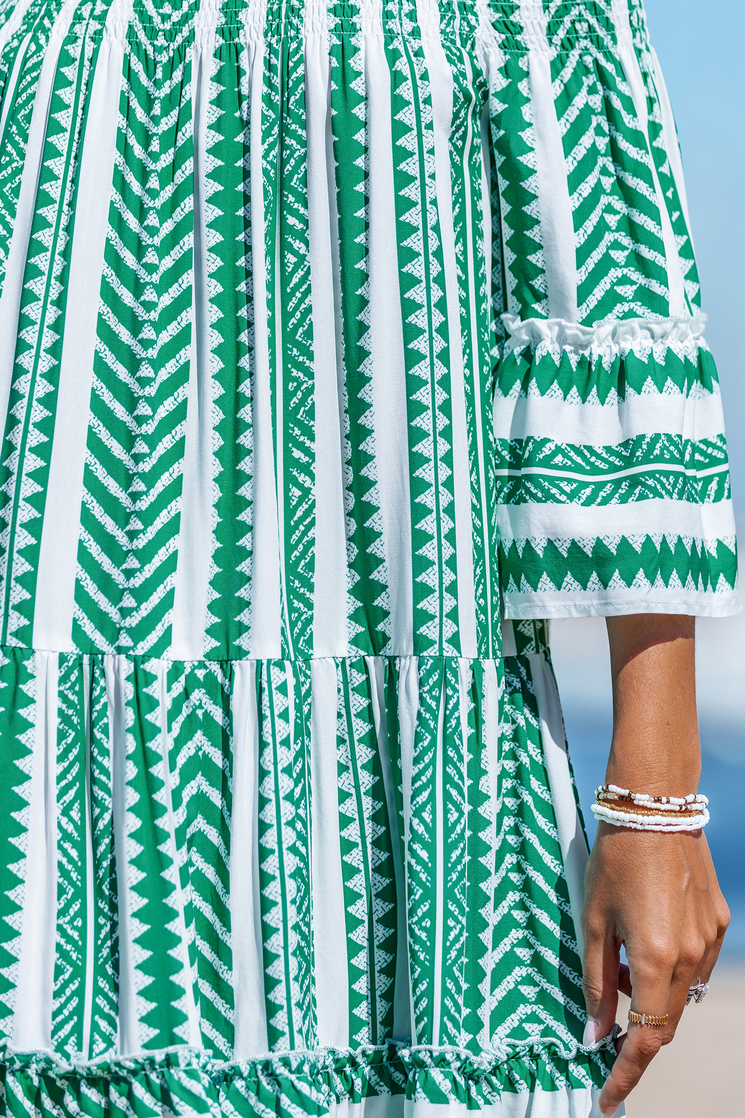 Robe courte géométrique épaule dénudée