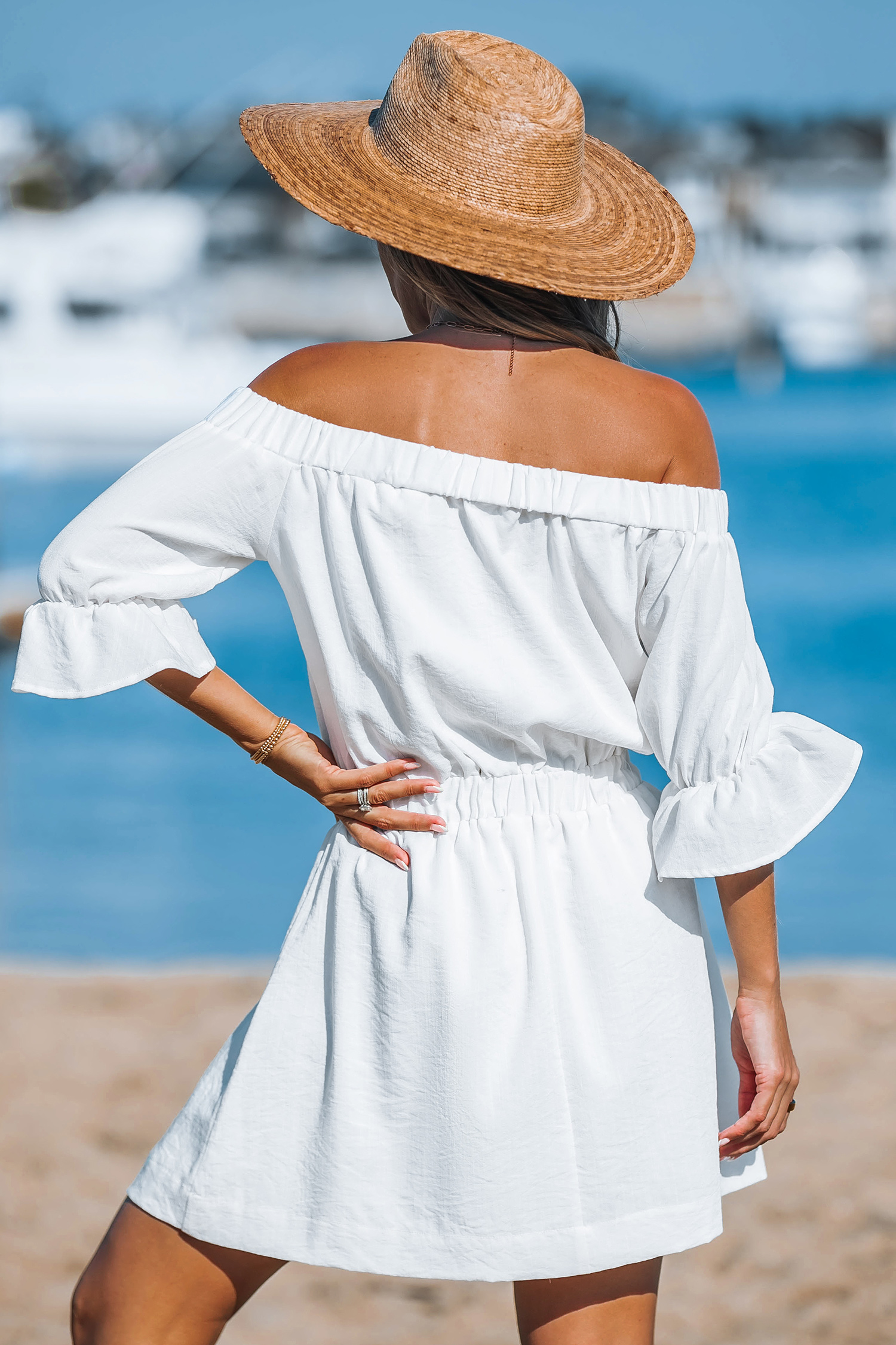 La robe courte à épaule dénuée avec ourlet à volants apporte un vent de fraîcheur à un design classique ! L'épaule dénudée et les manches à volants ajoutent une touche joueuse, tandis que la longueur courte la garde légère et aérienne.