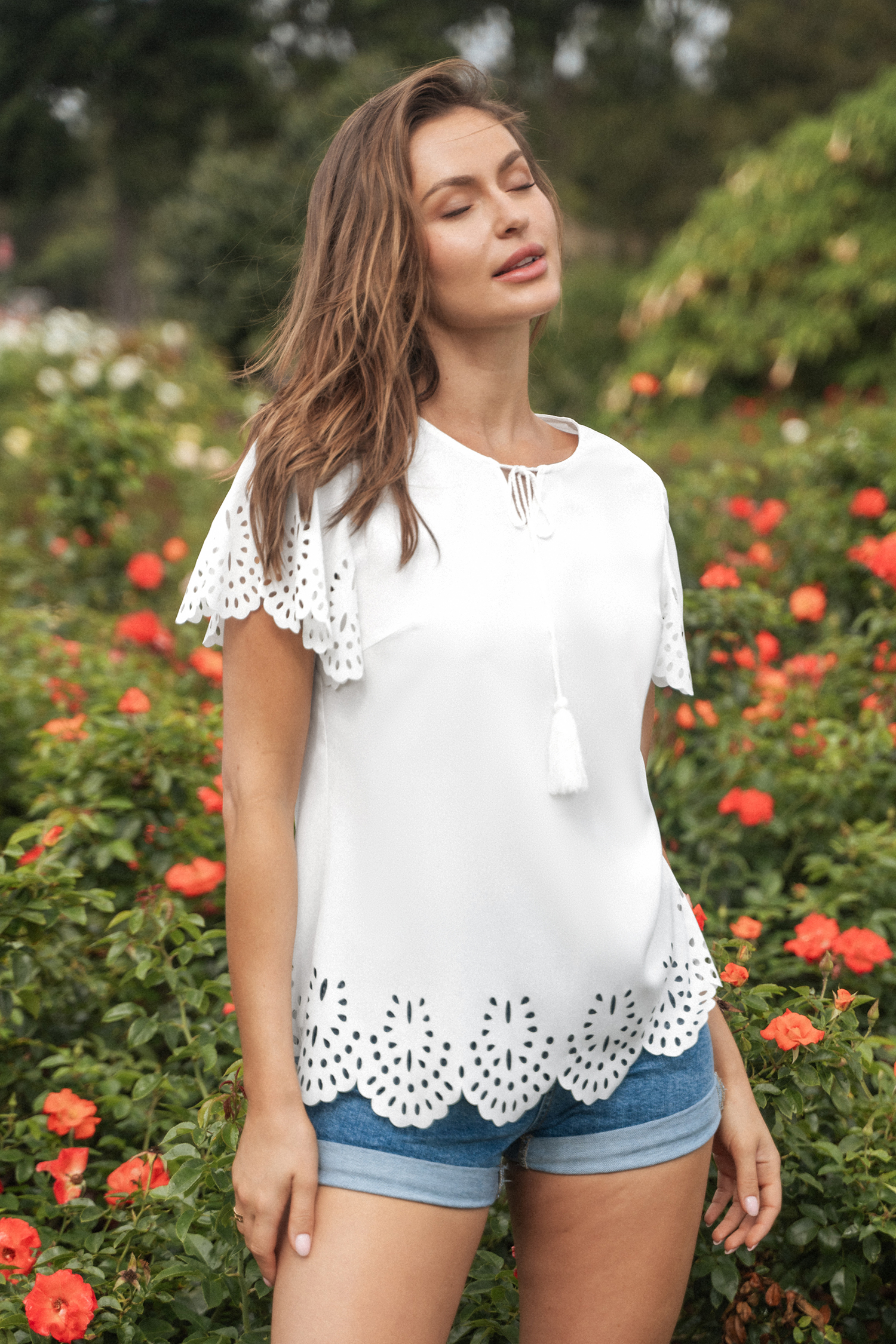 HomeT-shirt avec col rond à nouer avec glands blanc