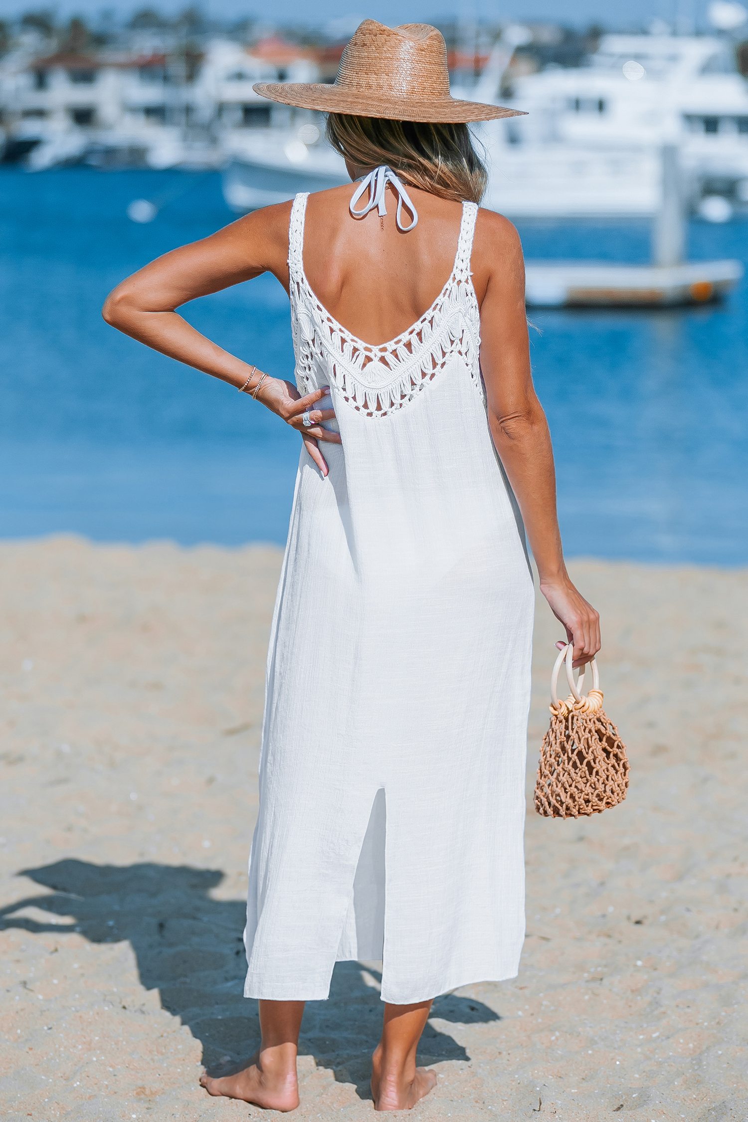 Robe cover up sans manches en crochet blanche