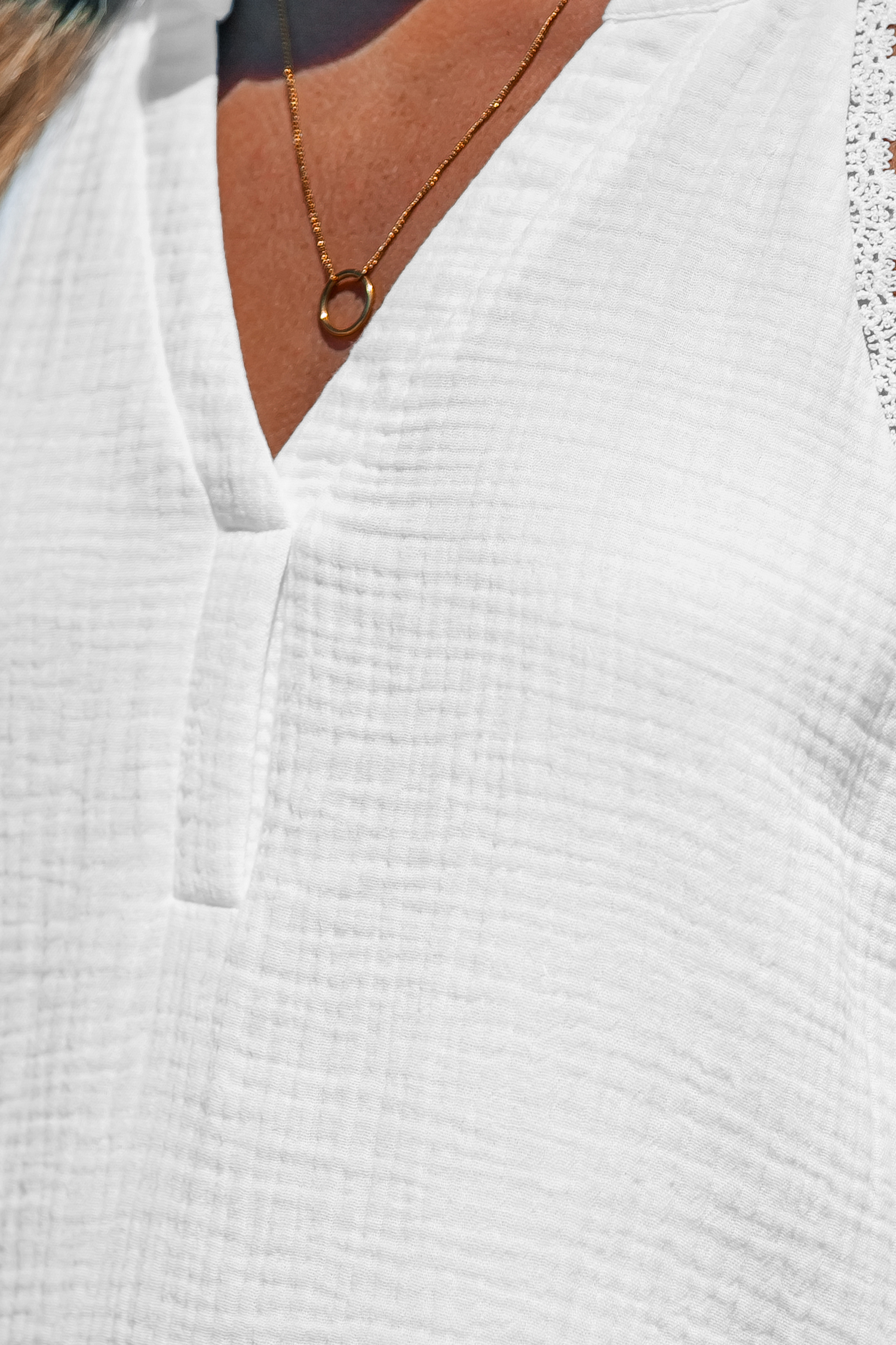 Robe mini cover up en pur coton sans manches à col en V blanche