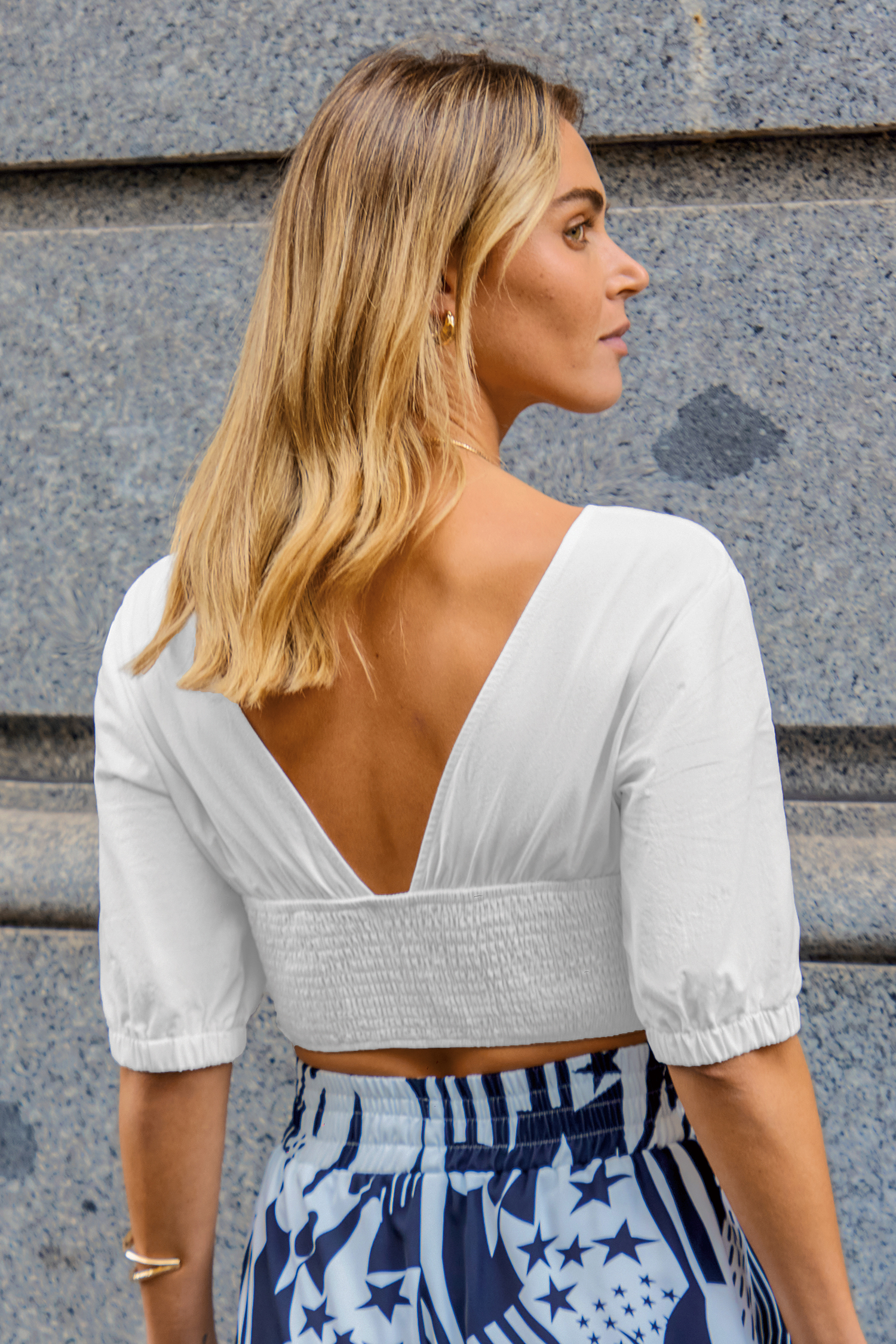 Haut court en pur coton à manches bouffantes et col surplis blanc