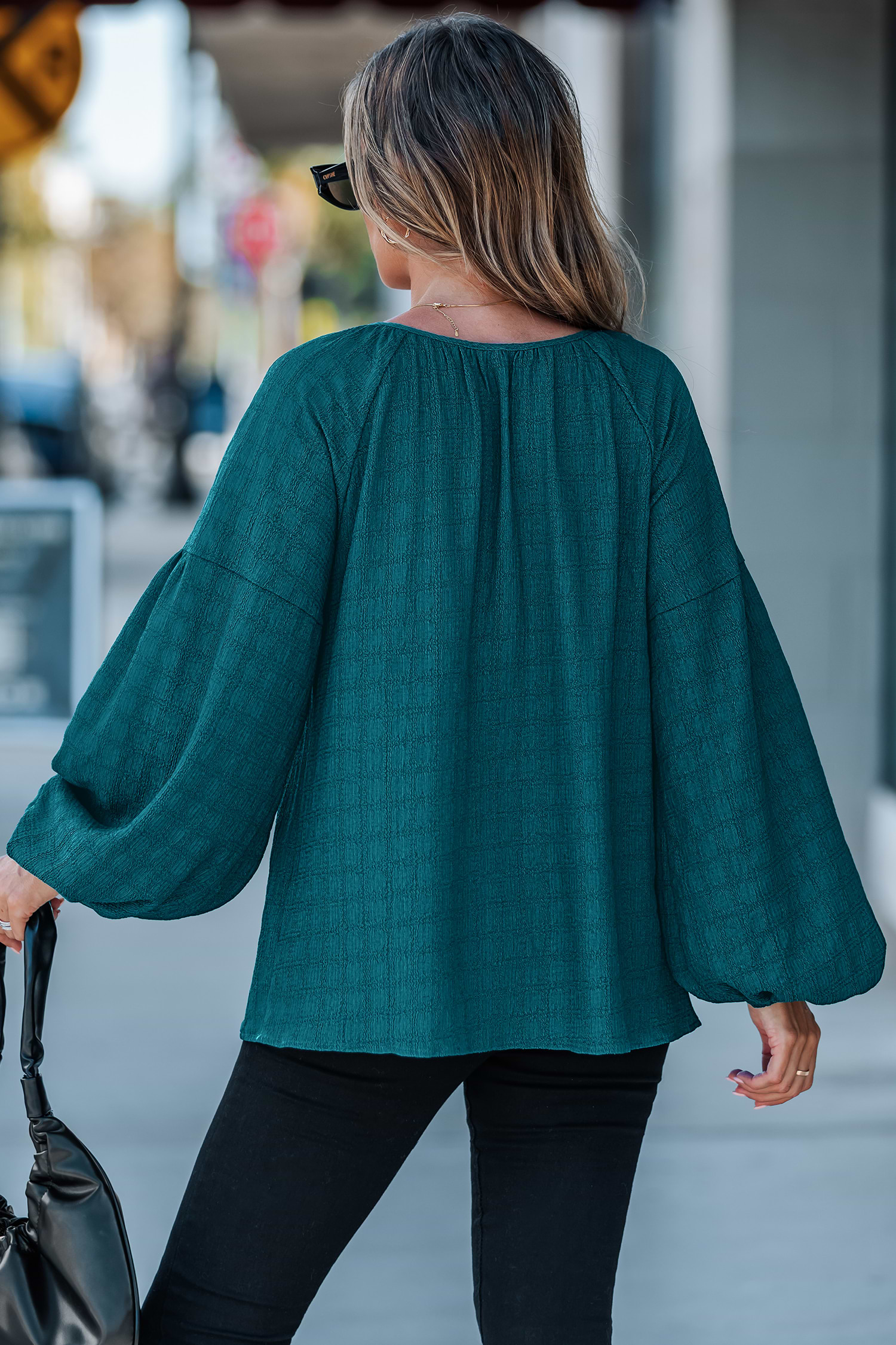 Un haut bleu-vert décontracté et intemporel ! Son tissu doux, son col fendu et ses manches longues en font un choix parfait pour les journées cosy, les looks superposés ou les sorties détendues.