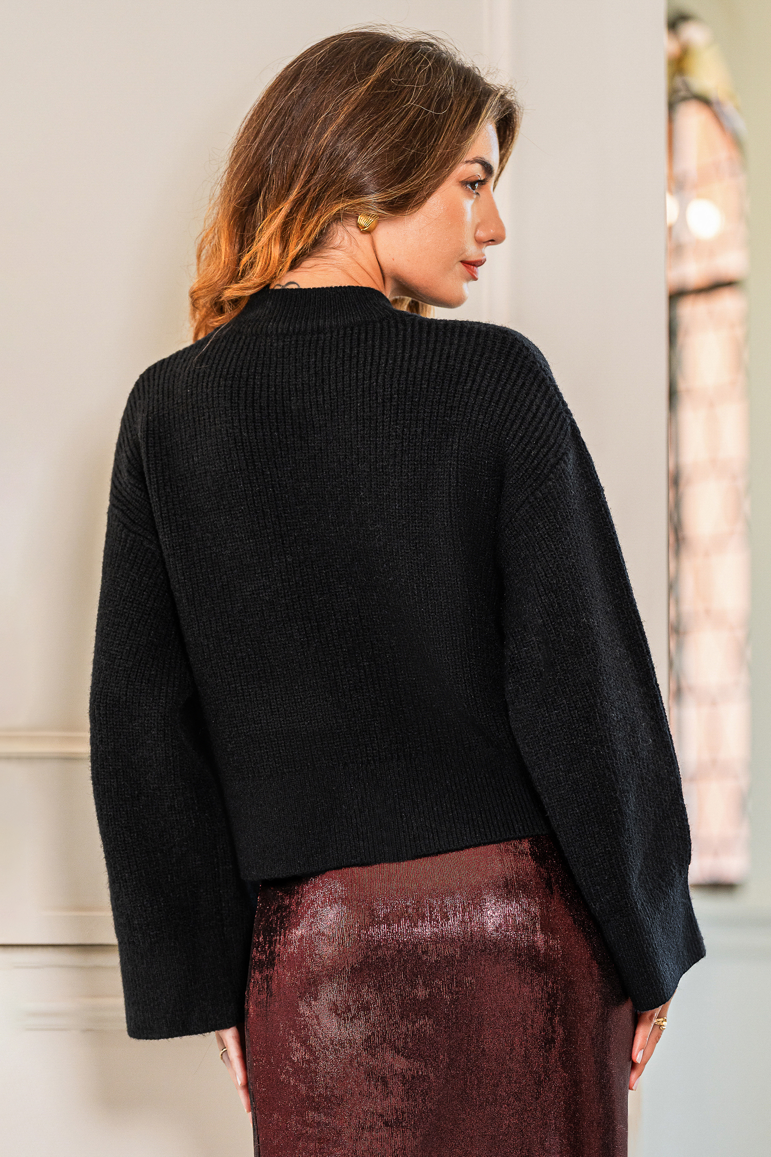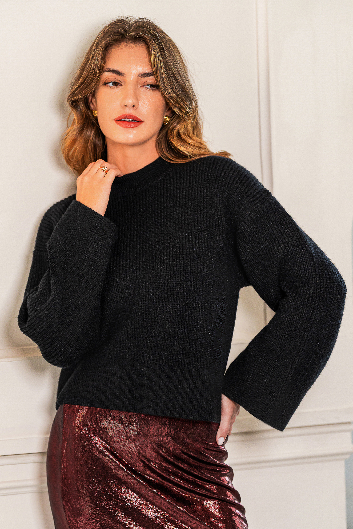 Préparez-vous à tourner les têtes dans le pull à col haut et manches évasées. Cette pièce confortable présente un col montant tendance qui vous tient au chaud, tandis que les manches évasées ajoutent une touche de drame. La teinte riche et profonde en fait un parfait choix pour la superposition ou le port seul.