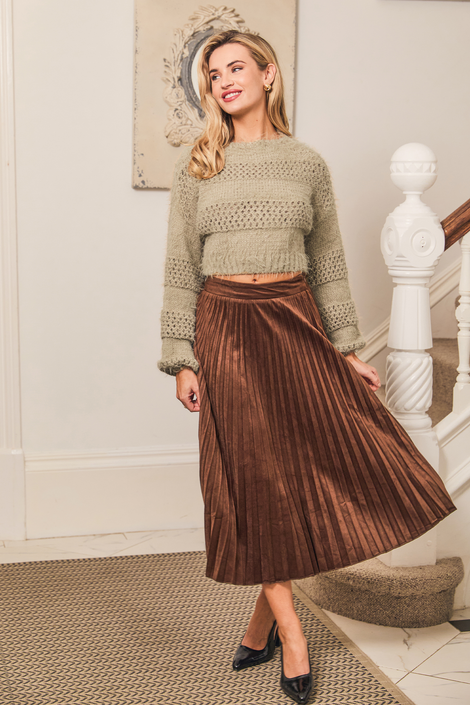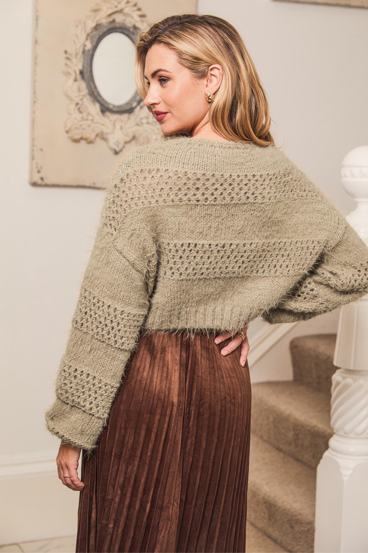 Embrassez chaleur et style avec le pull en tricot découpé flou camel. Cette pièce confortable présente une texture douce et floue qui se sent délicieuse sur la peau, parfaite pour ces fraîches journées de vacances.